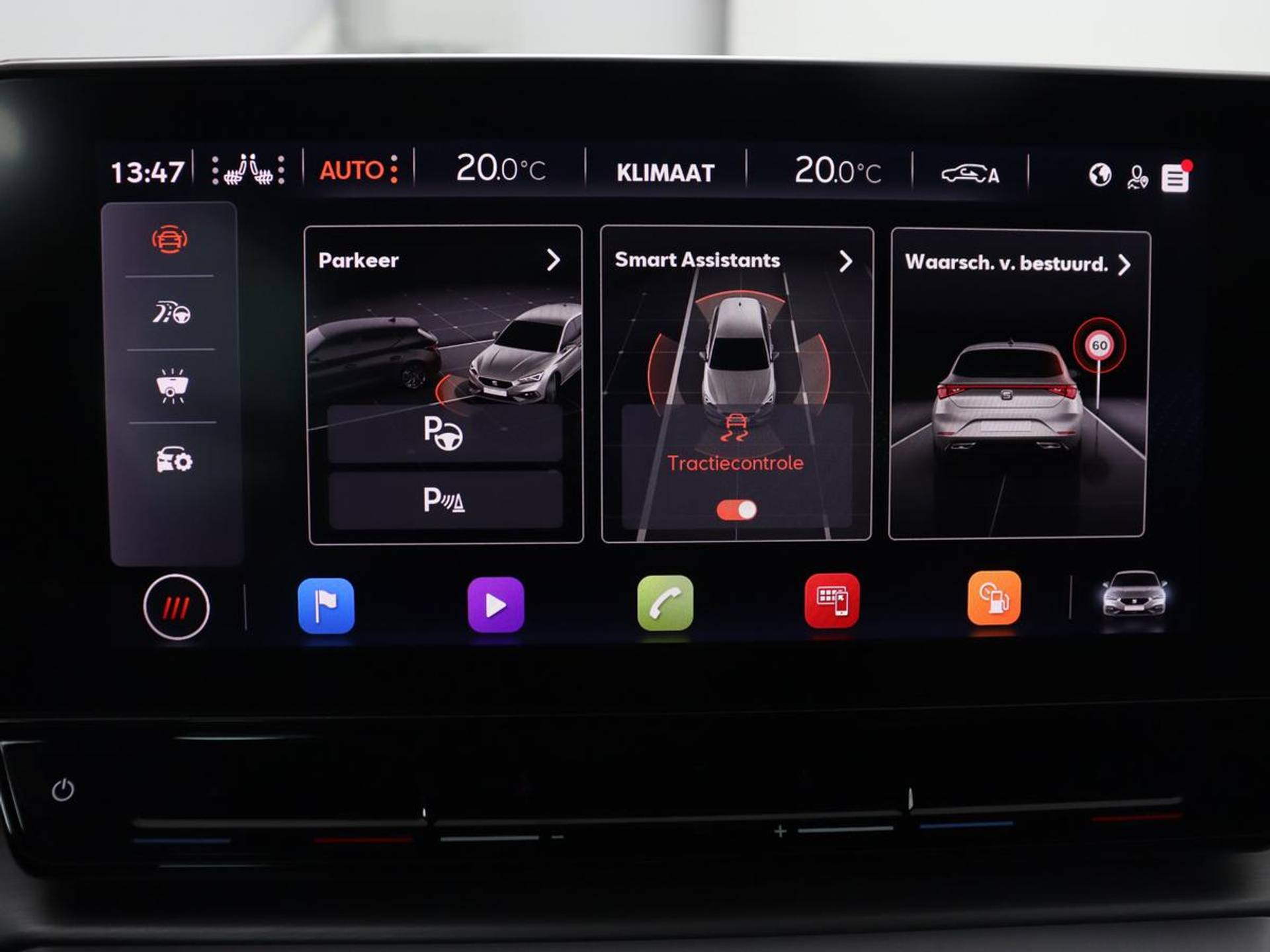 Zoals u mag verwachten van deze SEAT Leon is hij uitgerust met een reeks aan actieve veiligheidssystemen. U rijdt ook veiliger omdat deze auto voor u de verkeersborden langs de weg kan lezen. De belangrijkste borden worden op uw instrumentarium geprojecteerd, zodat u ze niet kunt missen. Het Lane-keeping systeem doet precies wat nodig is: waarschuwen en corrigeren bij onbedoelde overschrijding van de rijstrooklijnen. De sensor van het forward collision warning-systeem registreert permanent de afstand tot voorliggers en grijpt in als een botsing dreigt. Ook helpen het dodehoekdetectie, hill hold functie, vermoeidheidsherkenning, autonoom remsysteem en bandenspanningcontrolesysteem, uw rit tot een veilige rit te maken.