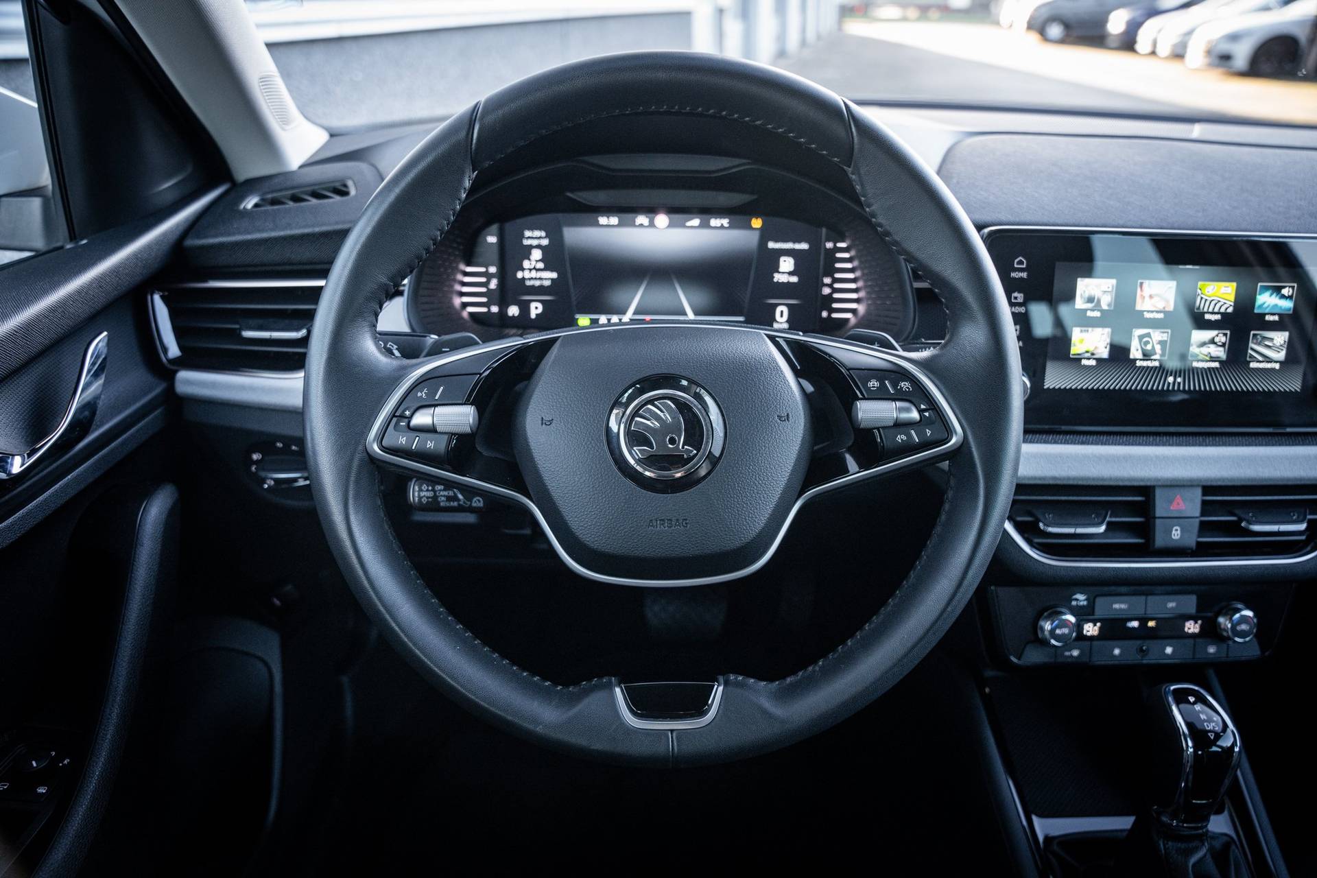 De vormgeving van deze Škoda Kamiq is stijlvol maar ingetogen en dat maakt meteen duidelijk dat u van deze auto pure kwaliteit mag verwachten. Ondanks zijn zuinigheid, levert de benzinemotor van deze Škoda uitstekende prestaties. De achterklep opent automatisch met een druk op de knop. Handig als u met volle handen staat. Ook 16 inch lichtmetalen velgen, LED koplampen, in hoogte verstelbare passagiersstoel, extra getint glas, in delen neerklapbare achterbank en LED-achterlichten horen tot de voorzieningen op deze auto. Nekkramp en verdraaide schouders zijn verleden tijd. Door de achteruitrijcamera is iedere meter achter de auto glashelder in beeld. Adaptive cruise control houdt de ingestelde snelheid vast en houdt afstand tot het voertuig voor u. De speciale app verbindt met Connected Services, die de status van vitale functies bijhoudt en waarschuwt als u bijvoorbeeld moet tanken, de bandenspanning moet controleren of olie moet bijvullen. Gemakkelijk en veilig is de spraakbediening voor het audio-installatiesysteem. Daarbij kunt u het ook bedienen met de knoppen op het stuur. De auto is ook uitgevoerd met electronic climate control. Deze Škoda is voorzien van regensensor, keyless entry, automatisch dimmende binnenspiegel, lederen stuur, boordcomputer en lederen versnellingspook. Geavanceerde systemen kunnen tijdens de rit bepaalde taken van u overnemen. Zo kijken er als het ware steeds extra ogen met u mee, zodat u tijdig kunt reageren op noodsituaties. U rijdt ook veiliger omdat deze auto voor u de verkeersborden langs de weg kan lezen. De belangrijkste borden worden op uw instrumentarium geprojecteerd, zodat u ze niet kunt missen. Een camera houdt de juiste koers binnen de rijstrook in de gaten en het Lane-keeping systeem corrigeert bij afwijkingen. Veel aanrijdingen bestaan uit kop-staartbotsingen. De forward collision warning reduceert dat risico aanzienlijk. Met voorzieningen als hill hold functie, vermoeidheidsherkenning, autonoom remsysteem en bandenspanningcontrolesysteem, bent u altijd veilig onderweg. Indien u interesse heeft in deze Škoda, zetten we hem graag klaar voor een proefrit. We horen graag van u, mailt of belt u ons meteen?