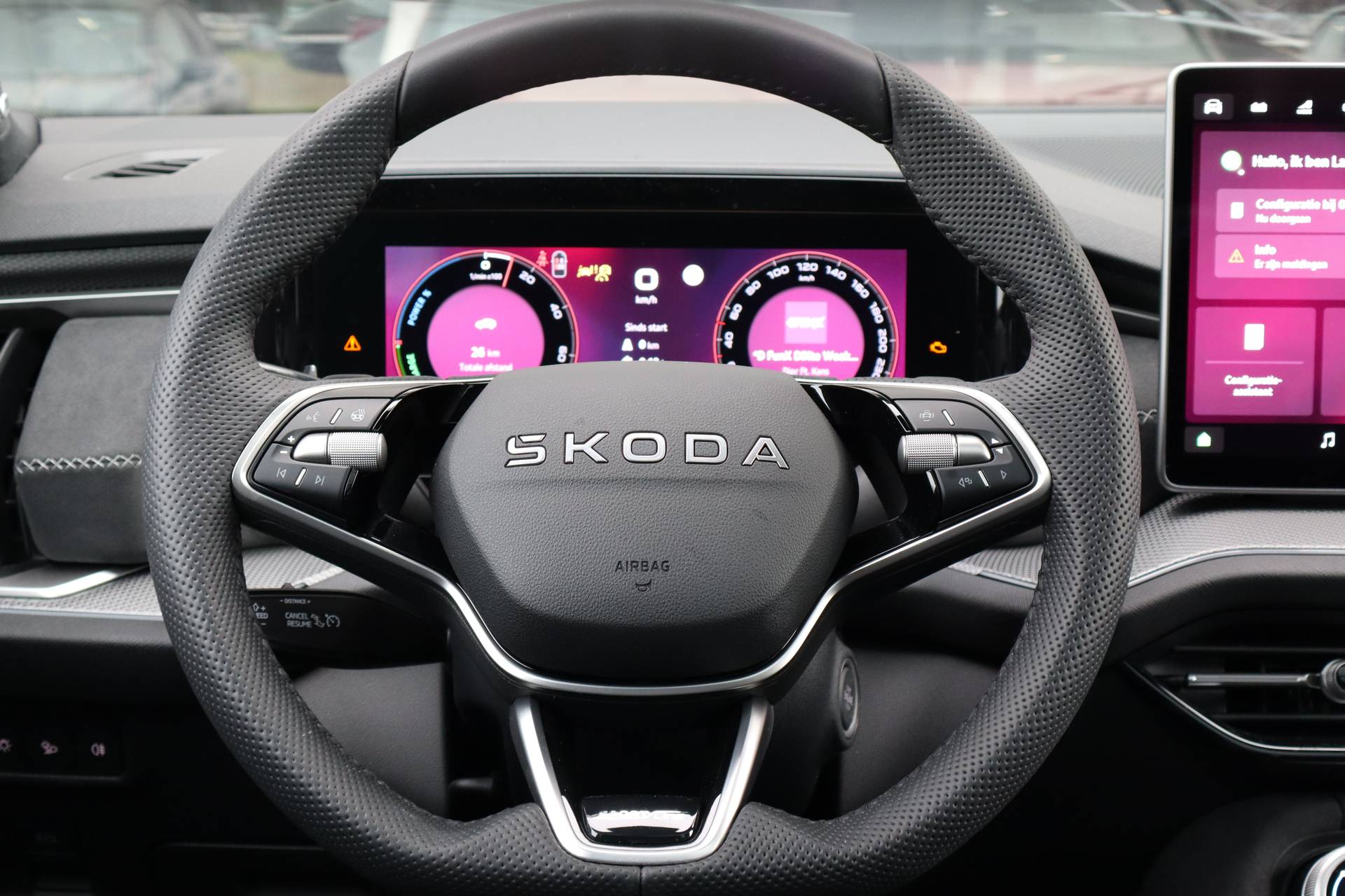 Met zijn ruimte en zijn prestaties is dit de auto die bij u past. Het is een nieuwe auto, hij is nu uit voorraad leverbaar. Deze hybride Škoda Kodiaq gaat slim om met energie. Door rijden en remmen wordt de accu van de elektromotor opgeladen, die de brandstofmotor en handje helpt of zelfs de aandrijving overneemt. Kijk, en die stoelverwarming, dat is nou echt comfort. Helemaal als het buiten winters aanvoelt. Geniet van het uitzicht naar buiten door het riante glazen panoramadak. Ook achterin heerst een luxe sfeer, vanwege de verwarmde achterbank. Tot de voorzieningen van deze auto behoren elektrische handrem en verstelbare lendensteunen. Niets achter deze auto blijft verborgen door de achteruitrijcamera. Een veilig gevoel! Met adaptive cruise control houdt deze auto automatisch afstand tot uw voorligger. De elektrisch inklapbare trekhaak blijft mooi uit het zicht als u hem niet gebruikt. Slimme ruitenwissers? De regensensor zorgt ervoor! Met dashboard met spraakbediening, DAB+ radio, automatisch dimmende binnenspiegel, hifi-luidsprekers en bagage afdekhoes is deze auto helemaal compleet. Deze auto is voorzien van innovatieve systemen die u onderweg begeleiden en beschermen. Wordt dit uw nieuwe auto? We verwelkomen u graag om u deze Kodiaq te laten zien, en dan leggen we u ook uit welke financieringsvormen we erbij kunnen aanbieden.