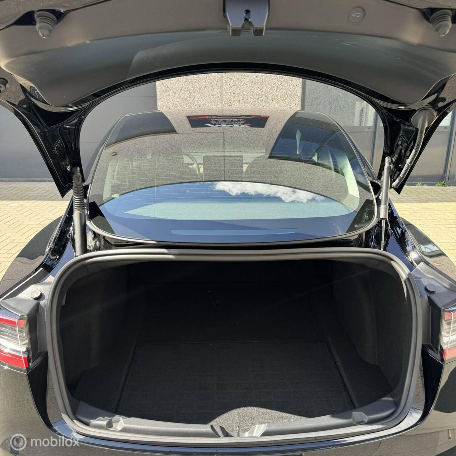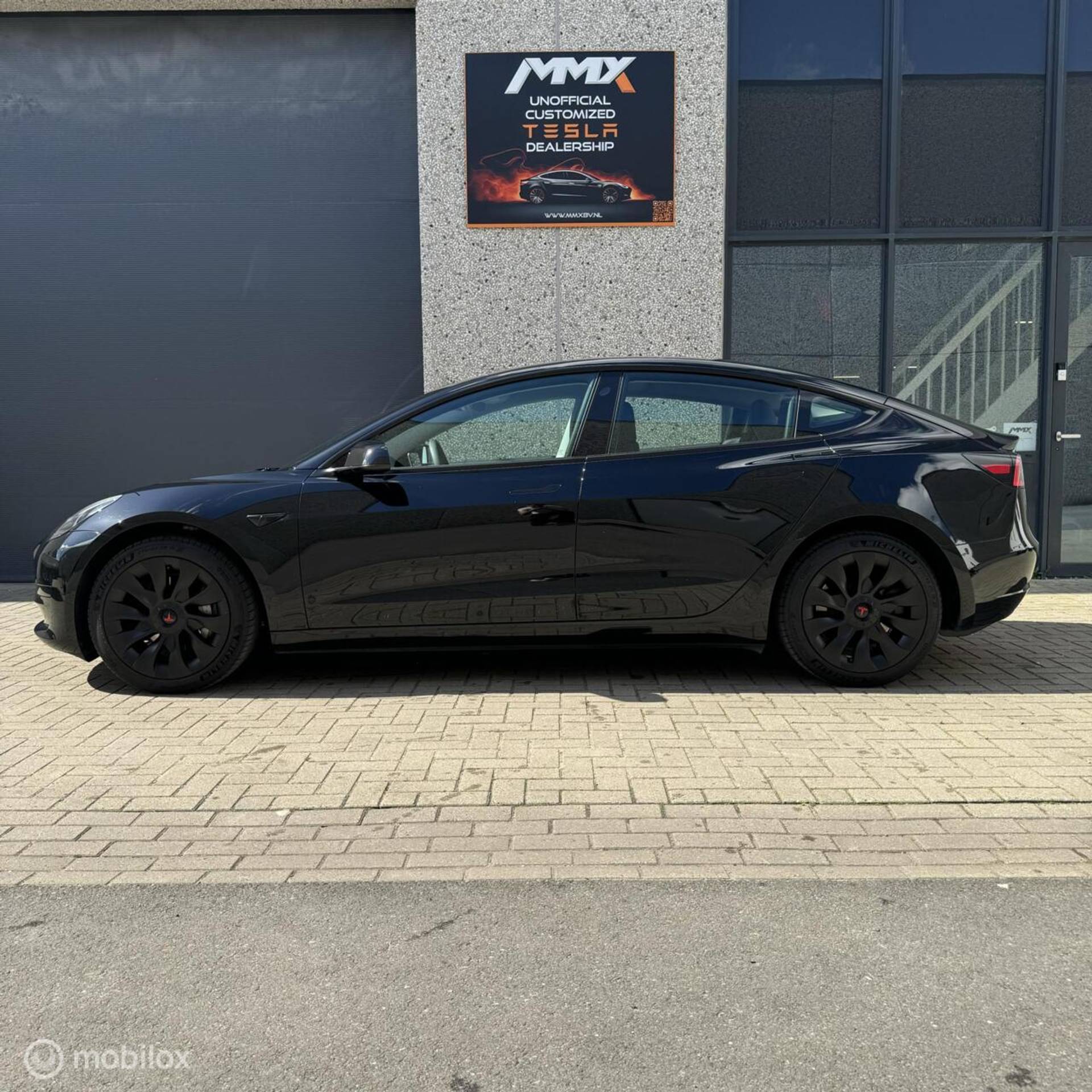 (bijv. zwarte spoiler, aluminium pedalen, zwarte turbine wieldoppen met rood logo, geluiddempende was voor de ruit, zwarte Tesla-logo’s op frunk, trunk en stuur)