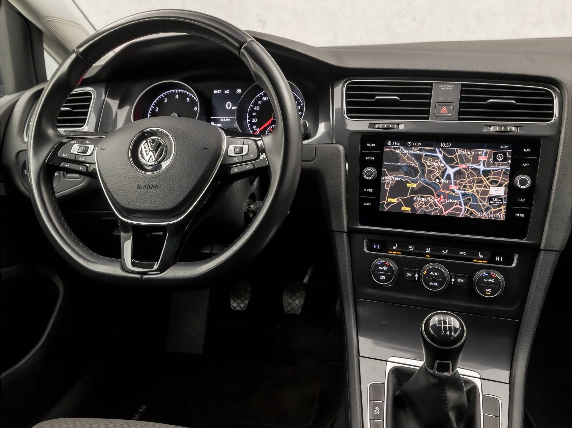 Met adaptive cruise control houdt de auto zelfstandig afstand tot uw voorligger. Een veiligheidsverhogende optie waarmee u comfortabel onderweg bent. Het is veiliger om altijd uw ogen op de weg te houden en uw handen aan het stuur; daarom is dit voertuig uitgerust met een audio-installatiesysteem met DAB-ontvangst en een navigatiesysteem dat kan worden bediend via het stuurwiel of spraakbediening. Aan boord van deze Volkswagen Golf is een achteropkomend verkeer waarschuwing voor extra veiligheid. Het spreekt voor zich dat een auto als deze ook van automatische airconditioning is voorzien. Parkeersensoren helpen u tijdens het in- en uitparkeren. De uitrusting van deze Volkswagen is met regensensor, automatisch dimmende binnenspiegel, lederen stuur, isofix-aansluiting, centrale deurvergrendeling met afstandsbediening en bagage afdekhoes behoorlijk compleet.