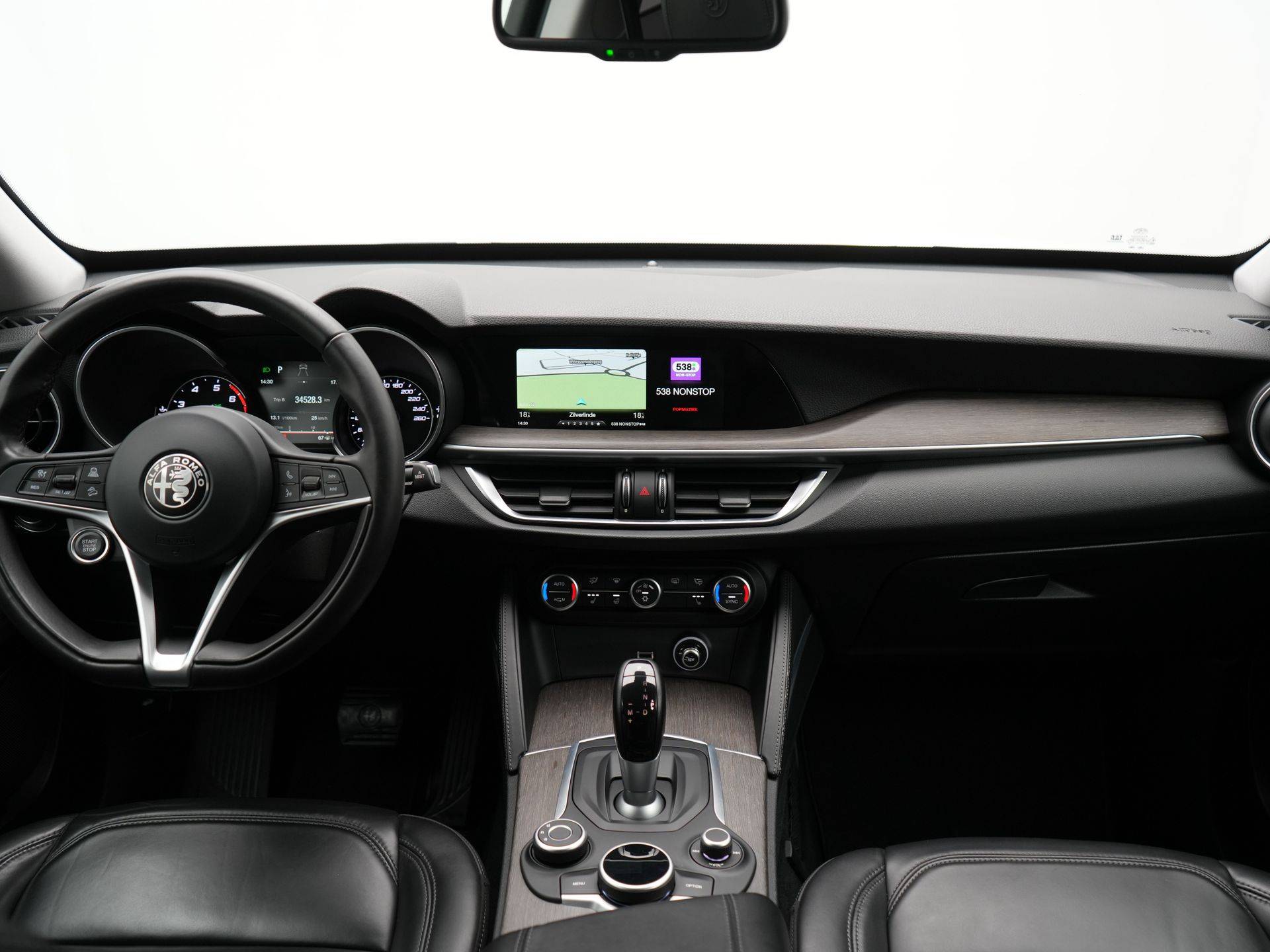 Kies de muziek waarvan u houdt, dankzij de DAB-radio klinkt het altijd geweldig. Intussen bedient u het audio-installatiesysteem en het full map navigatiesysteem met de knoppen op het stuur. Electronic climate control verwarmt of koelt het interieur met een druk op de knop. U kunt bij het inparkeren natuurlijk niet aan alle kanten ogen hebben. Daarom is deze Alfa Romeo Stelvio voorzien van parkeersensoren! Het luxeniveau in deze Alfa Romeo is niet alleen gericht op comfort, maar ook op uw veiligheid. Tal van sensoren helpen u om de omgeving in de gaten te houden. De automatisch inschakelbare verlichting zorgt dat automatisch de verlichting wordt ingeschakeld als het donker wordt, wat bijvoorbeeld in tunnels erg handig is. En de regensensor zet de ruitenwissers aan zonder dat u eraan hoeft te denken. Zuinig en zeker zoeven? Dan is de cruise control ideaal!