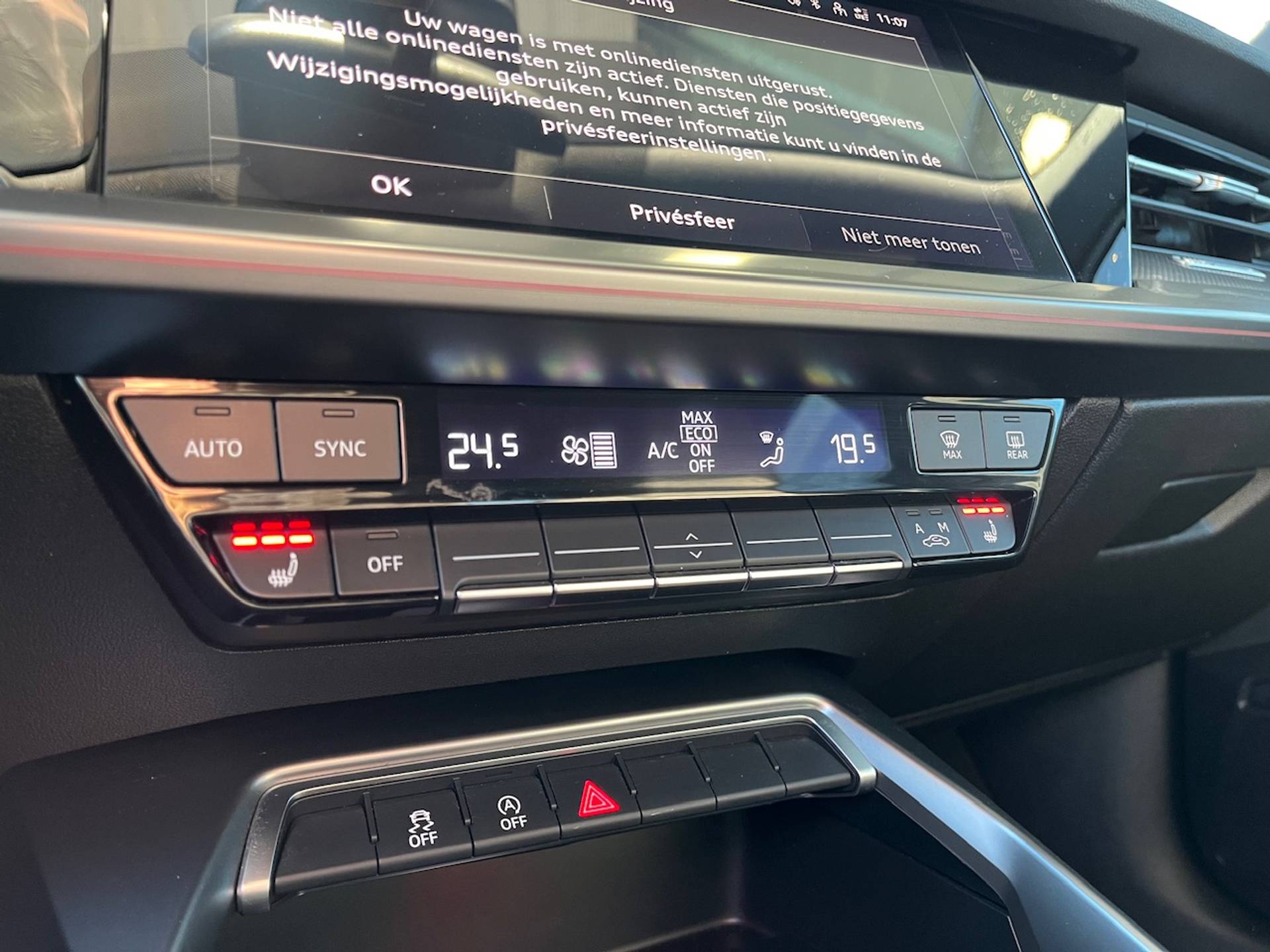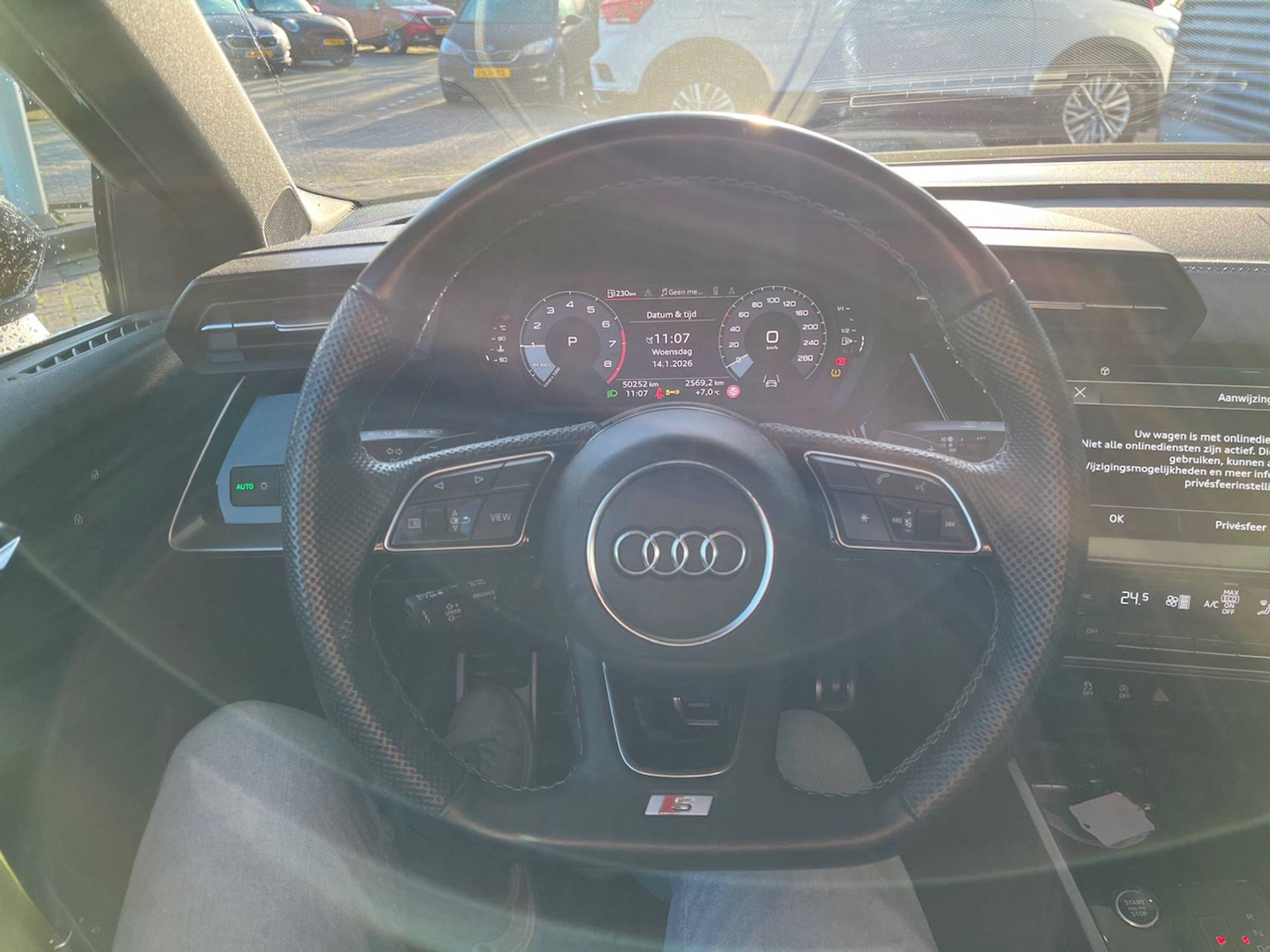 In één oogopslag heb je alle benodigde functies onderweg in beeld, dankzij het slim ingedeelde digitale dashboard. Adaptive cruise control is een comfortabele en veilige optie. Het systeem reguleert de snelheid en houdt automatisch afstand tot jouw voorligger. Deze Audi A3 Limousine is voorzien van remote services. Via je smartphone bedien je diverse functies ook op afstand en krijgt je informatie over de status van je auto. Je bedient het MMI navigatiesysteem en het audiosysteem met DAB-radio via knoppen op het stuur. Zo kun jij steeds jouw aandacht gericht houden op de weg. Zoals van een eigentijdse auto verwacht mag worden, is deze Audi A3 Limousine voorzien van een draadloze oplaadmogelijkheid voor telefoons. Wat je ook in deze auto kunt vinden zijn WIFI-hotspot, electronic climate control, schakelpaddles aan het stuur, parkeersensoren achter, regensensor en centrale deurvergrendeling met afstandsbediening.