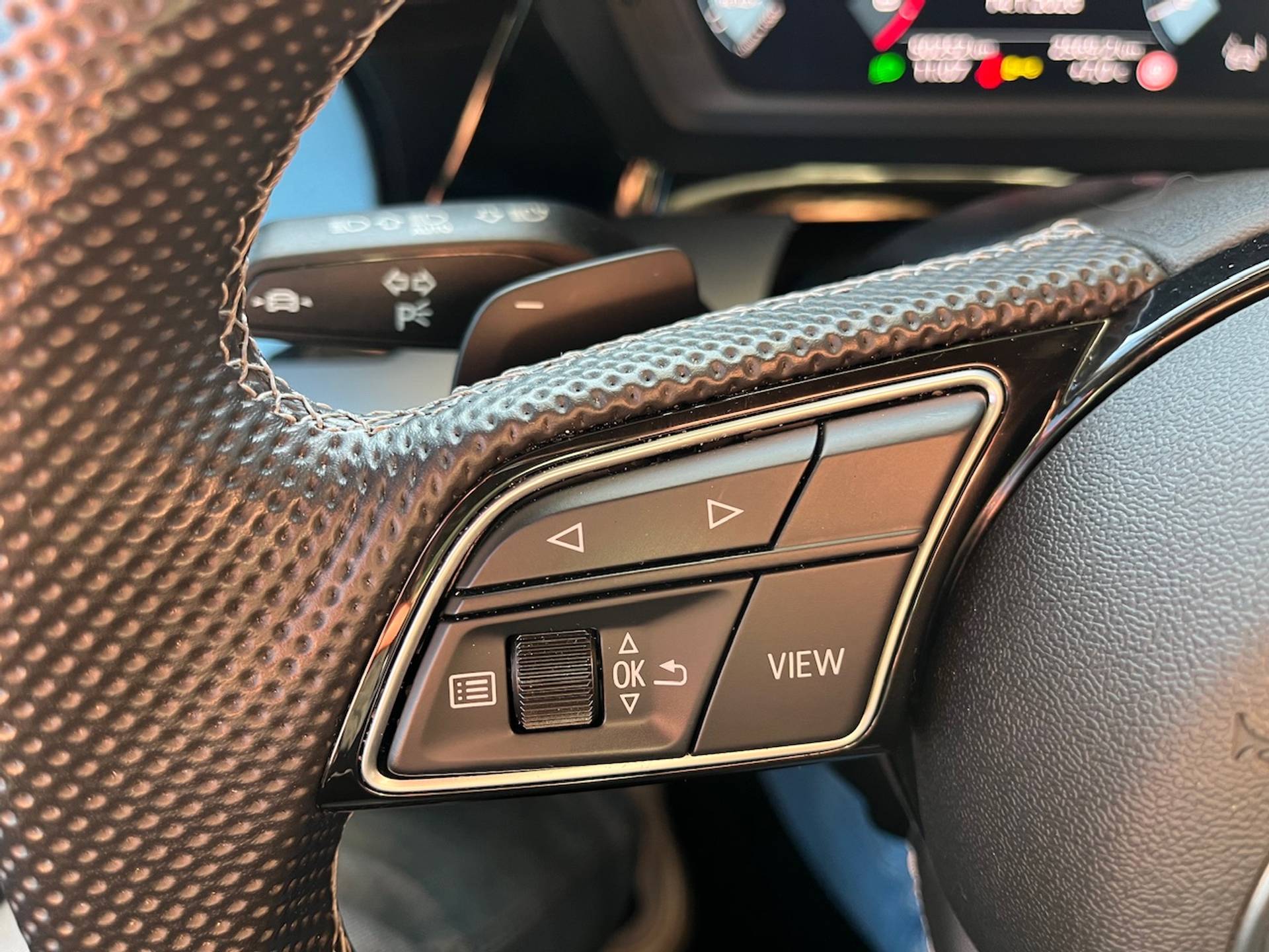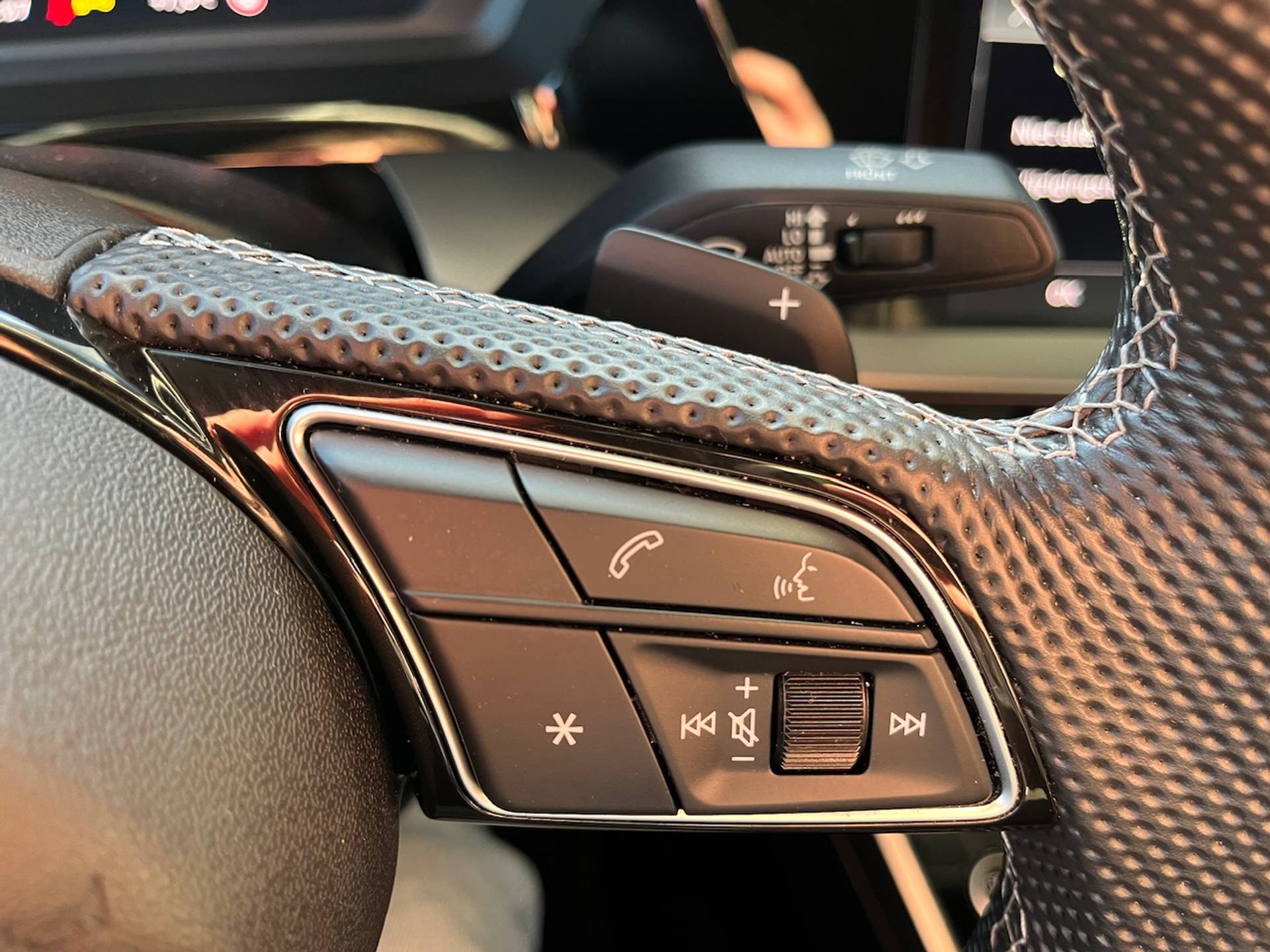 ✓ Sportstuurwiel, multifunctioneel in leder, driespaaks afgevlakt met schakelpaddels