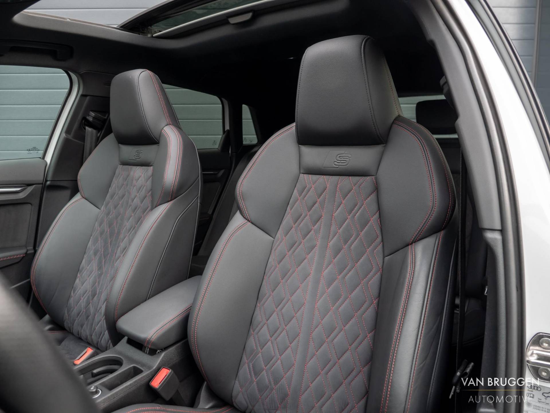 Bekleding, leder fijnnappa met stiksel in honingraadmotief en RS embleem