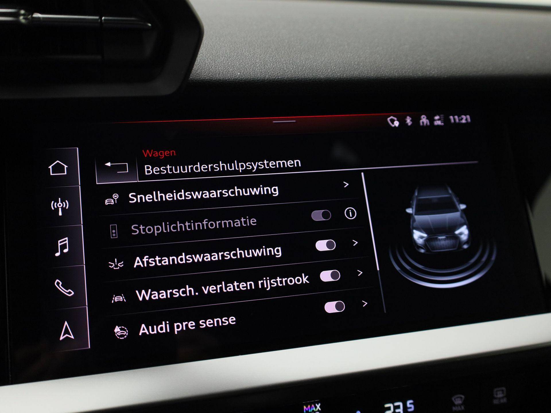 In de Audi A3 Sportback heeft uw veiligheid en die van uw omgeving prioriteit. Een belangrijke bijdrage aan de veiligheid onderweg levert de verkeersbord-detectie in deze Audi. Een camera houdt de juiste koers binnen de rijstrook in de gaten en het Lane-keeping systeem corrigeert bij afwijkingen. Een kortere remweg verkleint de kans op een aanrijding. Brake assist helpt actief mee tijdens een noodstop.