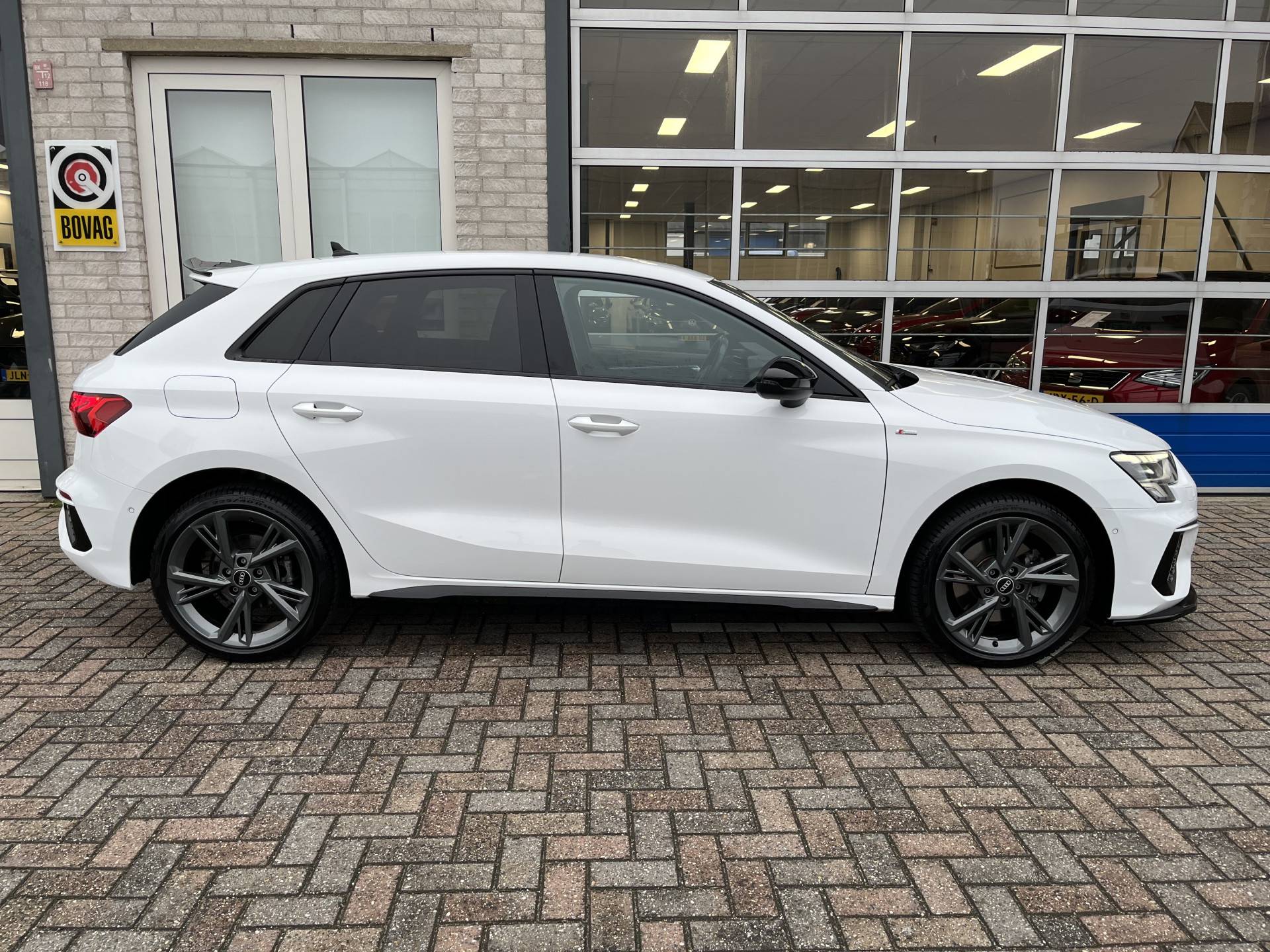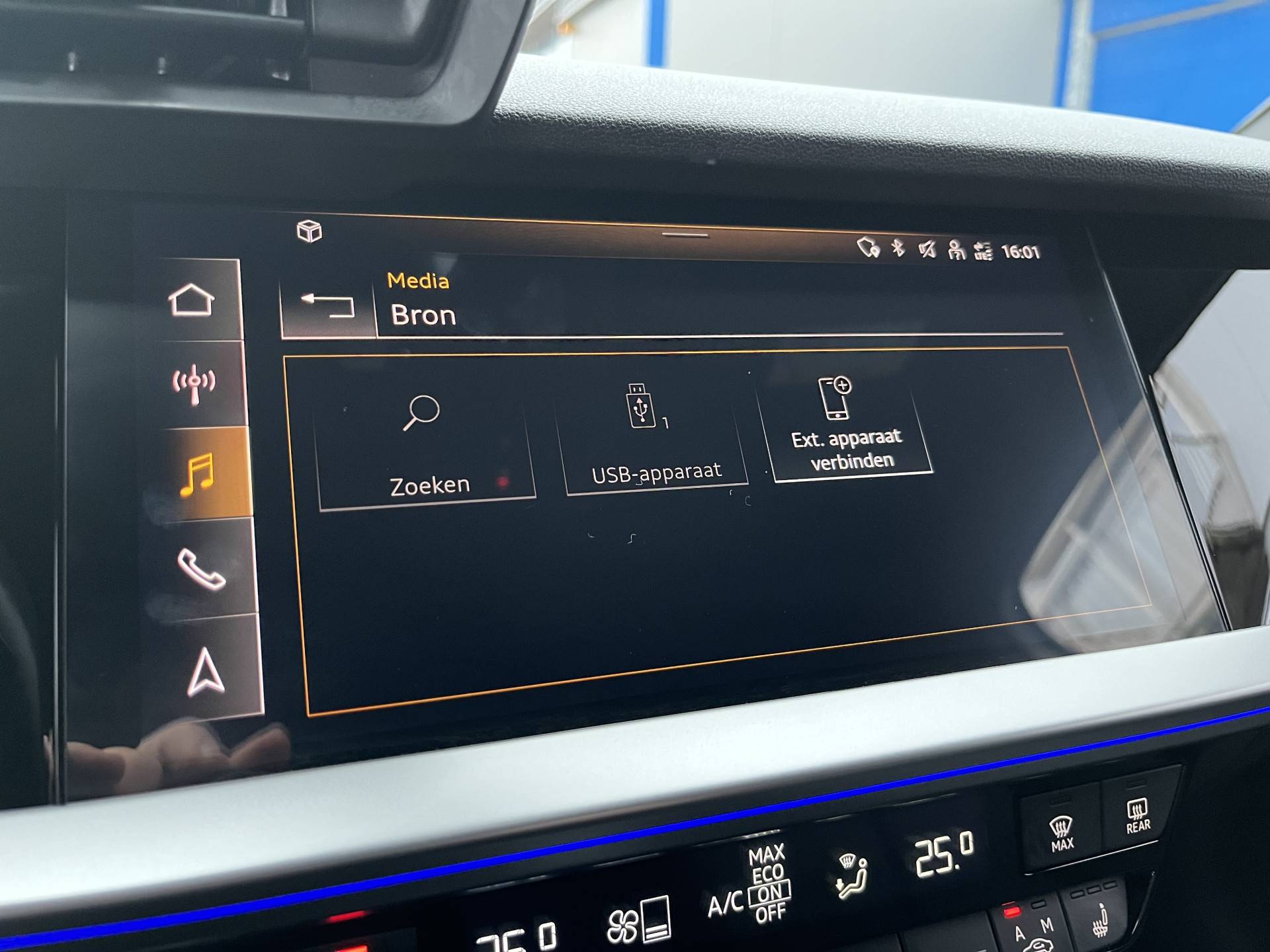Het digitale dashboard vertelt je onderweg alles dat bijdraagt aan een veilige, efficiënte rit. Je favoriete muziek klinkt beter dan ooit met het ingebouwde high performance audiosysteem. Telefoon onderweg aan de lader? Daar komt geen kabeltje aan te pas, want deze Audi A3 Sportback is voorzien van een draadloze oplaadmogelijkheid voor telefoons. In een auto als deze kun je niet zonder automatische airconditioning, zodat de temperatuur altijd goed is. Ervaar het comfort van inparkeren met parkeersensoren. Deze auto laat zich moeiteloos in elk parkeervak manoeuvreren. Natuurlijk behoren digitale radio, regensensor, cruise control, keyless entry, automatisch dimmende binnenspiegel en lederen stuur ook tot de uitrusting van deze complete auto.