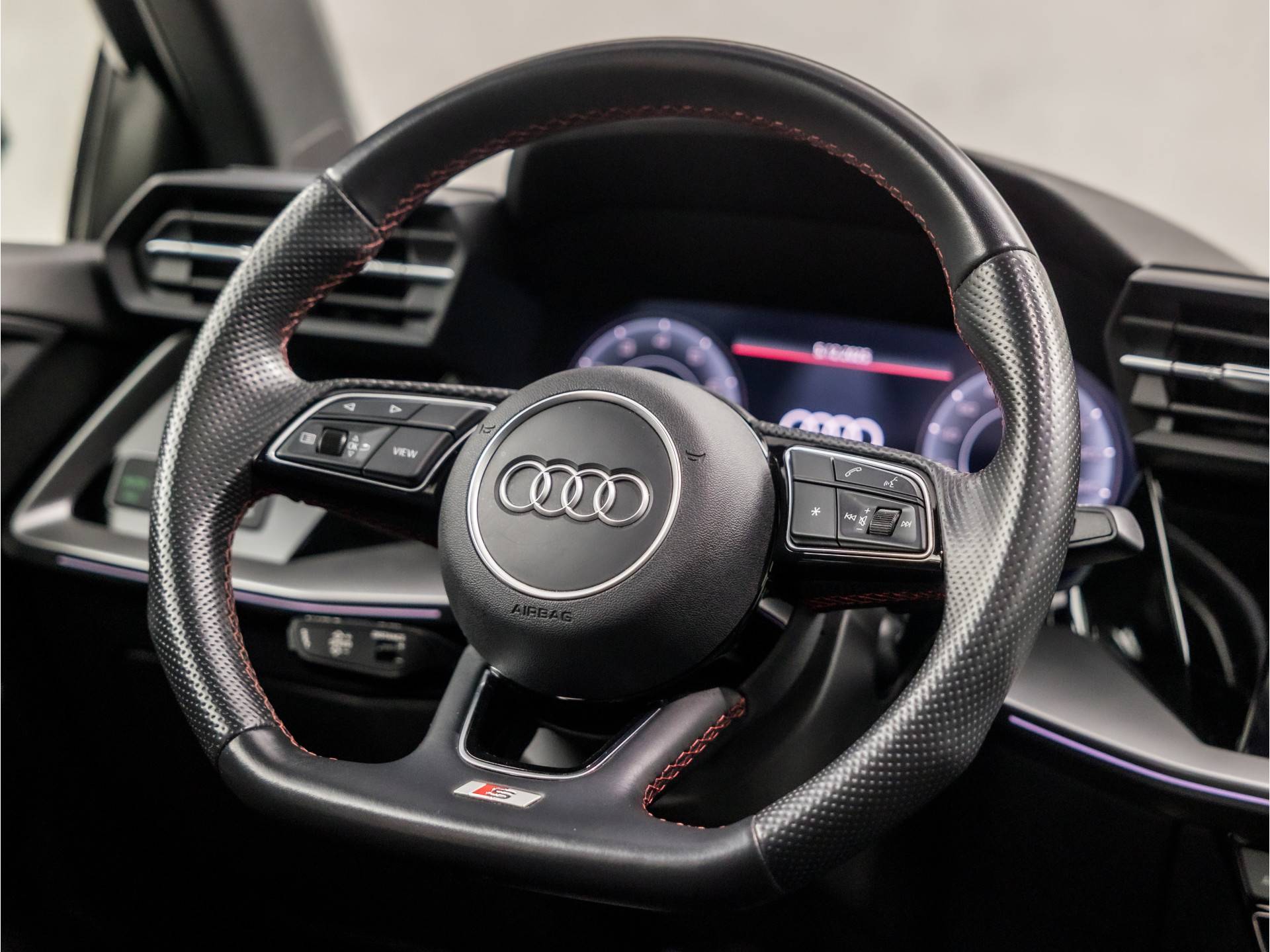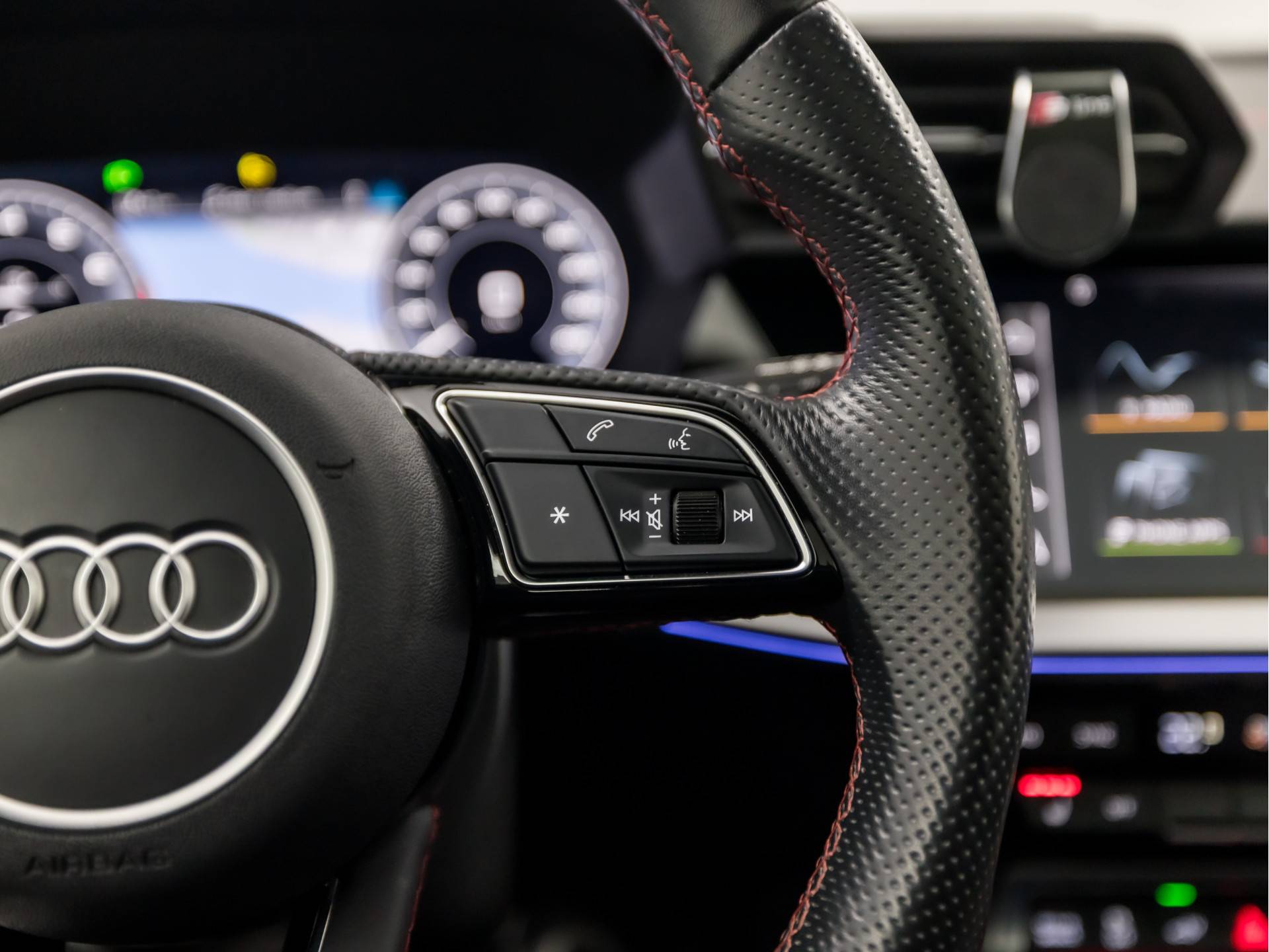 ✓ Sportstuurwiel, multifunctioneel in leder, driespaaks afgevlakt met schakelpaddels