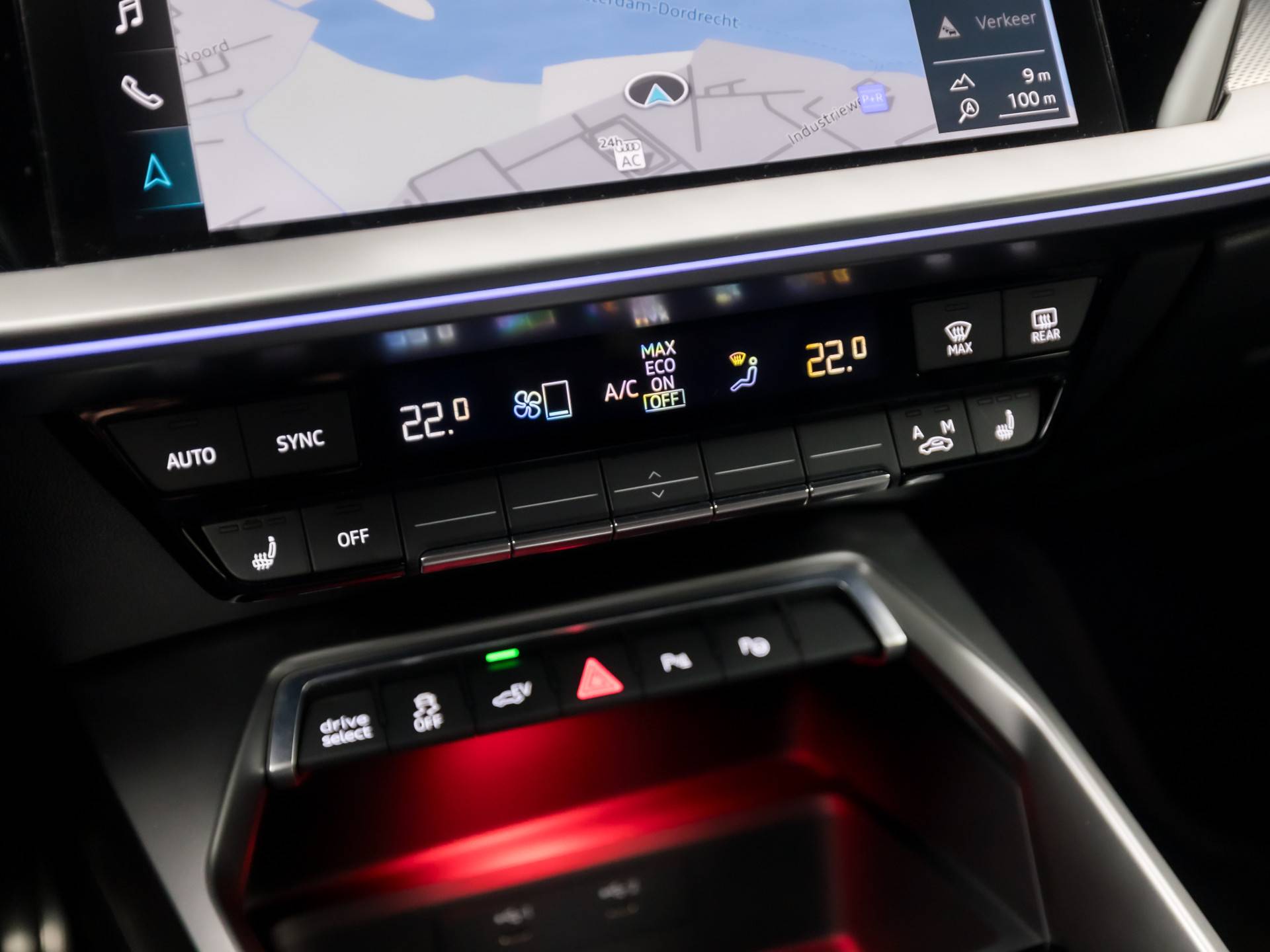 Het zal u verbazen hoe deze auto in staat is om voor u de omgeving en het verkeer om u heen in de gaten te houden. Uiteenlopende functies maakt de head-up display zichtbaar in de voorruit. Een belangrijke bijdrage aan de veiligheid onderweg levert de verkeersbord-detectie in deze Audi. Voorzien van het Lane-keeping systeem. Ofwel: blijf automatisch in je baan. Ook helpen het forward collision warning system, hill hold functie, brake assist en bandenspanningcontrolesysteem, uw rit tot een veilige rit te maken.