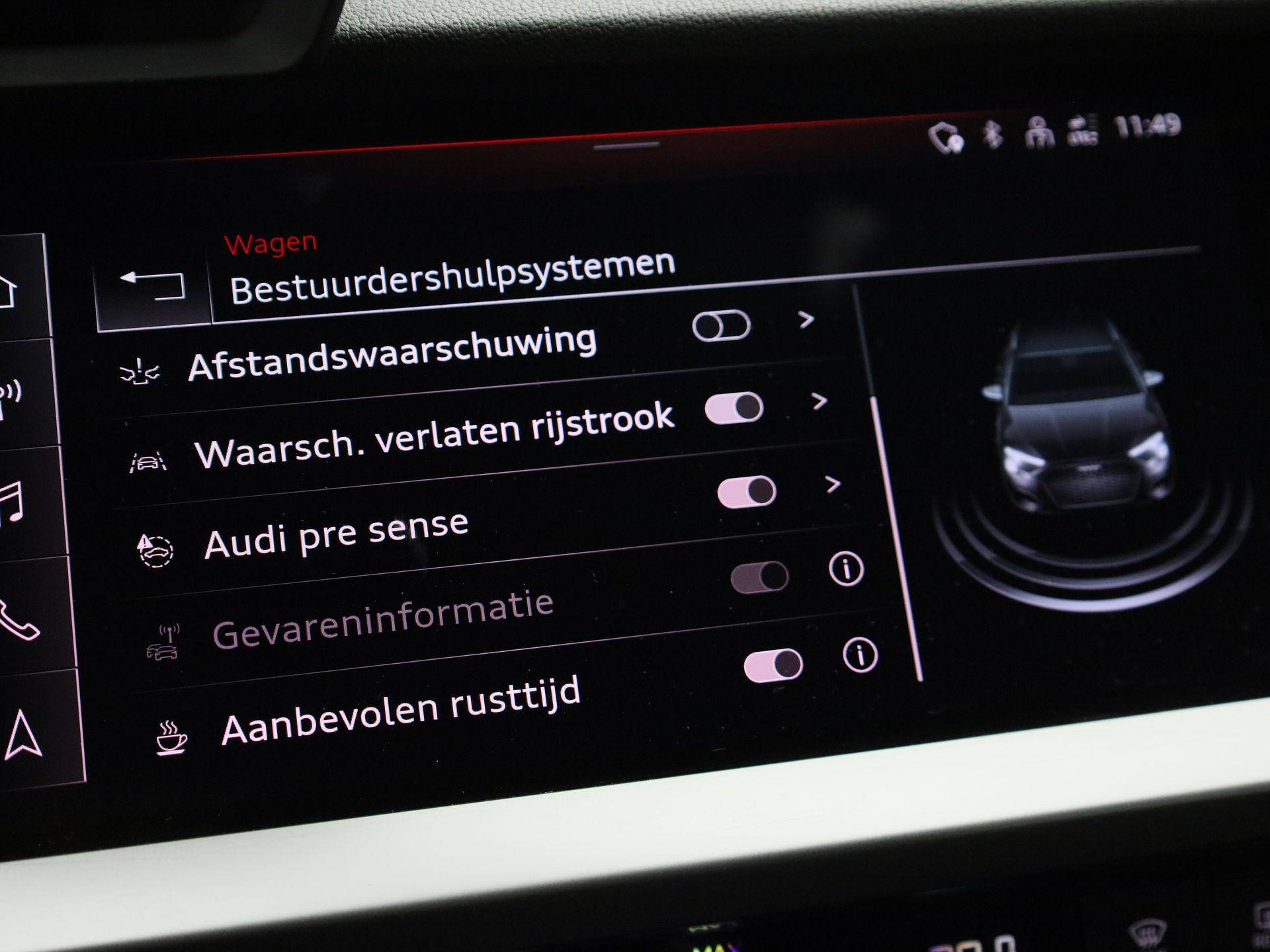 U geniet nog meer van het rijden met uw Audi omdat u wordt beschermd door intelligente veiligheidssystemen. Belangrijk voor uw veiligheid en die van uw passagiers is de verkeersbord-detectie in deze auto. Ongemerkt buiten de rijstrook raken? Nee hoor, het Lane-keeping systeem waarschuwt en corrigeert. Brake assist is uw redder in een noodsituatie. Bij een dreigend ongeval zorgt het systeem ervoor dat u sneller stilstaat.