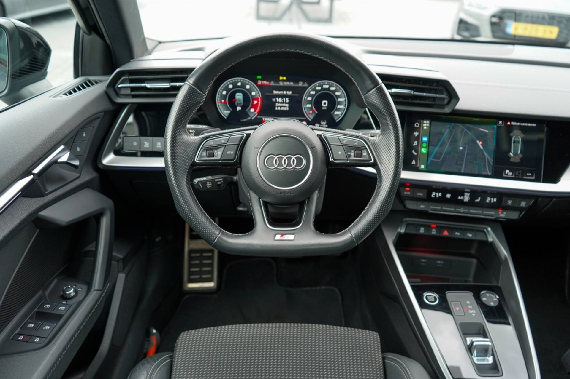 Dankzij de vijf deuren en het hatchback design biedt deze Audi A3 Sportback niet alleen een sportieve uitstraling, maar ook veel praktisch gemak. De S-line uitvoering van deze auto zorgt voor een stoere en elegante uitstraling, terwijl de zwarte optiek details het geheel een extra vleugje exclusiviteit geven.