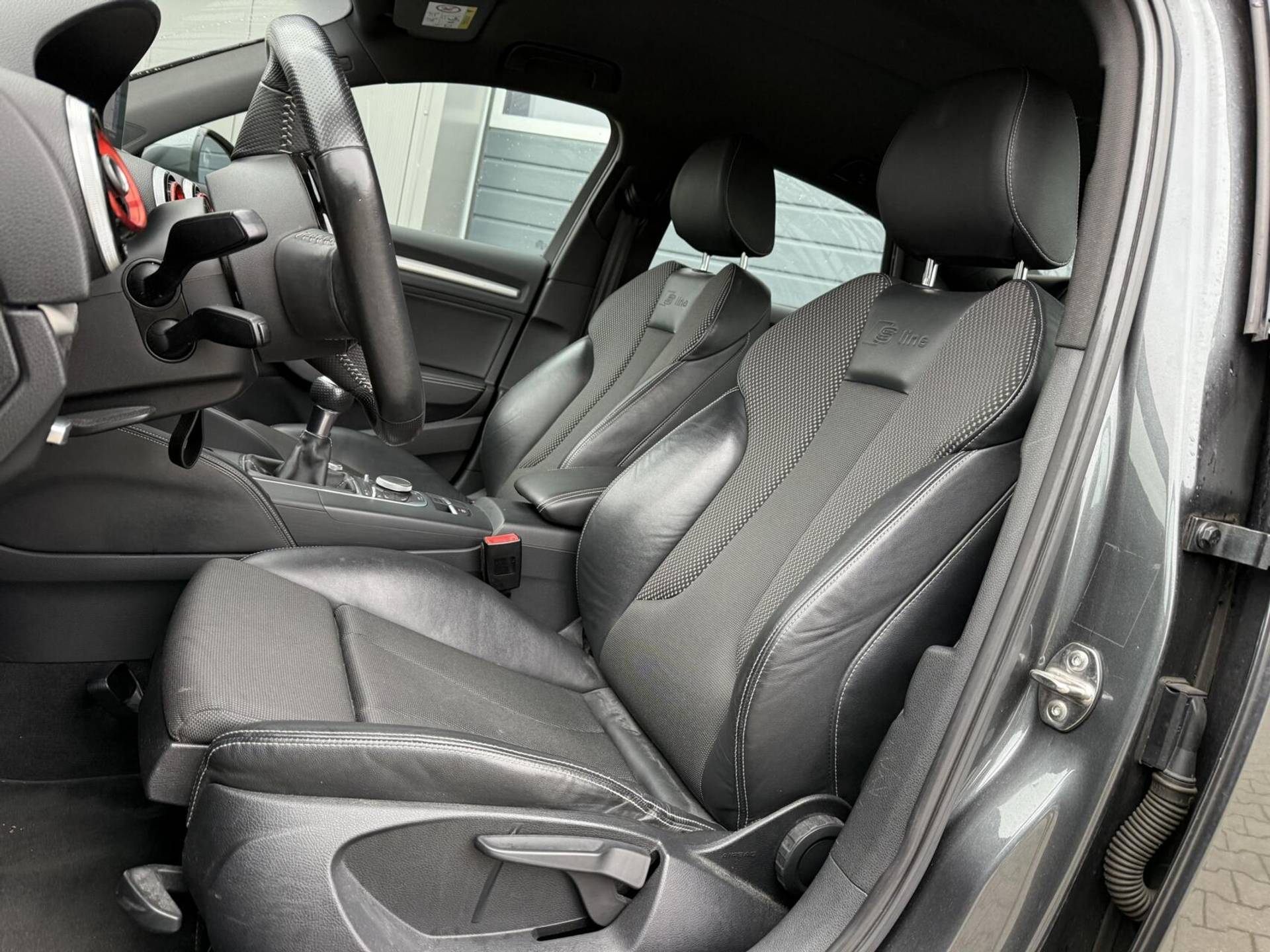 De S-Line-uitvoering valt op met sportieve accenten rondom en binnenin: sportstoelen, halfleder bekleding met rode accenten en een multifunctioneel sportstuur zorgen voor een dynamisch, premium gevoel. De Xenon-lampen en Audi’s karakteristieke lichtmetalen velgen benadrukken de sportieve looks nog eens extra.