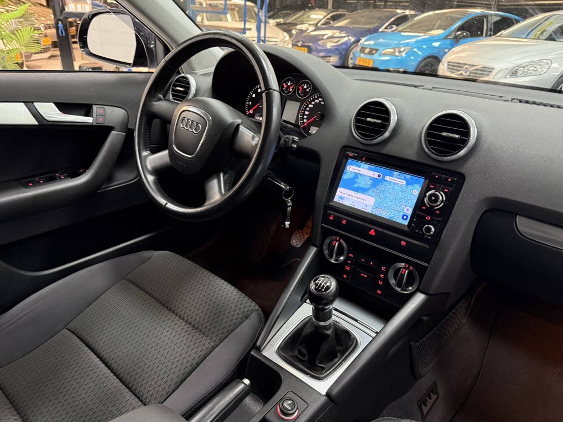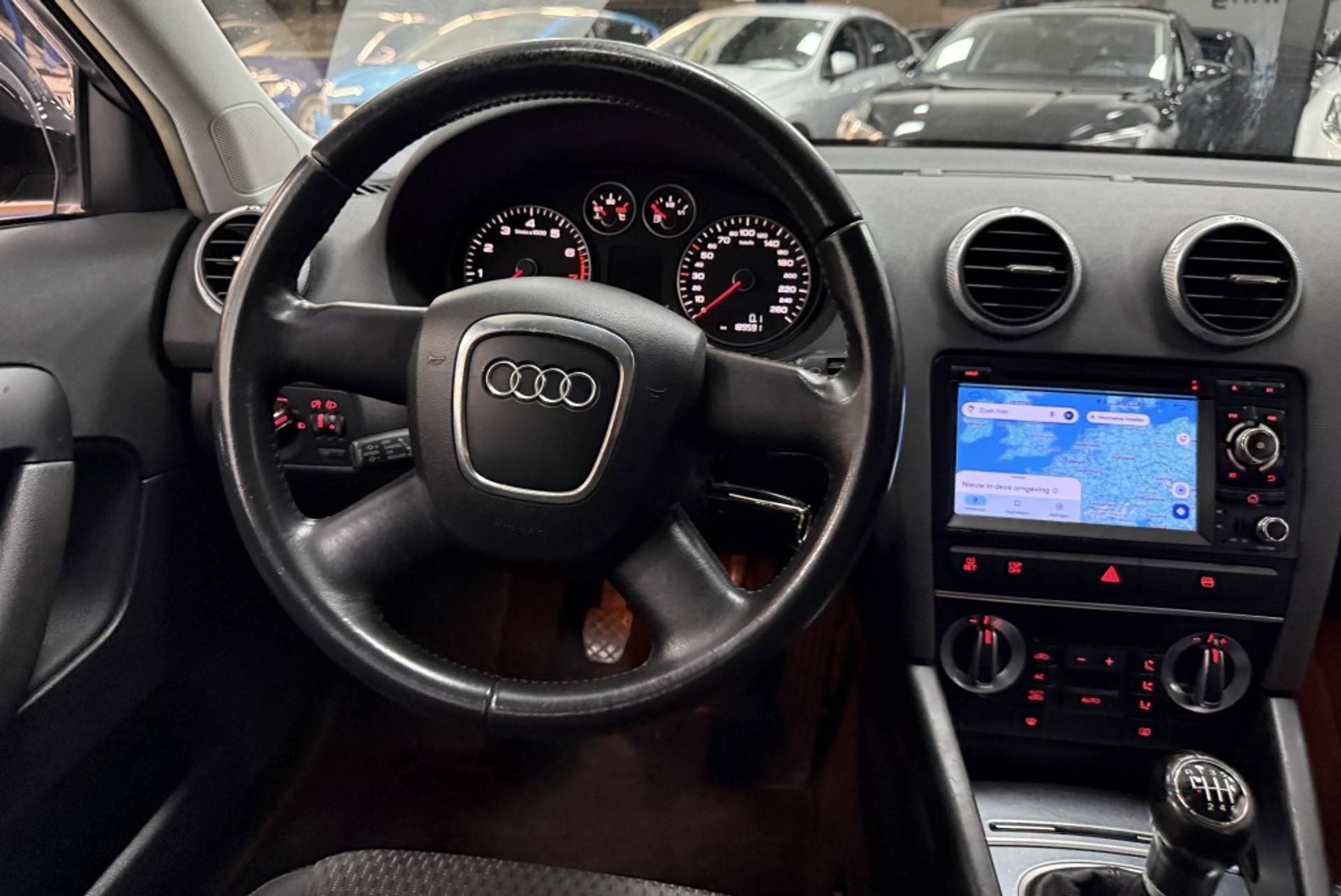 Je weet altijd waar je moet zijn, dankzij het navigatiesysteem. Dankzij automatische airconditioning is het interieur behaaglijk warm of verfrissend koel. Alle belangrijke audiofuncties heeft u onder handbereik met de audiobediening op het stuur. Inparkeren en uitparkeren kost geen enkele moeite dankzij de parkeersensoren. Natuurlijk is een complete auto als deze ook voorzien van sensoren die de omgeving in de gaten houden. Deze Audi heeft niet alleen een automatisch inschakelbare verlichting aan boord, maar ook een regensensor. En deze auto heeft ook cruise control en lederen stuur als standaard uitrusting.