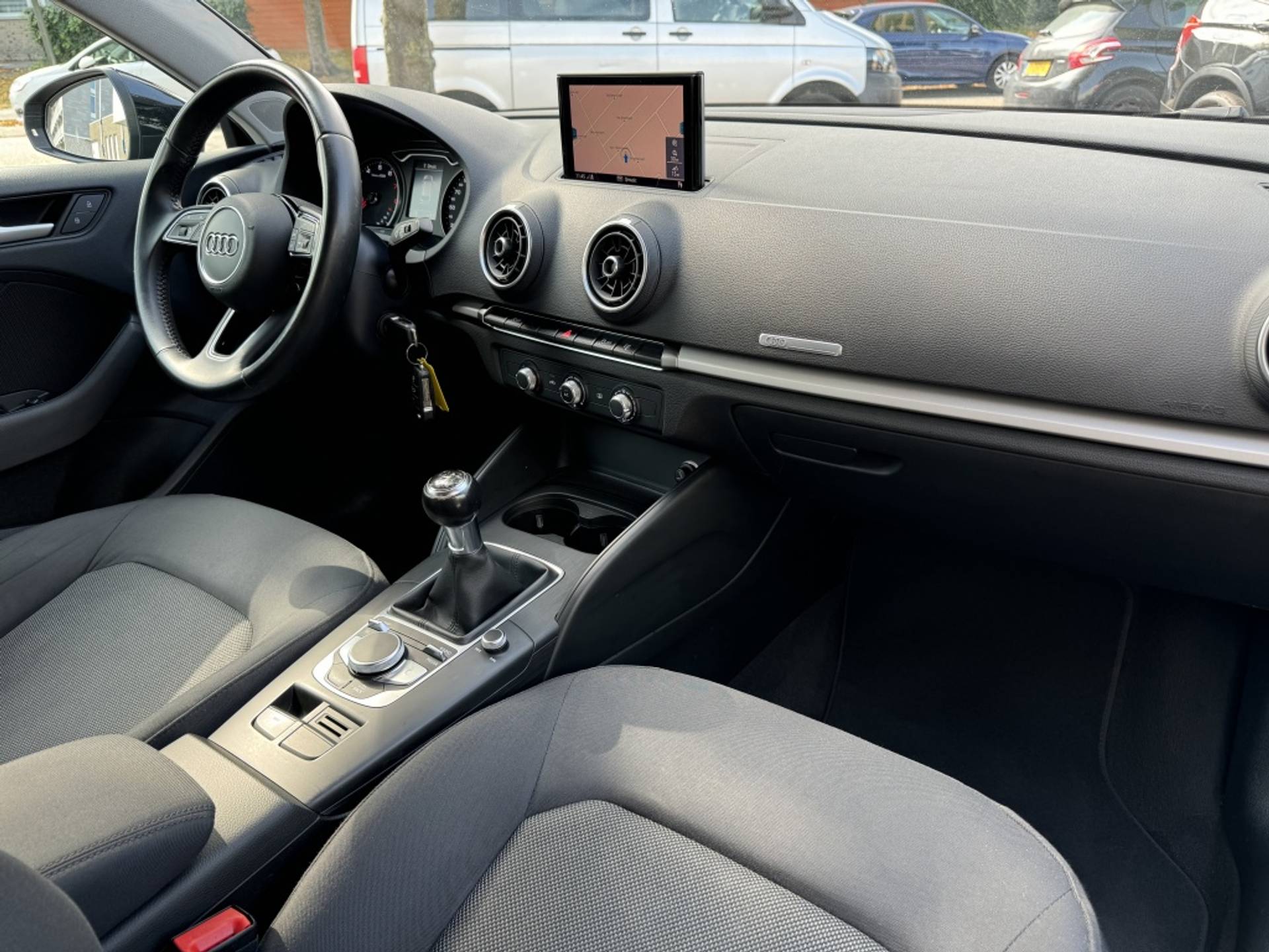 U kunt tijdens de rit uw ogen steeds op de weg houden, want het audio-installatiesysteem en het navigatiesysteem met harde schijf kunt u bedienen vanaf het stuur. Inparkeren zonder angst voor schade. De parkeersensoren helpen u om moeiteloos in de kleinste parkeervakken te manoeuvreren. Er is cruise control aan boord, voor veilige en zuinige kilometers. En natuurlijk is er ook gedacht aan airconditioning. De uitrusting van deze Audi is met lederen sportstuur en automatisch dimmende spiegels behoorlijk compleet.