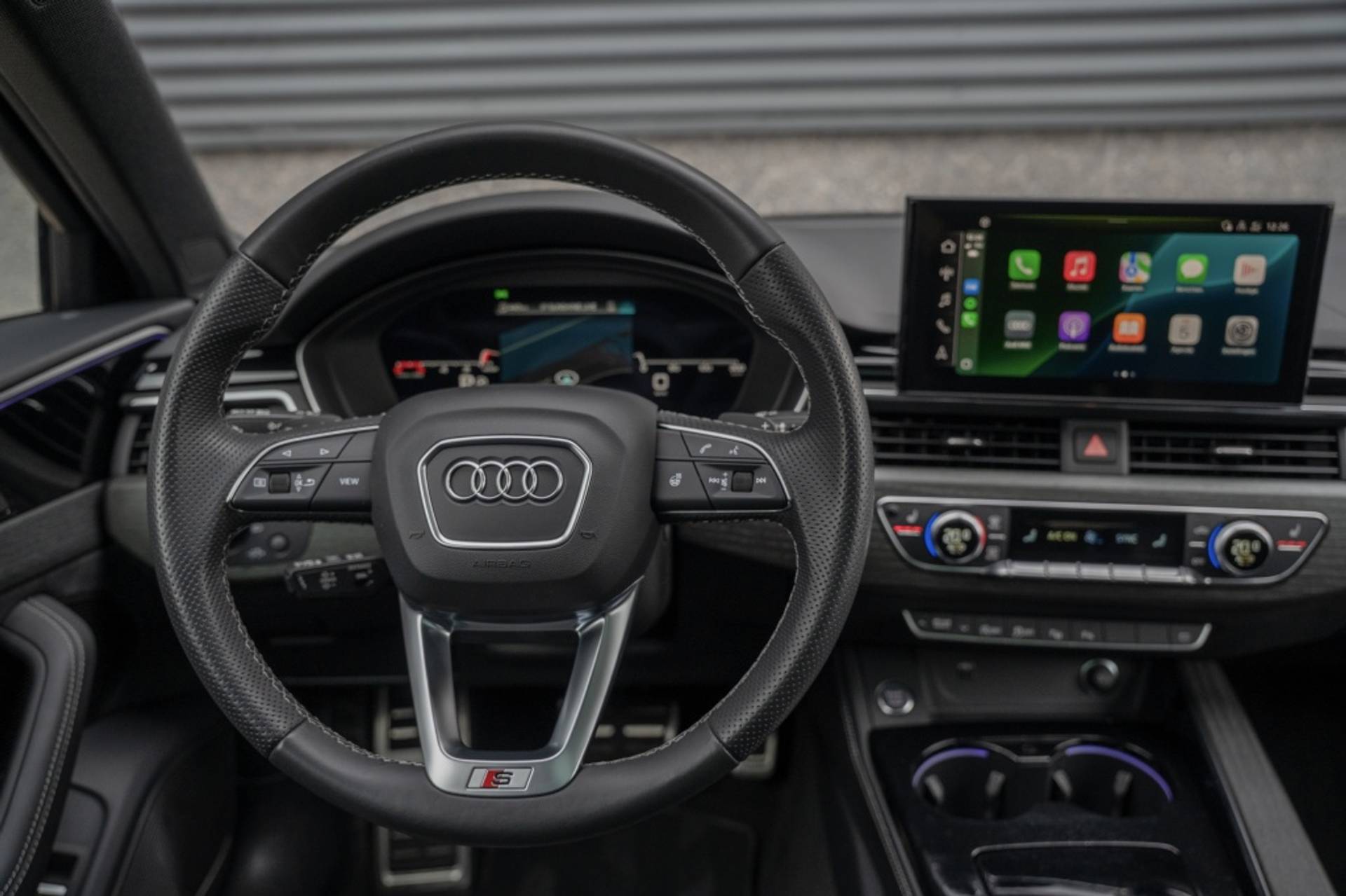 Het exterieur van deze Audi A4 is voorzien van luxe details, zoals koplampsproeiers die niet alleen zorgen voor een helder zicht, maar ook bijdragen aan de elegante uitstraling van de auto. De zwarte buitenspiegels geven de auto een stoer tintje en maken het plaatje helemaal compleet.