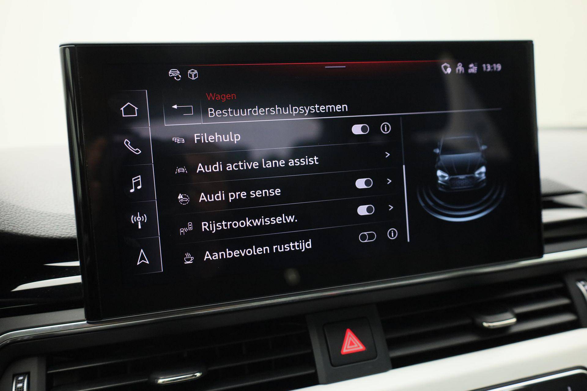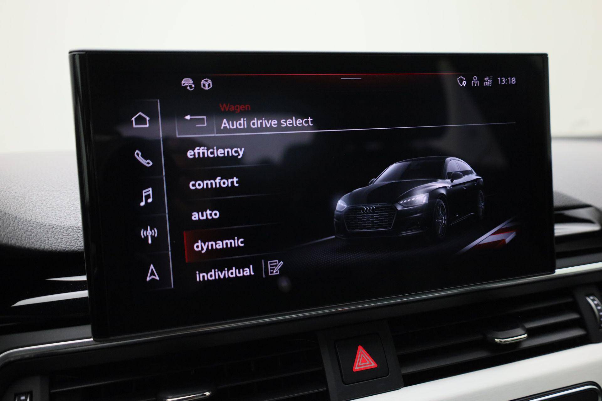 In de Audi A5 Sportback heeft uw veiligheid en die van uw omgeving prioriteit. Dat de auto steeds meer taken van de bestuurder overneemt, merkt u bijvoorbeeld aan het systeem voor verkeersbord-detectie in deze auto. Het Lane-keeping systeem zorgt voor een automatisch constante positie binnen de rijstrook. Afdwalen is uitgesloten. Forward collision warning waarschuwt bij een dreigende aanrijding en vermindert de gevolgen van een ongeval. Dankzij veiligheidsvoorzieningen als dodehoekdetectie, hill hold functie, brake assist en bandenspanningcontrolesysteem, bent u steeds veilig onderweg.