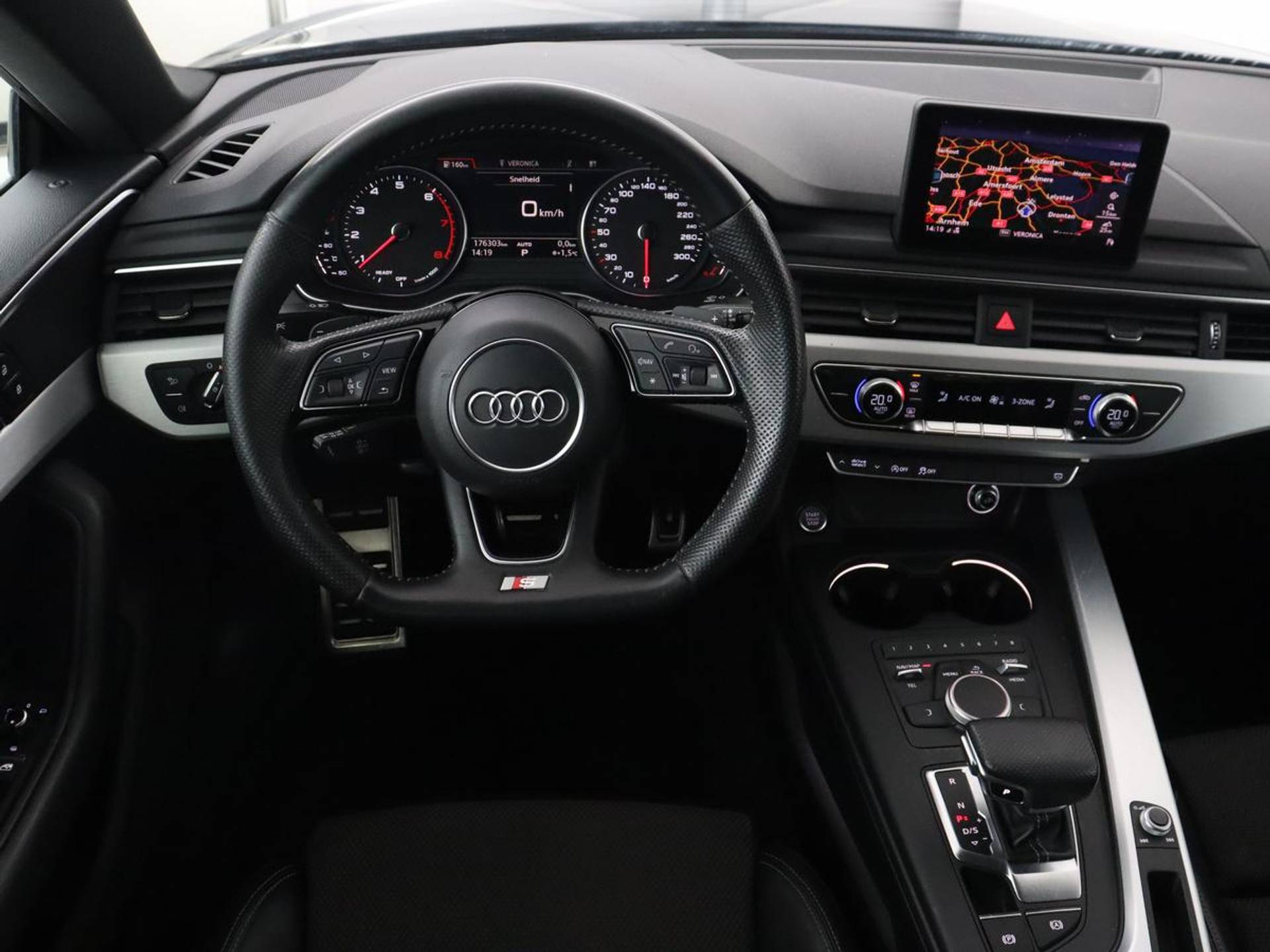 Het infotainmentsysteem bedient u met uw vingers of met uw stem, met dank aan de geïntegreerde stembediening. Deze Audi A5 is voorzien van remote services. Via uw smartphone bedient u diverse functies ook op afstand en krijgt u informatie over de status van uw auto. Met de routebegeleiding van het full map navigatiesysteem kunt u zich volledig op het verkeer concentreren. Het spreekt voor zich dat een auto als deze ook van electronic climate control is voorzien. De elektronische systemen in deze Audi helpen u actief om comfortabeler te rijden. Een automatisch inschakelbare verlichting en een regensensor houden de omstandigheden onderweg in de gaten. Wat u ook in deze auto kunt vinden zijn sportstuur met schakelpaddels, cruise control, centrale deurvergrendeling met afstandsbediening en boordcomputer.