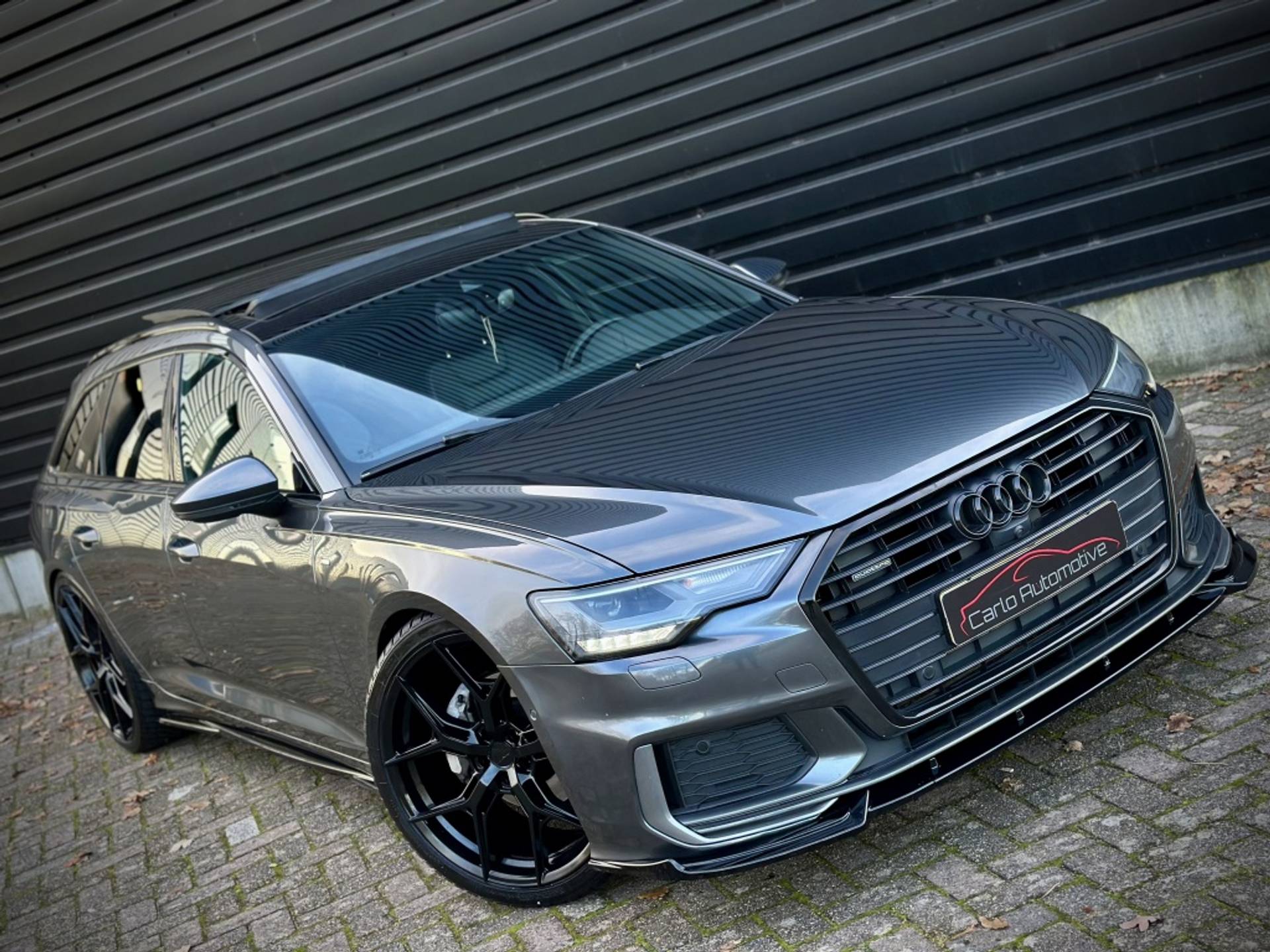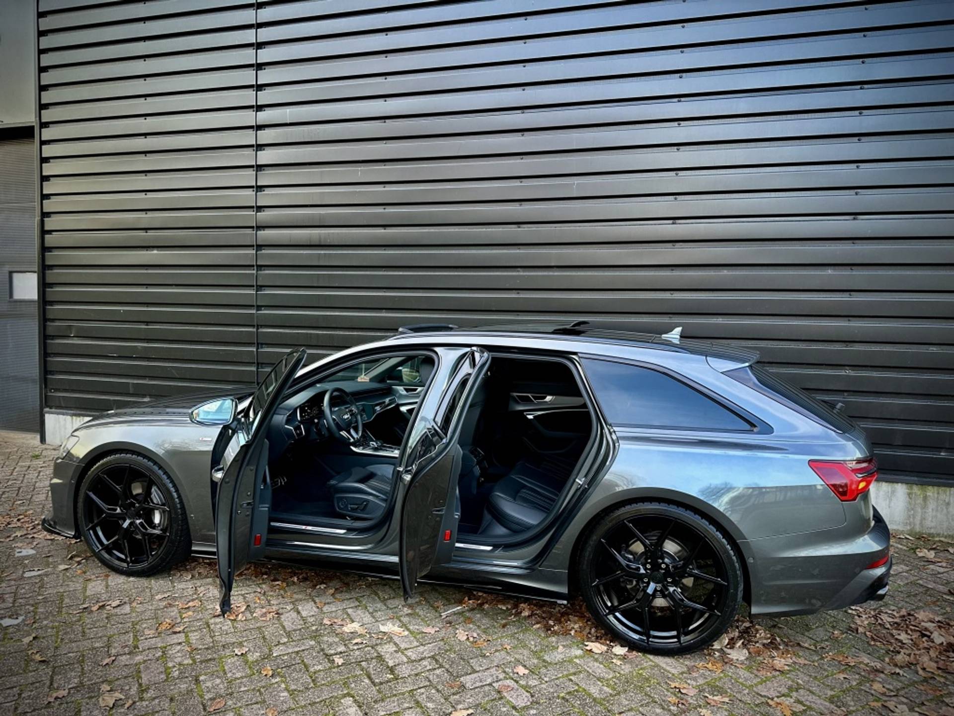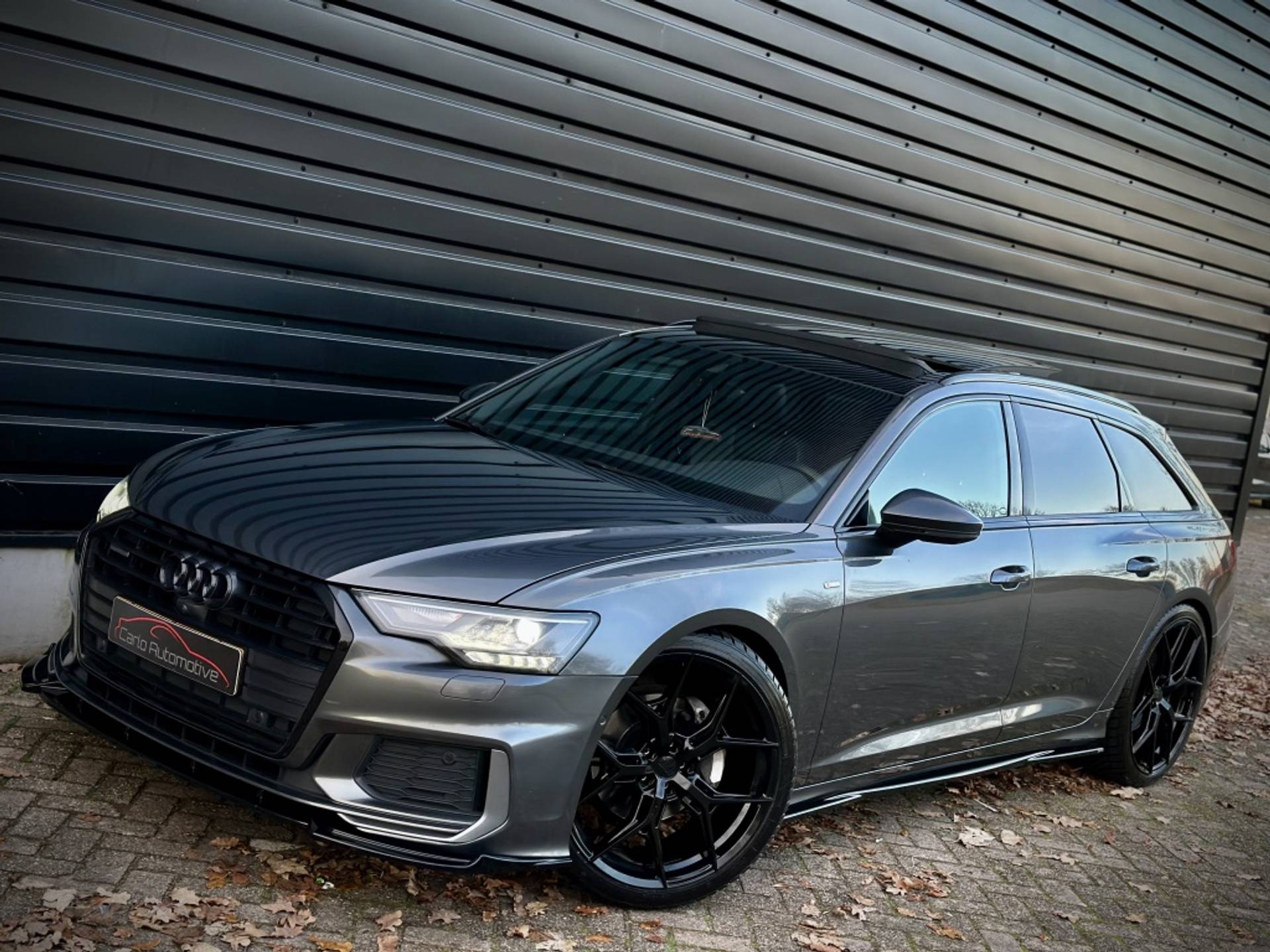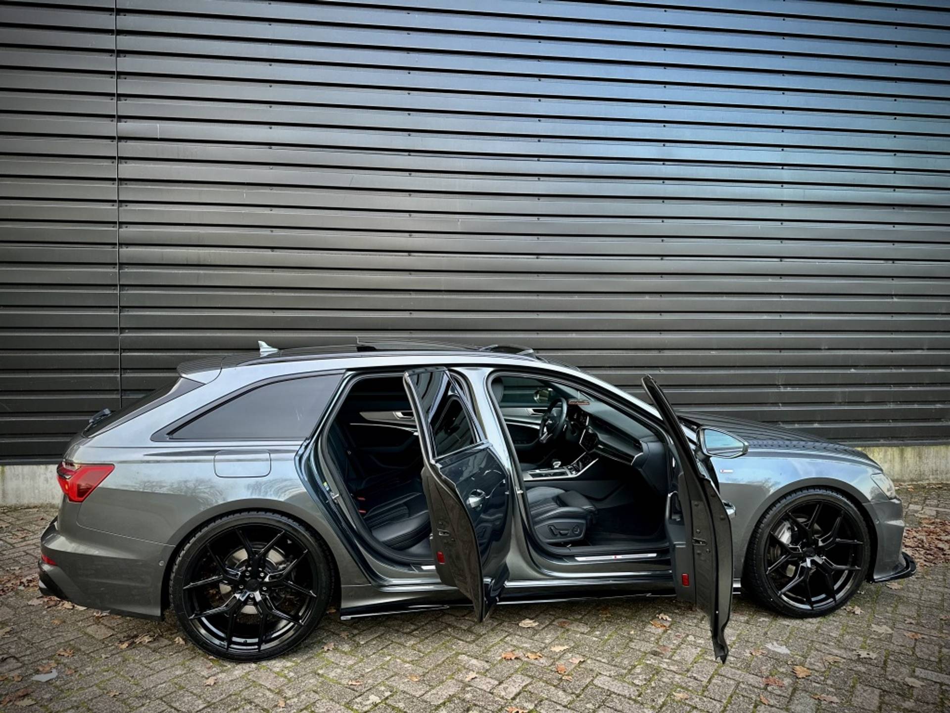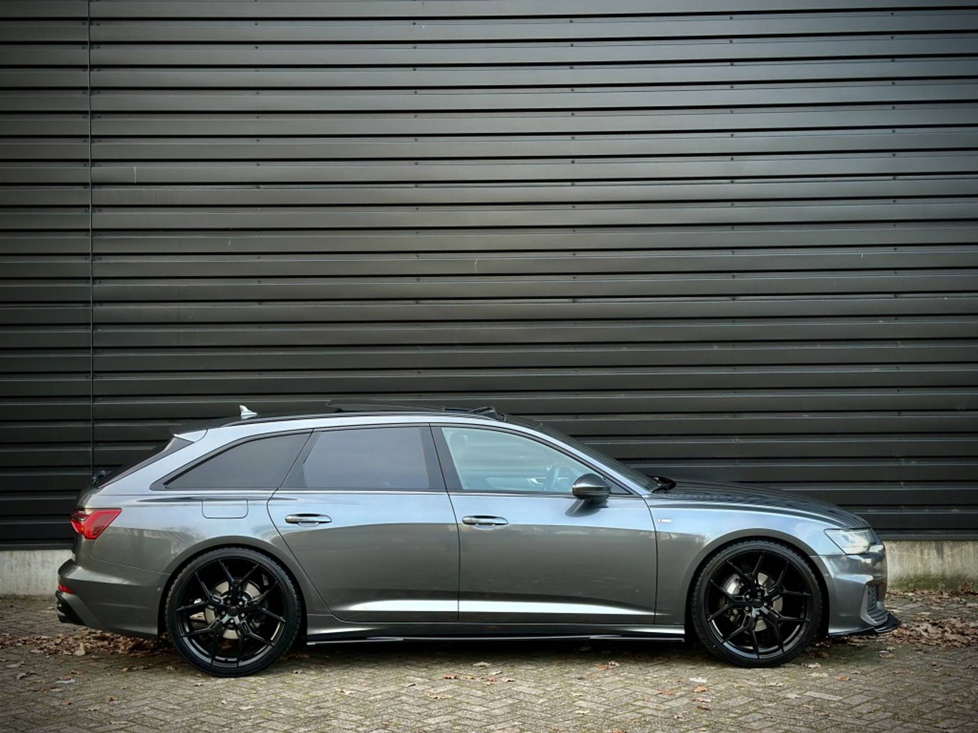 Zeer fraaie Audi A6 Avant 45 TFSI Quattro met volledig (3x)! S-Line optiek. Uitgevoerd in het begeerde Daytonagrau-Mettalic, met hoogglans zwarte accenten, MAXTON exterieur pakket en een volledig zwart lederen interieur. Om het plaatje compleet te maken, is het voertuig tevens voorzien van een 22'' hoogglans zwarte Concaver styling velgenset met rondom (4x)! splinternieuwe banden!