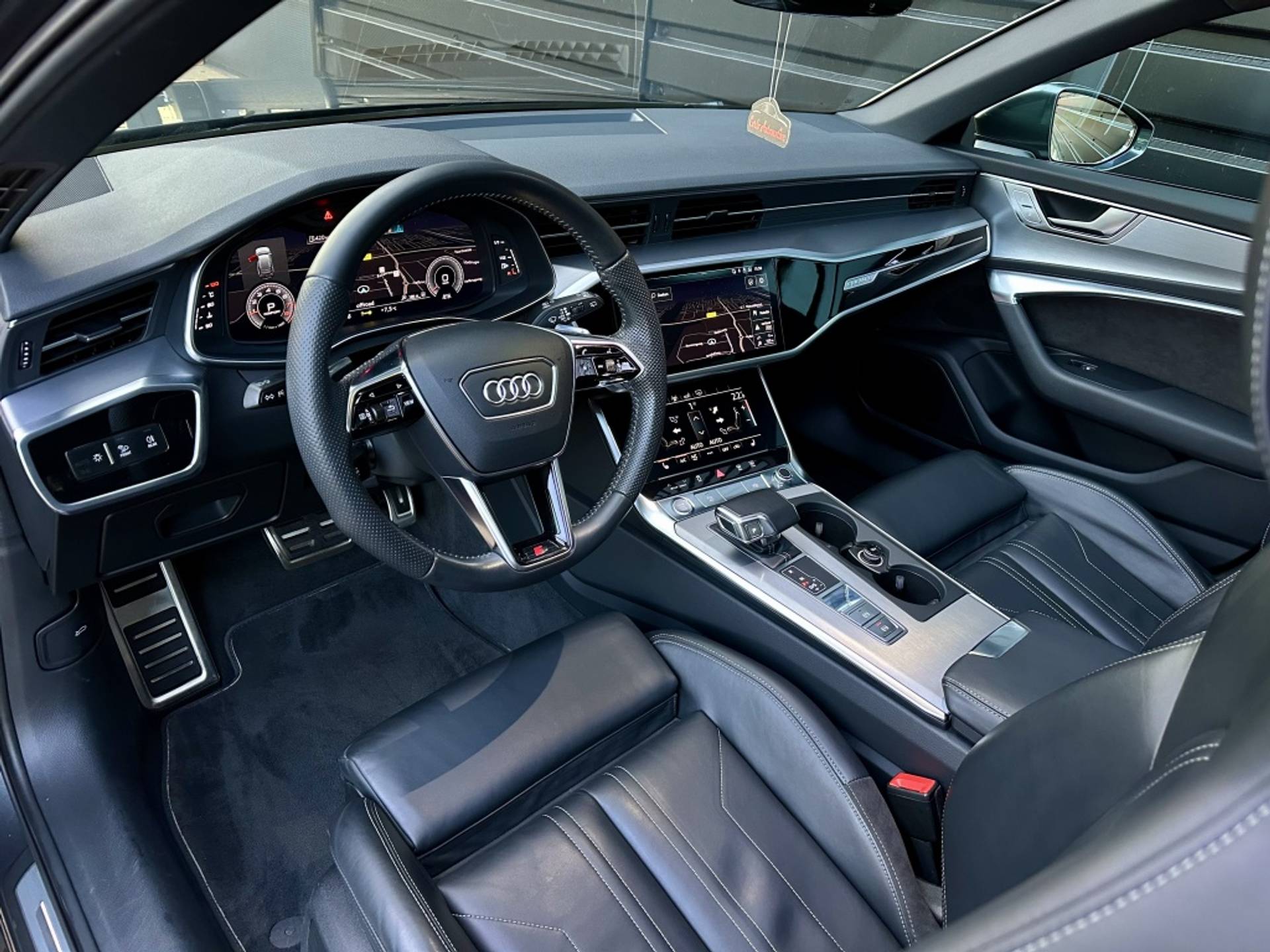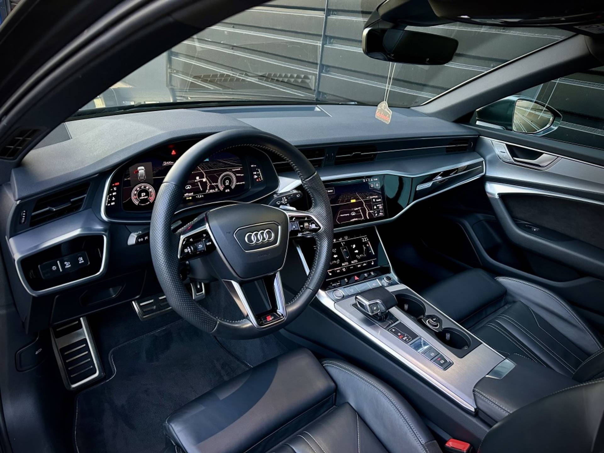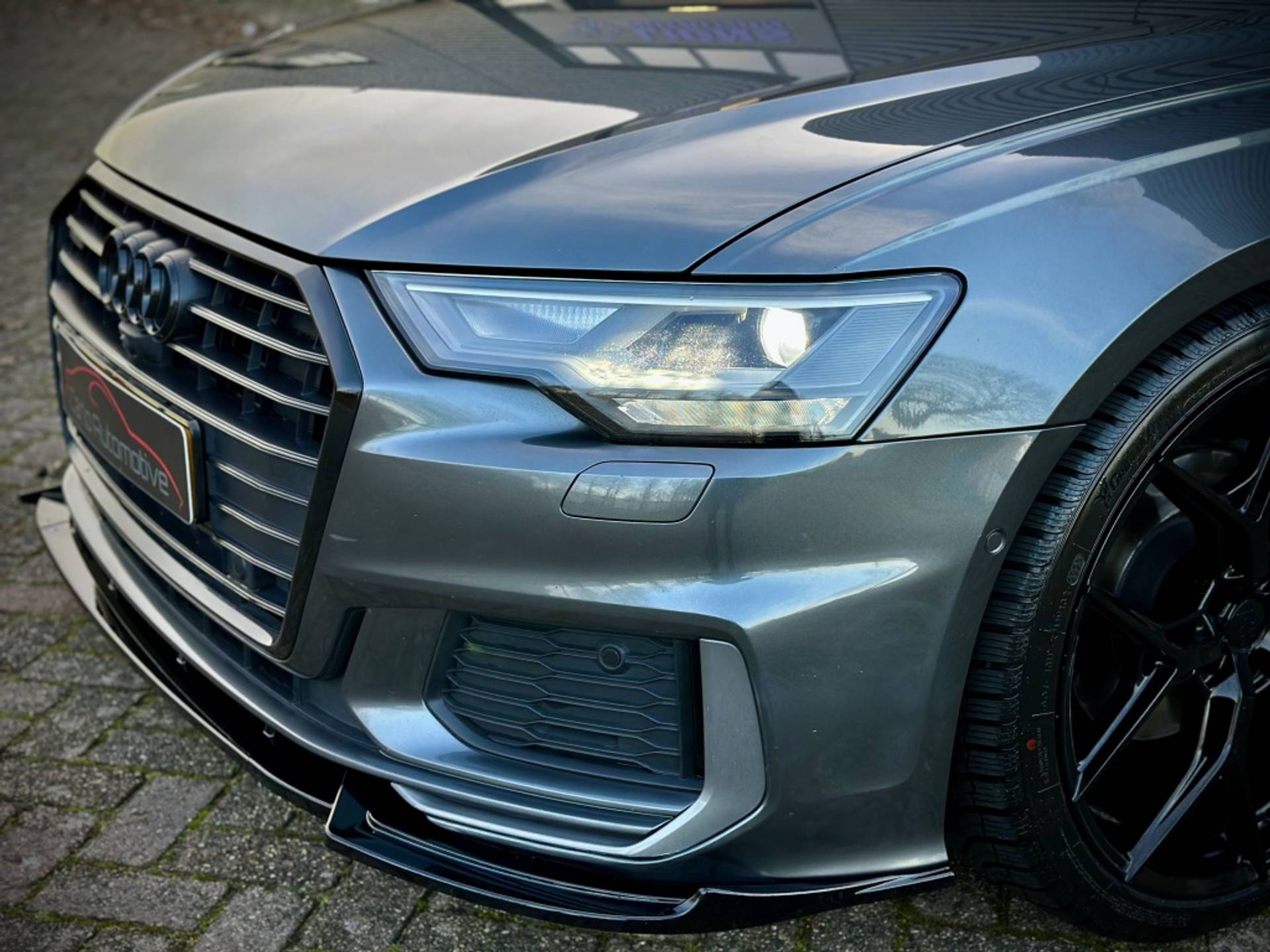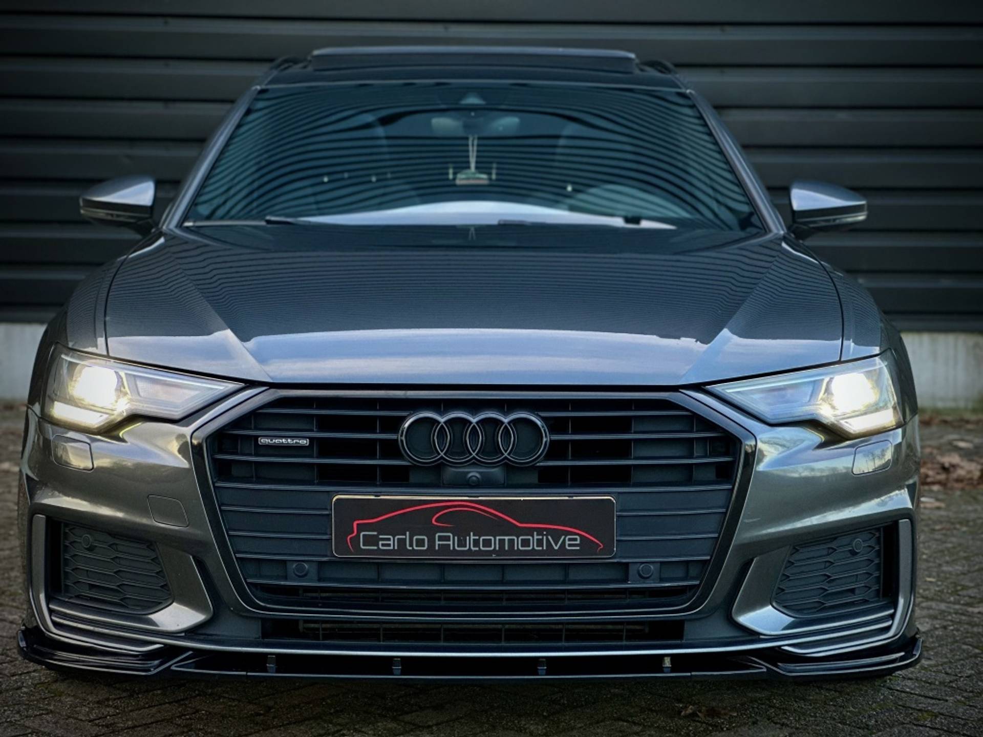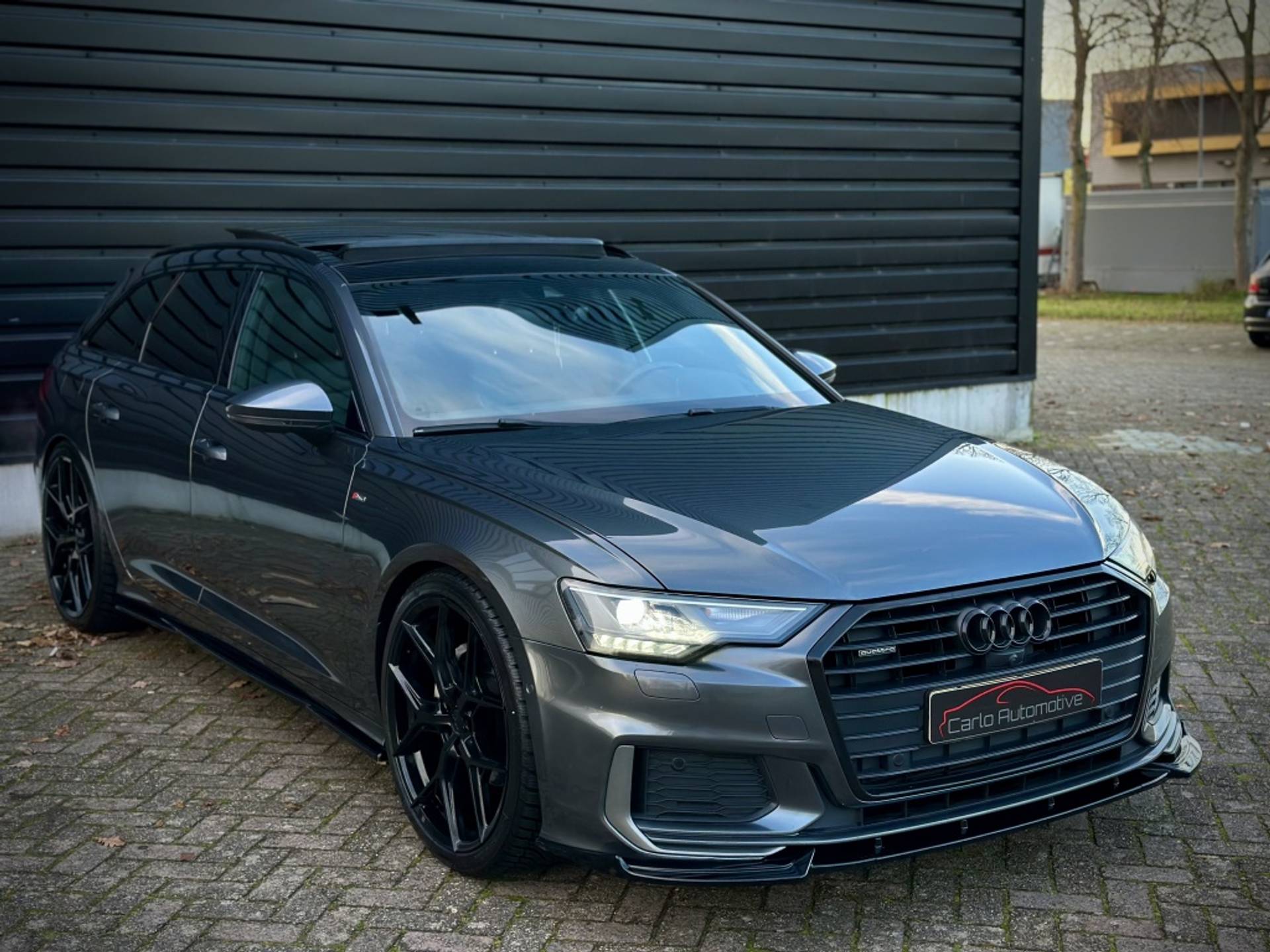 Zeer fraaie Audi A6 Avant 45 TFSI Quattro met volledig (3x)! S-Line optiek. Uitgevoerd in het begeerde Daytonagrau-Mettalic, met hoogglans zwarte accenten, MAXTON exterieur pakket en een volledig zwart lederen interieur. Om het plaatje compleet te maken, is het voertuig tevens voorzien van een 22'' hoogglans zwarte Concaver styling velgenset met rondom (4x)! splinternieuwe banden!