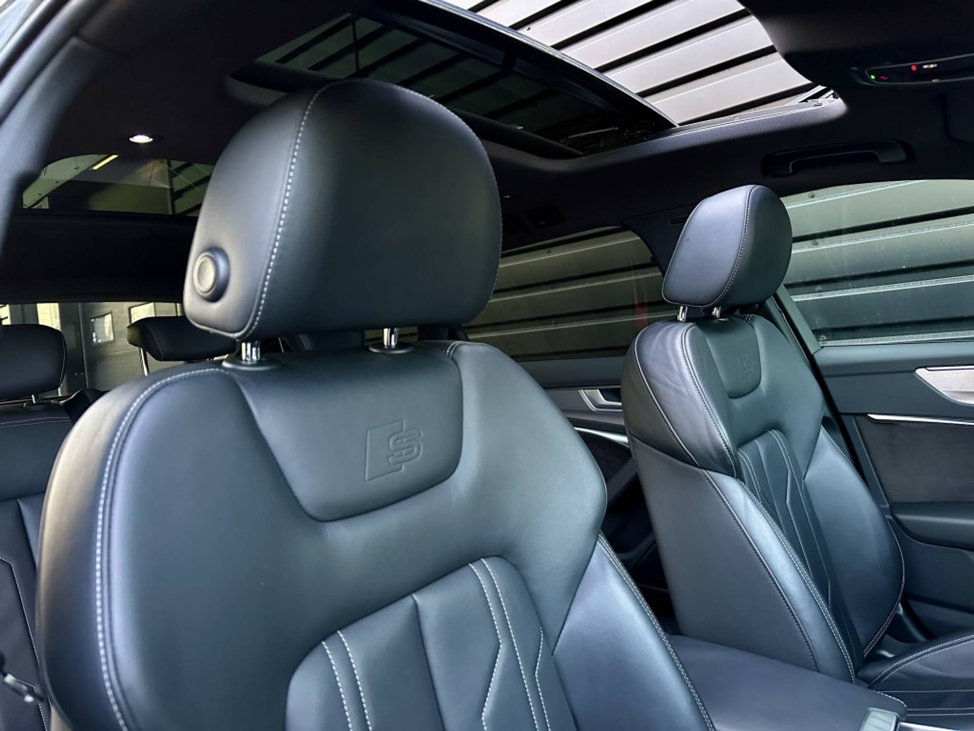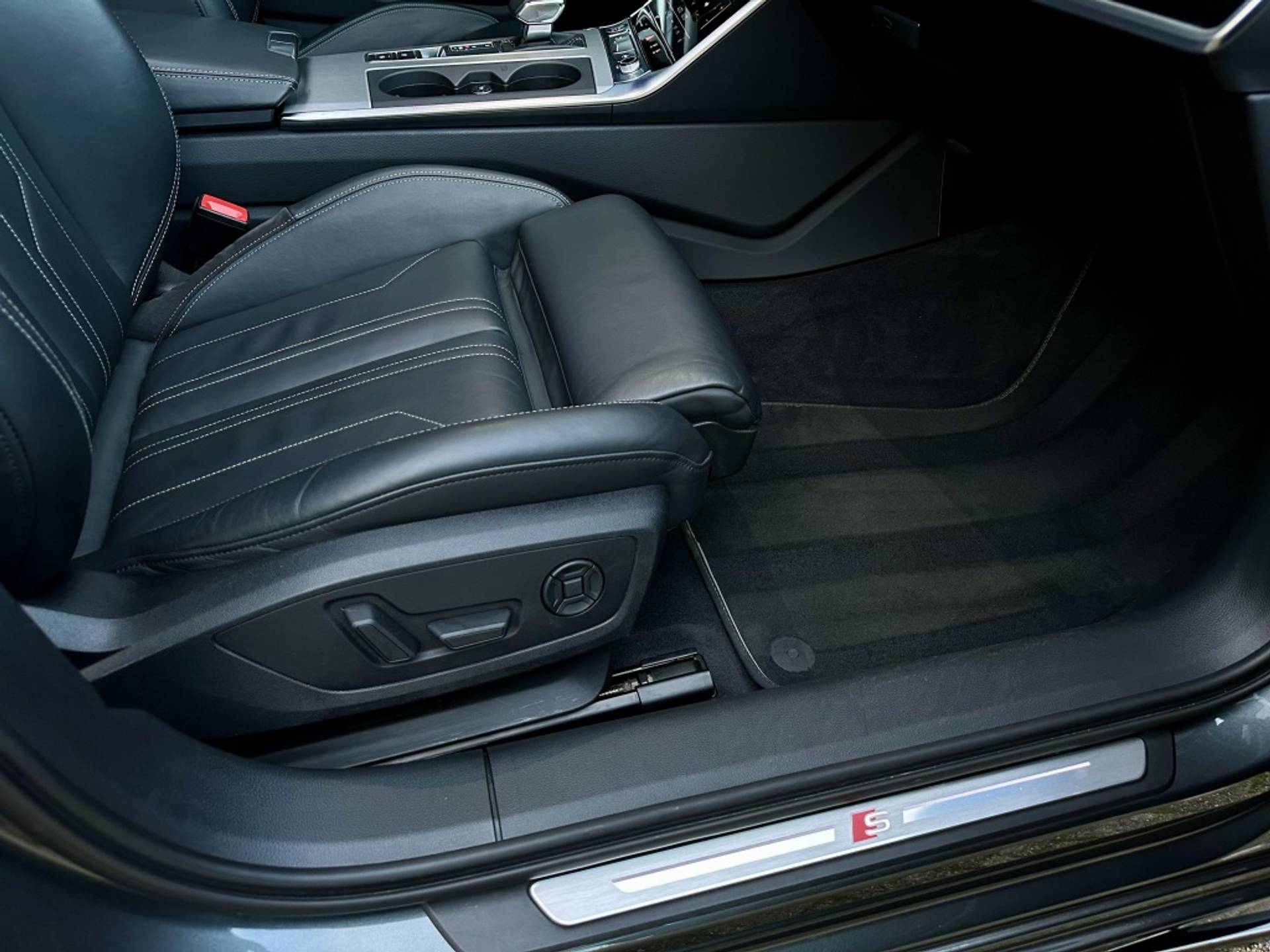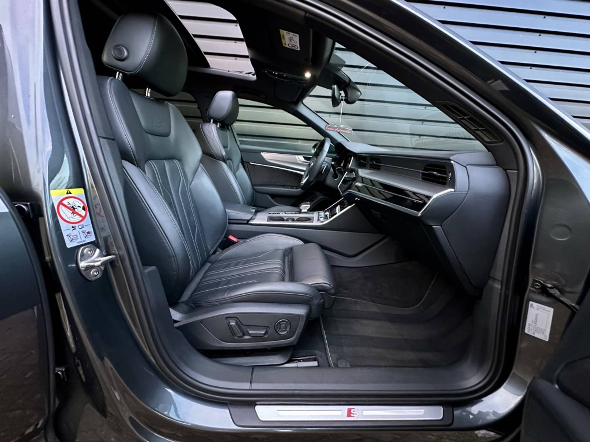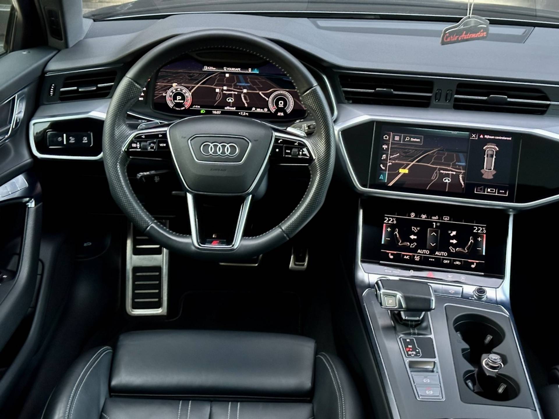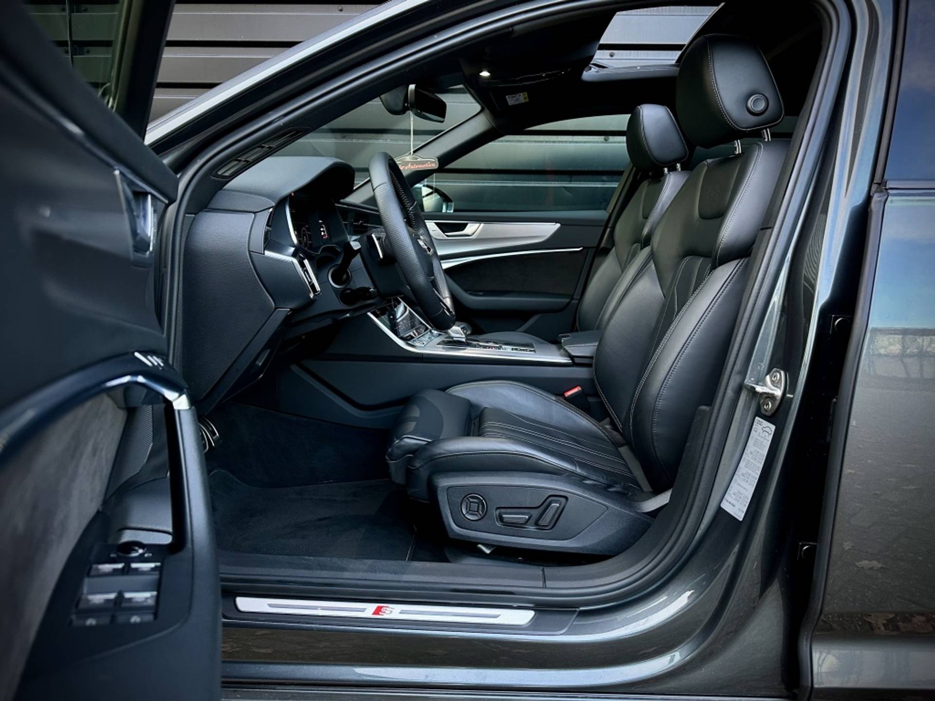 Zeer fraaie Audi A6 Avant 45 TFSI Quattro met volledig (3x)! S-Line optiek. Uitgevoerd in het begeerde Daytonagrau-Mettalic, met hoogglans zwarte accenten, MAXTON exterieur pakket en een volledig zwart lederen interieur. Om het plaatje compleet te maken, is het voertuig tevens voorzien van een 22'' hoogglans zwarte Concaver styling velgenset met rondom (4x)! splinternieuwe banden!