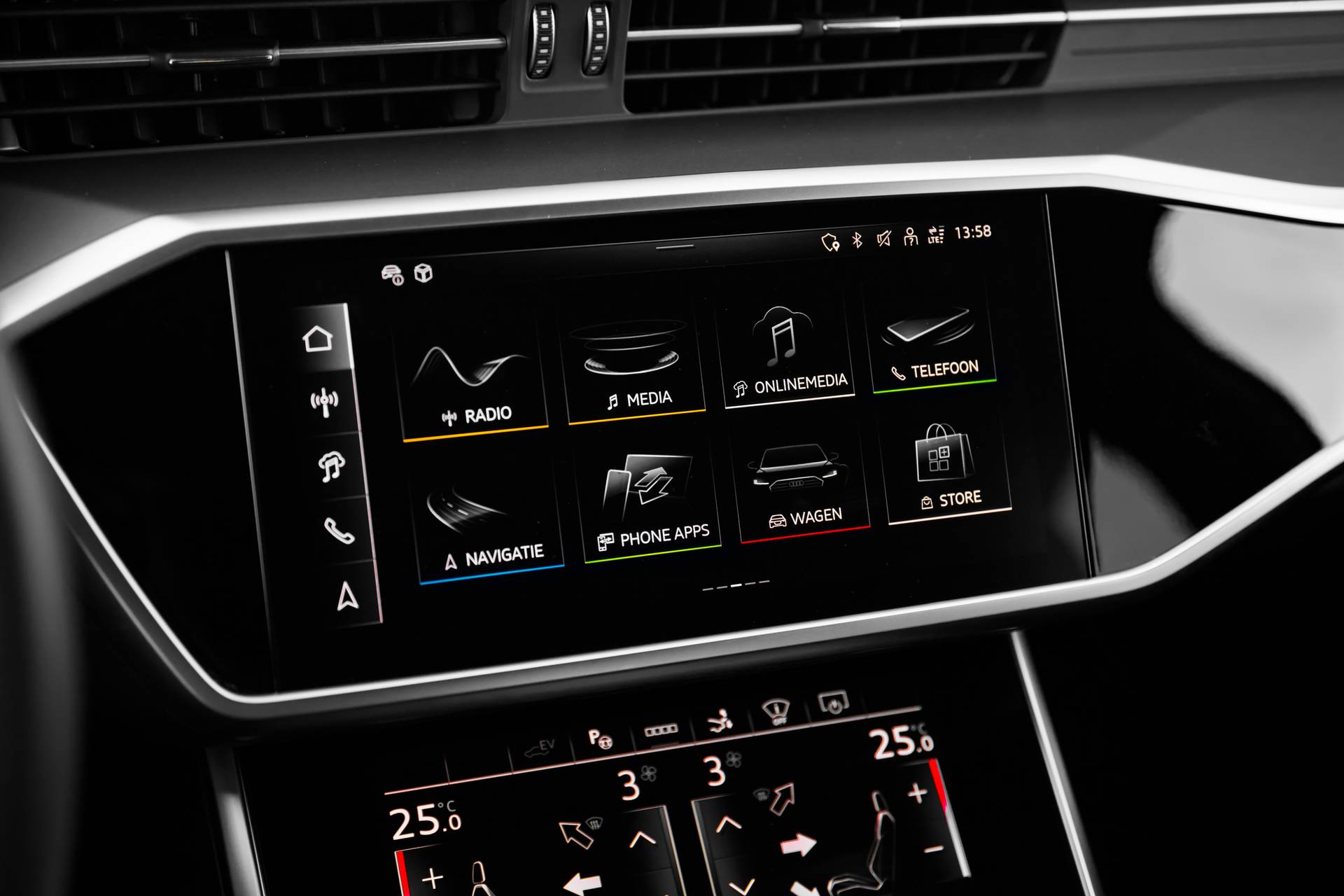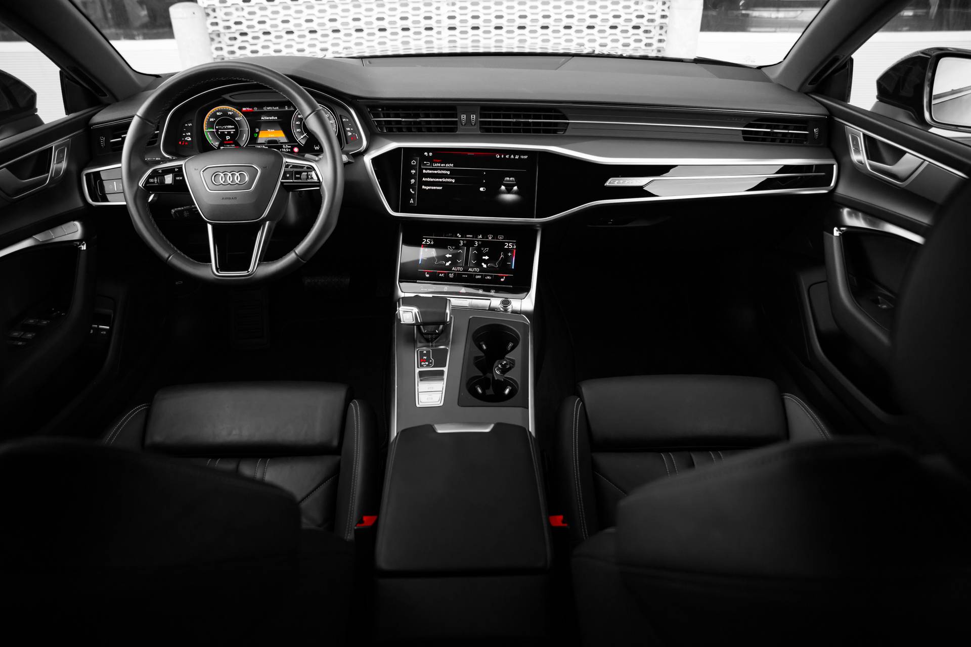 Auto's als deze Audi A7 Sportback bieden tegelijk rijdynamiek, comfort en degelijkheid. De combinatie van een verbrandingsmotor en een elektromotor zorgt voor prima rij-eigenschappen en een laag brandstofverbruik. Deze Audi A7 Sportback is luxe afgewerkt. Kijk maar naar het lederen interieur! Neem plaats op de comfortabele stoelen. Dankzij de elektrische bediening en het geheugen is het eenvoudig om hierin de beste zitpositie te vinden. De bagageruimte is toegankelijk via een comfortverhogende elektrische achterklep. Ook 18 inch lichtmetalen velgen, LED koplampen, warmtewerend glas, in delen neerklapbare achterbank en LED-achterlichten horen tot de voorzieningen op deze auto. Ervaar de wonderen van de digitale mobiliteitswereld waarbij alles wat u wenst op het digitale dashboard verschijnt. Met de hulp van vier camera's, biedt de 360 graden camera op deze auto een panoramisch zicht, wat bijzonder nuttig is bij het parkeren en manoeuvreren. Met adaptive cruise control houdt de auto zelfstandig afstand tot uw voorligger. Een veiligheidsverhogende optie waarmee u comfortabel onderweg bent. De aanwezige file assistent meet de afstand tot uw voorligger en zorgt voor een veilige afstand. Staat het voor u opeens stil? Dan zorgt het systeem dat de auto ook stopt. Handig en veilig: Connected Services. Alle vitale functies en data van de auto checkt u via de app op uw smartphone. Ook full map navigatiesysteem, kruisend verkeer detectie, electronic climate control, sportstuur met schakelpaddels, DAB ontvangst en regensensor horen tot de voorzieningen op deze auto. Deze Audi is voorzien van verschillende intelligente veiligheidsvoorzieningen. Ze kijken tijdens het rijden als het ware met u mee, ze signaleren potentieel gevaarlijke situaties en in een aantal gevallen kunnen ze ook ingrijpen. Rijden met het overzicht van een straaljagerpiloot? De praktische en veilige head-up display projecteert dashboardinfo binnen uw gezichtsveld, zodat u uw blik nooit hoeft te verplaatsen. Oog op de weg! Het Lane-keeping systeem zorgt dat u mooi binnen de lijntjes blijft. Ongemerkt buiten de rijstrook komen is er niet meer bij. Het forward collision warning-systeem is constant alert en detecteert via sensor de afstand tot voorliggers. Wordt die te klein, dan volgt een automatische waarschuwing. U bent mede dankzij dodehoekdetectie en frontale botsbescherming steeds veilig onderweg. Bent u nieuwsgierig naar deze Audi A7 Sportback? Laat het ons dan snel weten.