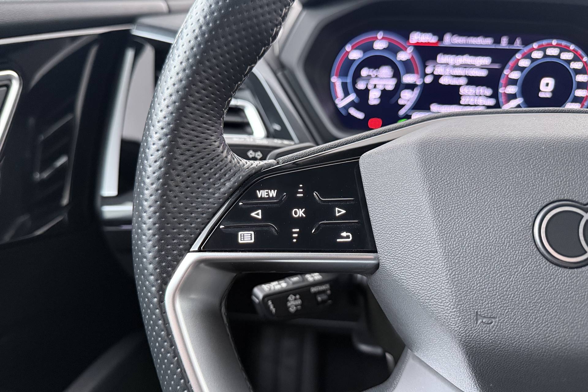 ✓ Vierspaaks lederen sportstuur, afgevlakt aan de boven- en onderzijde, multifunctioneel, met stuurpaddels