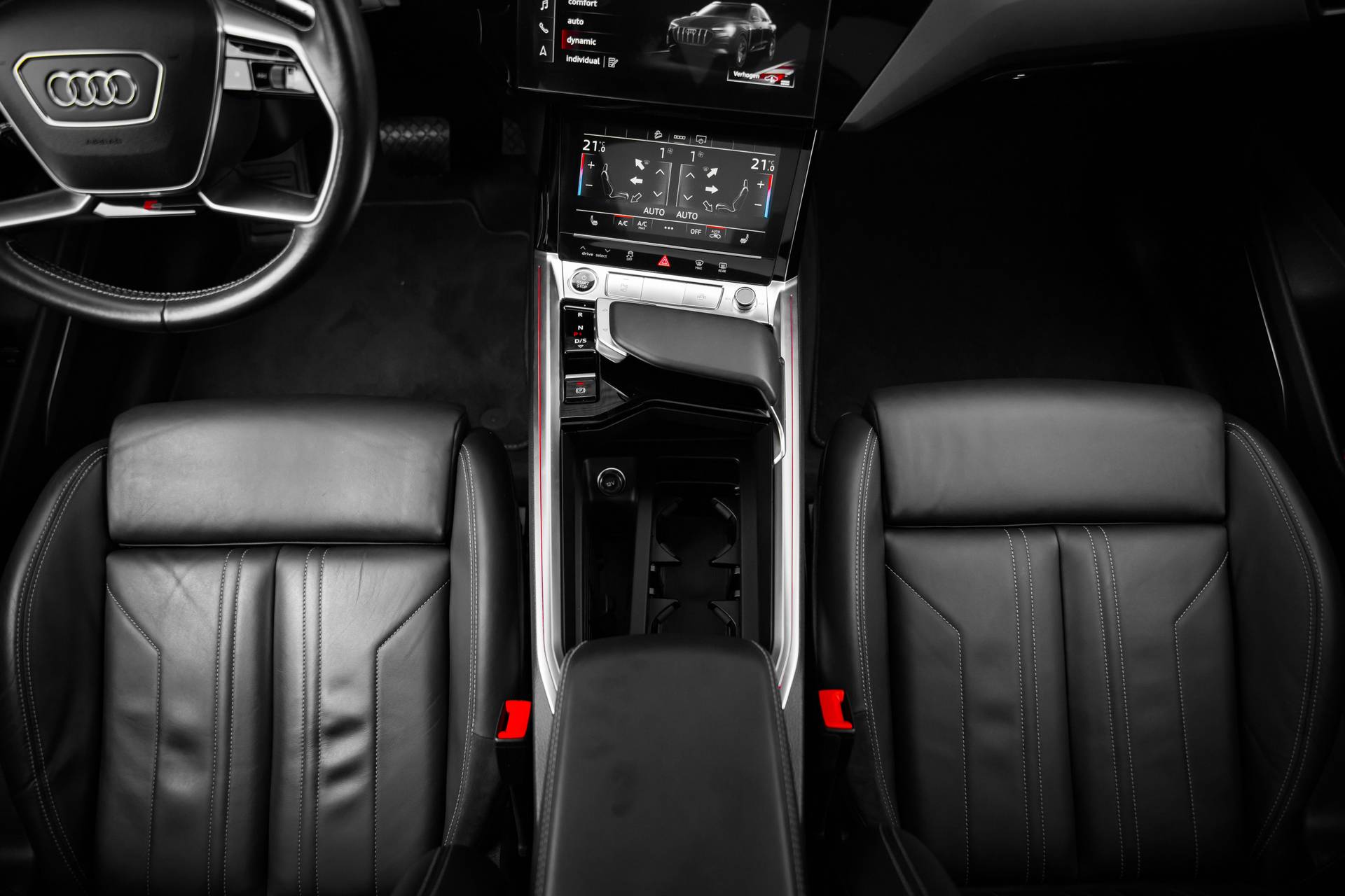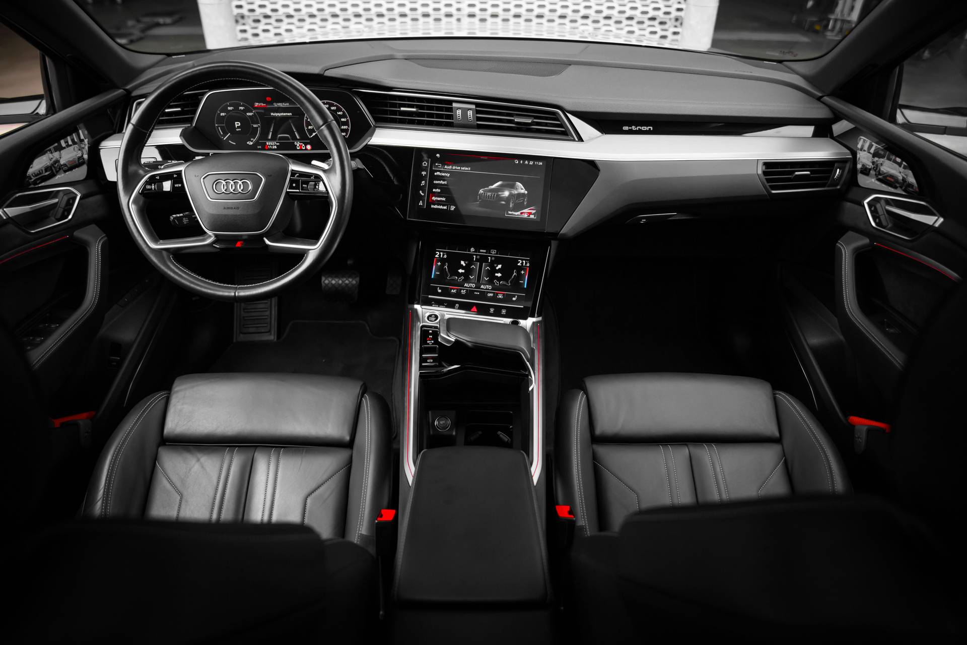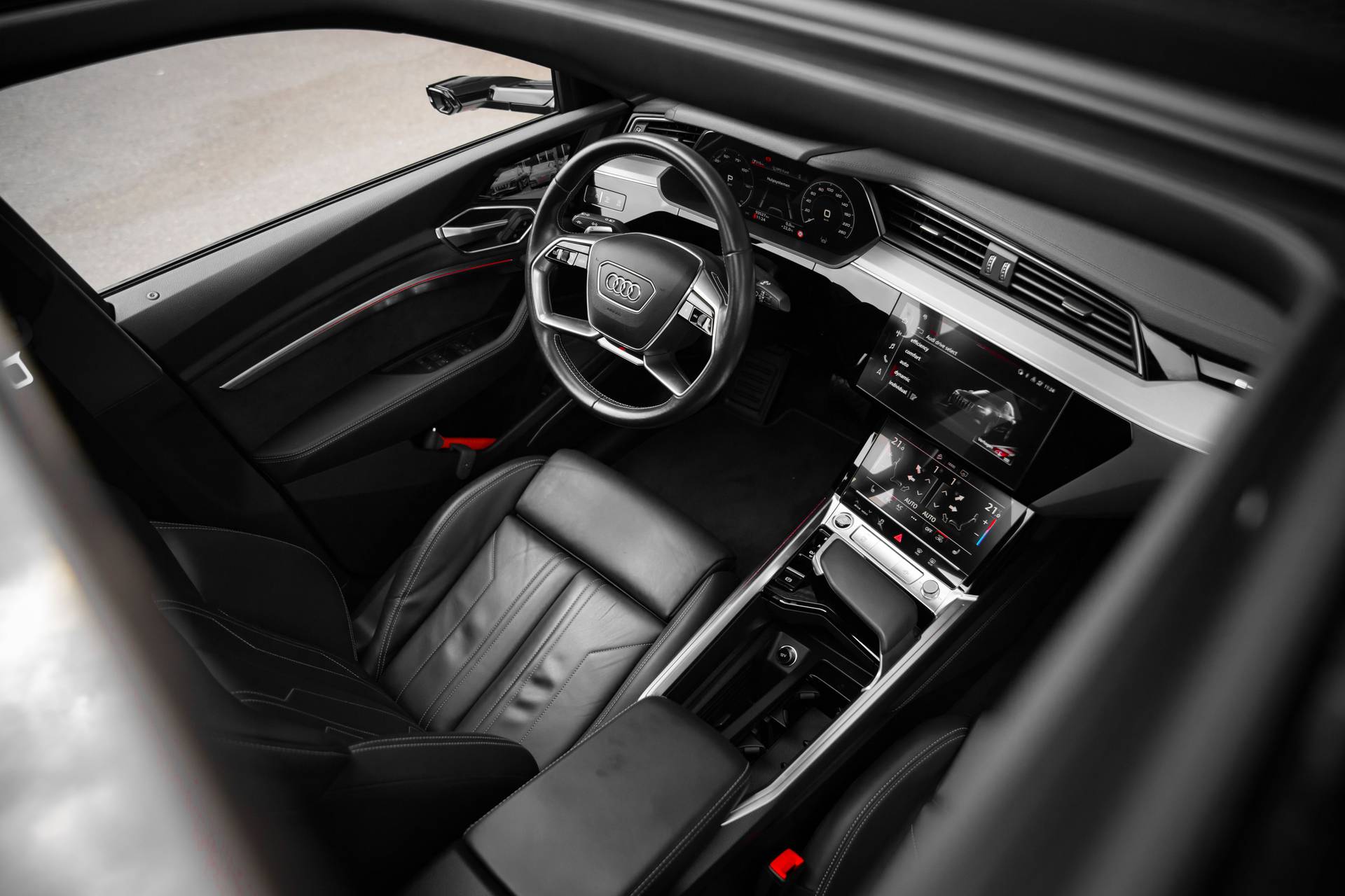 Hij is doordacht innovatief en duurzaam als geen ander: de elektrische Audi e-tron Sportback biedt met zijn elektrische aandrijving een ongekende rijervaring. U hoort slechts het lichte gezoem van de elektromotor tijdens het rijden. S-Line styling benadrukt de sportieve functionaliteit van het ontwerp. De krachtige motor geeft deze Audi uitstekende prestaties. Inladen is een eitje met de elektrisch bedienbare achterklep. En voor een frisse wind tijdens de rit is er het elektrisch bediende glazen panorama dak. In de guurste maanden is de meegeleverde stoelverwarming een absolute weldaad! Het uiterst stabiele rijgedrag is te danken aan de aanwezige luchtvering. Tot de voorzieningen van deze auto behoren 20 inch lichtmetalen velgen, LED koplampen, adaptief dempingsysteem, warmtewerend glas, in delen neerklapbare achterbank en LED-achterlichten. Het digitale dashboard is niet alleen enorm fraai en handig, maar draagt actief bij aan een veilige en slimme rit. Adaptive cruise control houdt de ingestelde snelheid vast en houdt afstand tot het voertuig voor u. Rijden-stilstaan, rijden-stilstaan. Niks is irritanter en vermoeiender dan filerijden. Daar heeft deze Audi e-tron Sportback een oplossing voor: de file assistent, die met radarmeting permanent het tempo aanpast op de voorligger. Zelfs als die stopt. Zoals u van zo'n jonge auto mag verwachten, zijn hier ook de geavanceerde remote services aanwezig. Simpelweg met een app op uw smartphone controleert u op afstand de status van de auto en bedient u diverse functies. Uw veiligheid op de weg wordt verhoogd door het audio-installatiesysteem met DAB-ontvangst en het full map navigatiesysteem te bedienen vanaf het stuur of met spraakbediening, zodat uw handen veilig op het stuur blijven en uw ogen gericht zijn op de weg. Natuurlijk behoren electronic climate control, sportstuur met schakelpaddels, parkeersensoren achter, regensensor, automatisch dimmende buitenspiegels en centrale deurvergrendeling met afstandsbediening ook tot de uitrusting van deze complete auto. Pragmatisch en veilig als deze auto is, beschikt hij over diverse veiligheidssystemen. Voorzien van het Lane-keeping systeem. Ofwel: blijf automatisch in je baan. Het forward collision warning-systeem berekent via een sensor de afstand tot het verkeer vóór u en komt in actie als er gevaar bestaat van een botsing. Ook helpen het brake assist en bandenspanningcontrolesysteem, uw rit tot een veilige rit te maken. Misschien wilt u eerst een afspraak maken om te beleven waarom elektrisch rijden de toekomst heeft. Natuurlijk! Neem contact op en maak een proefrit!
