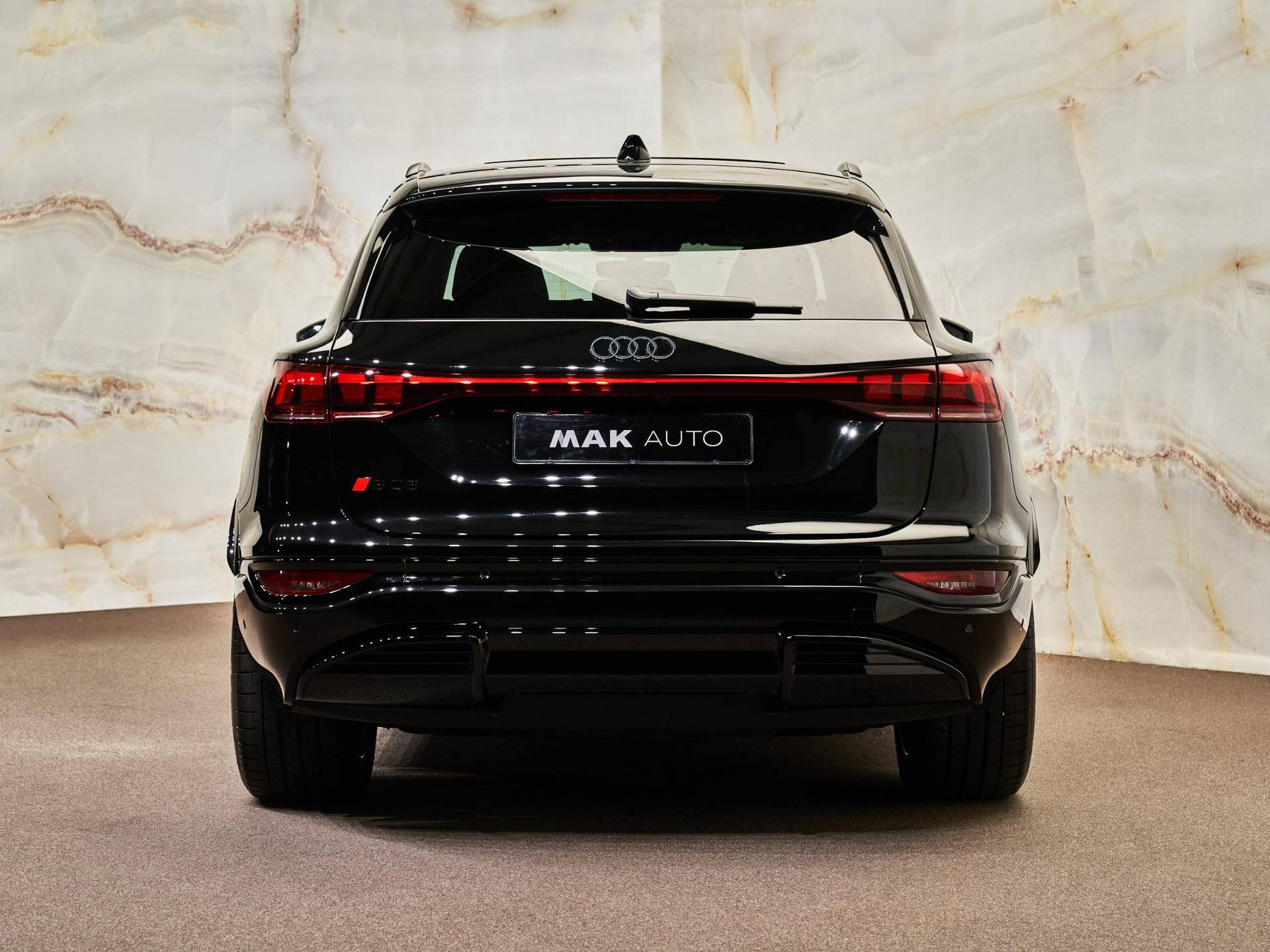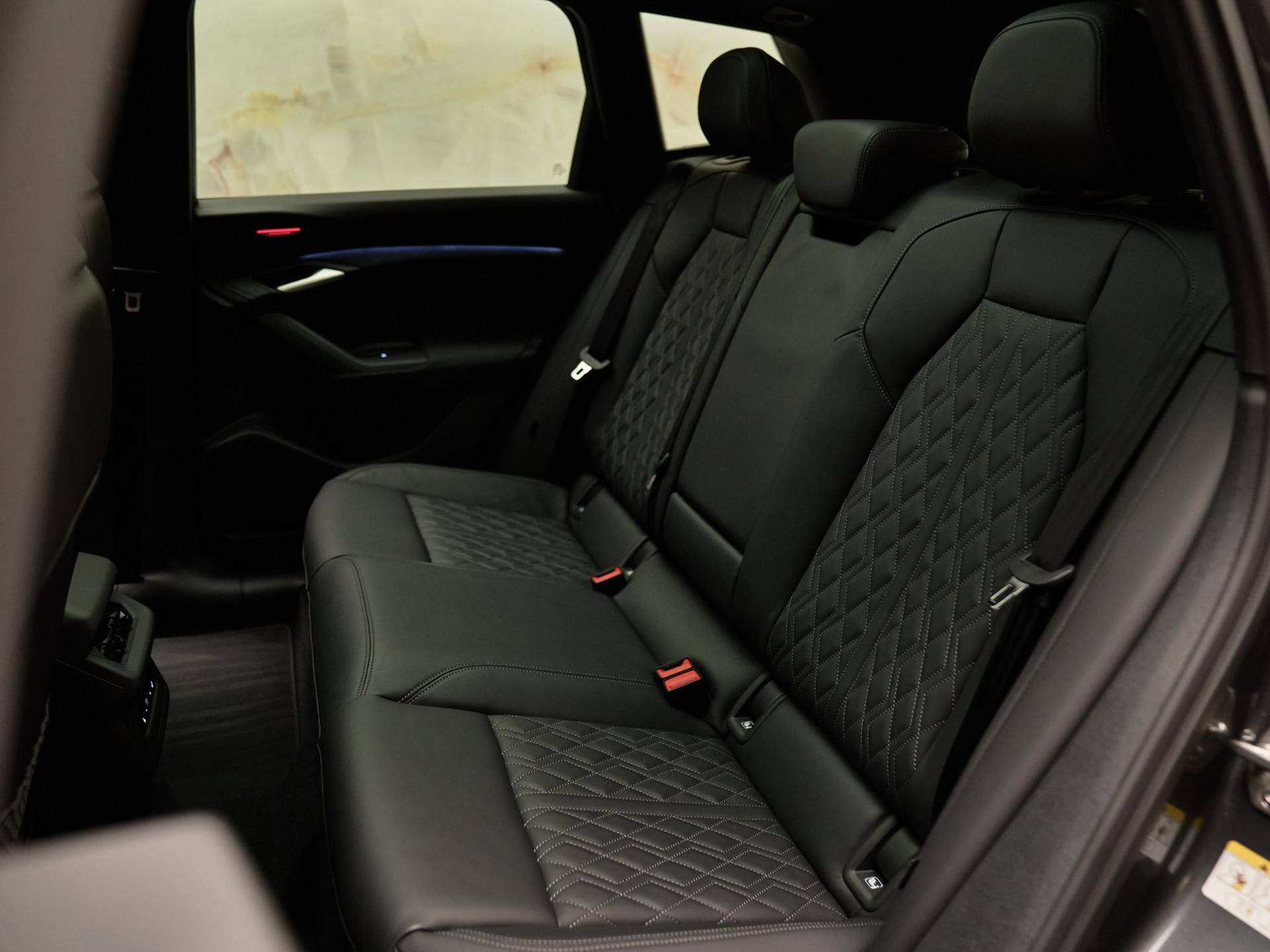 Mythoszwart metallic (0E0E) lak in combinatie met het Zwart optiekpakket (PAH) en de 21” lichtmetalen velgen (46X) geeft de SQ6 e-tron een krachtige en sportieve uitstraling. De Privacybeglazing (QL5), Matrix LED-koplampen (PXC) en Digitale OLED-achterlichten (8VY) met dynamische animatie zorgen voor een opvallende lichtsignatuur. De Dakreling zwart (3S2) en de donkere Audi-ringen (4ZP) onderstrepen het sportieve karakter, terwijl het Panoramadak (3FU) het interieur vult met licht en ruimte.