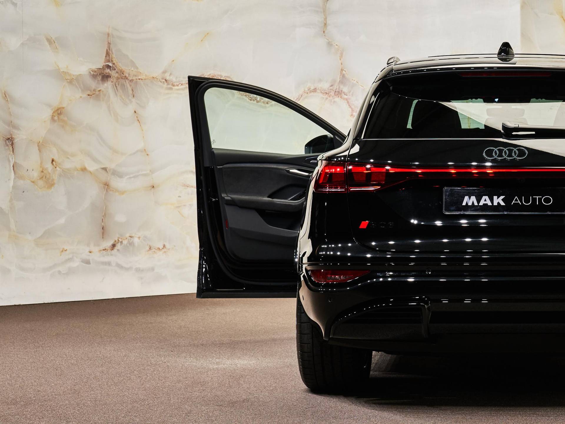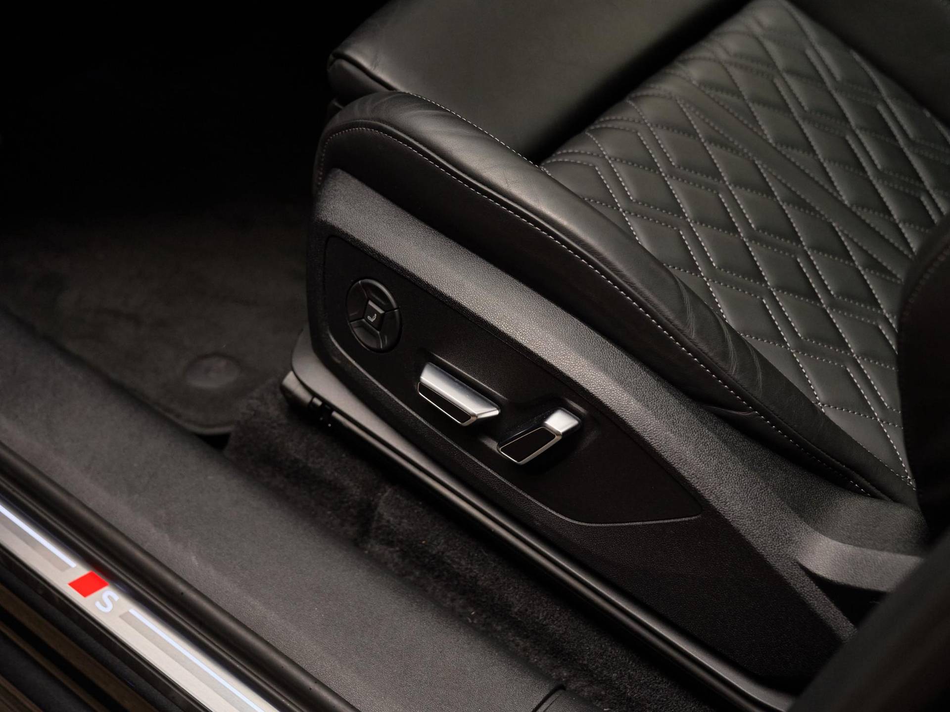 Binnenin treft u een luxueuze ambiance dankzij de Sportstoelen plus in Fijnnappa leder zwart (PWO / N3M) met elektrische verstelling (3L5), pneumatische lendensteun (8I6) en geheugenfunctie voor de bestuurder (AI1). De Stoelverwarming vóór en achter (4A4) en Stuurwielverwarming (AI9) zorgen voor comfort onder alle omstandigheden. Het MMI-passagiersdisplay (JH1) en de Ambienteverlichting (QQ4) creëren een moderne, stijlvolle sfeer, terwijl de Automatische airconditioning met 3 zones (9AU) en de Servosluiting achterklep (4E7) het dagelijkse gebruiksgemak verhogen.