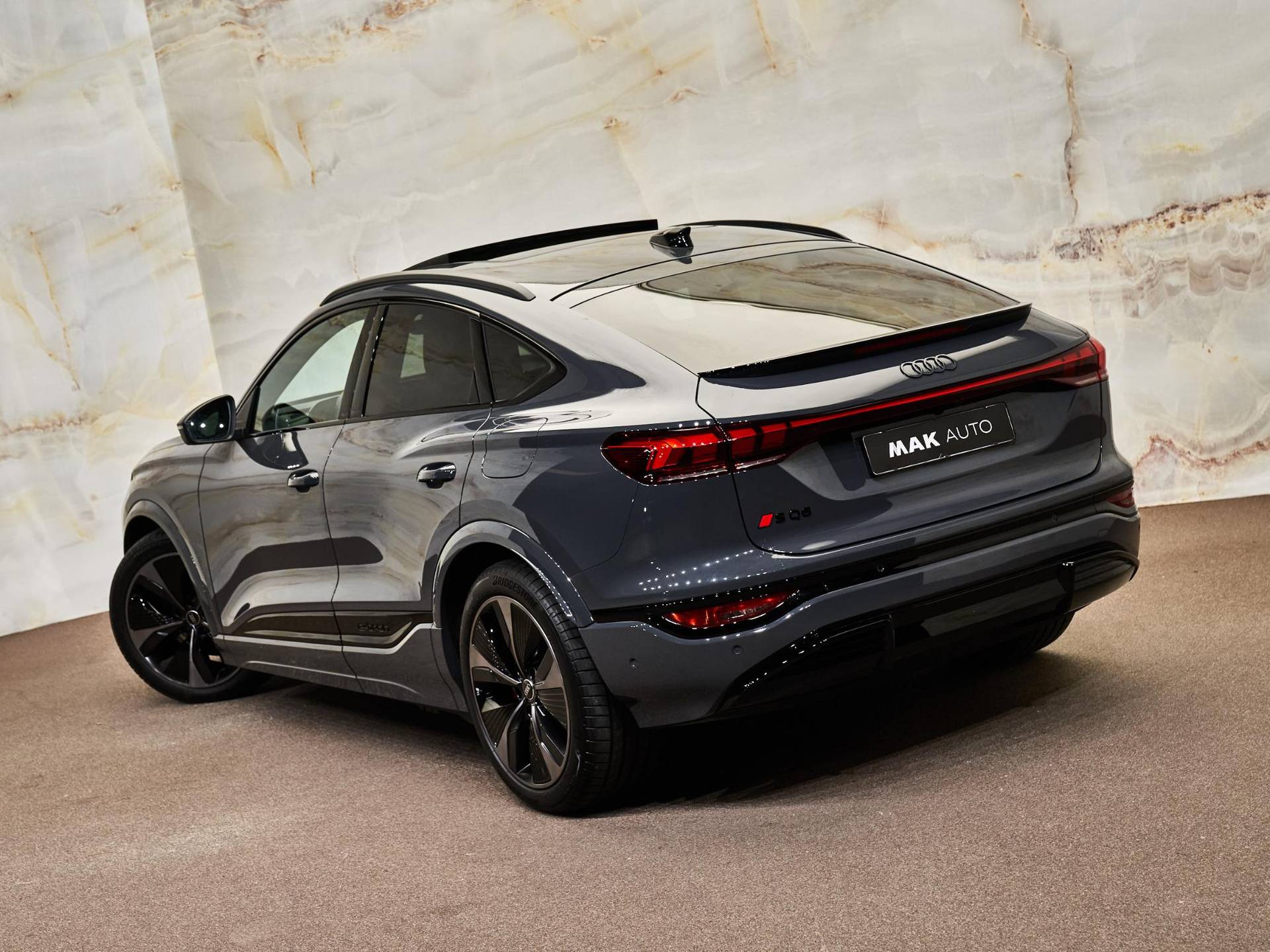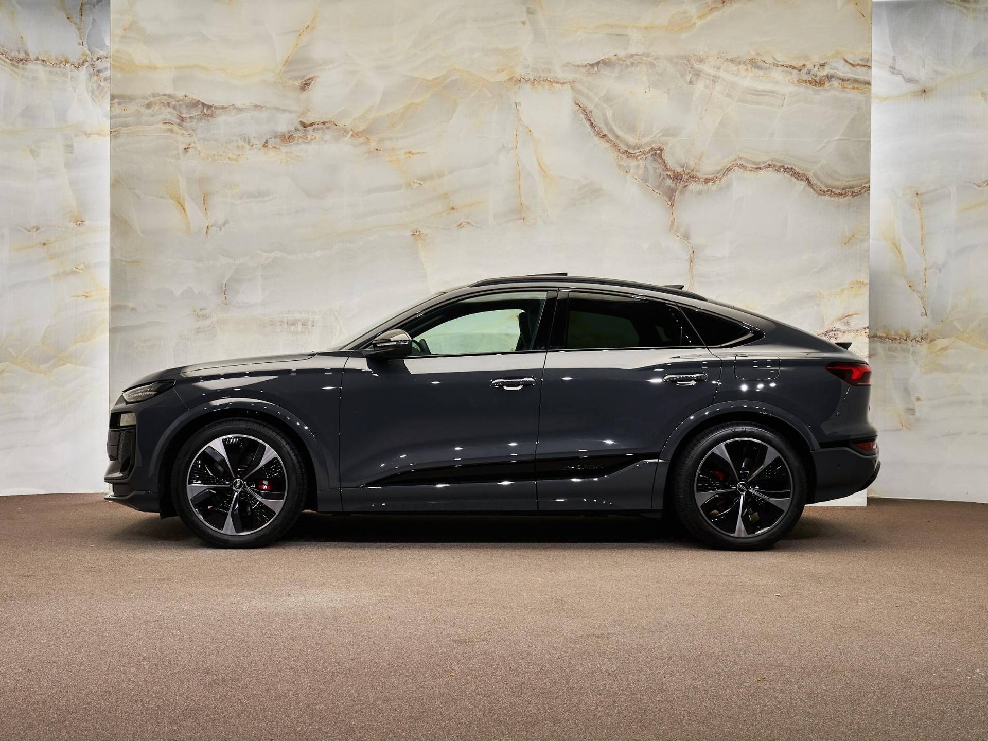 De Audi SQ6 Sportback e-tron onderscheidt zich door zijn krachtige Sportback-design en S-specifieke accenten. De 21 inch Audi Sport lichtmetalen velgen, Privacy glas, zwarte dakreling en panoramadak zorgen voor een dynamische en luxe uitstraling. De Matrix LED-koplampen en OLED LED-achterlichten met animatie garanderen optimale zichtbaarheid en een herkenbare lichtsignatuur.