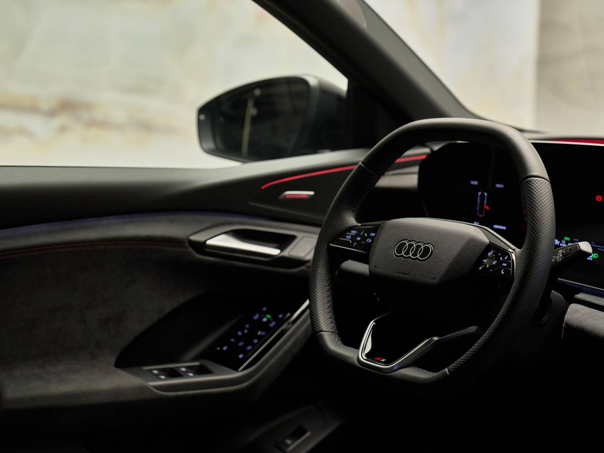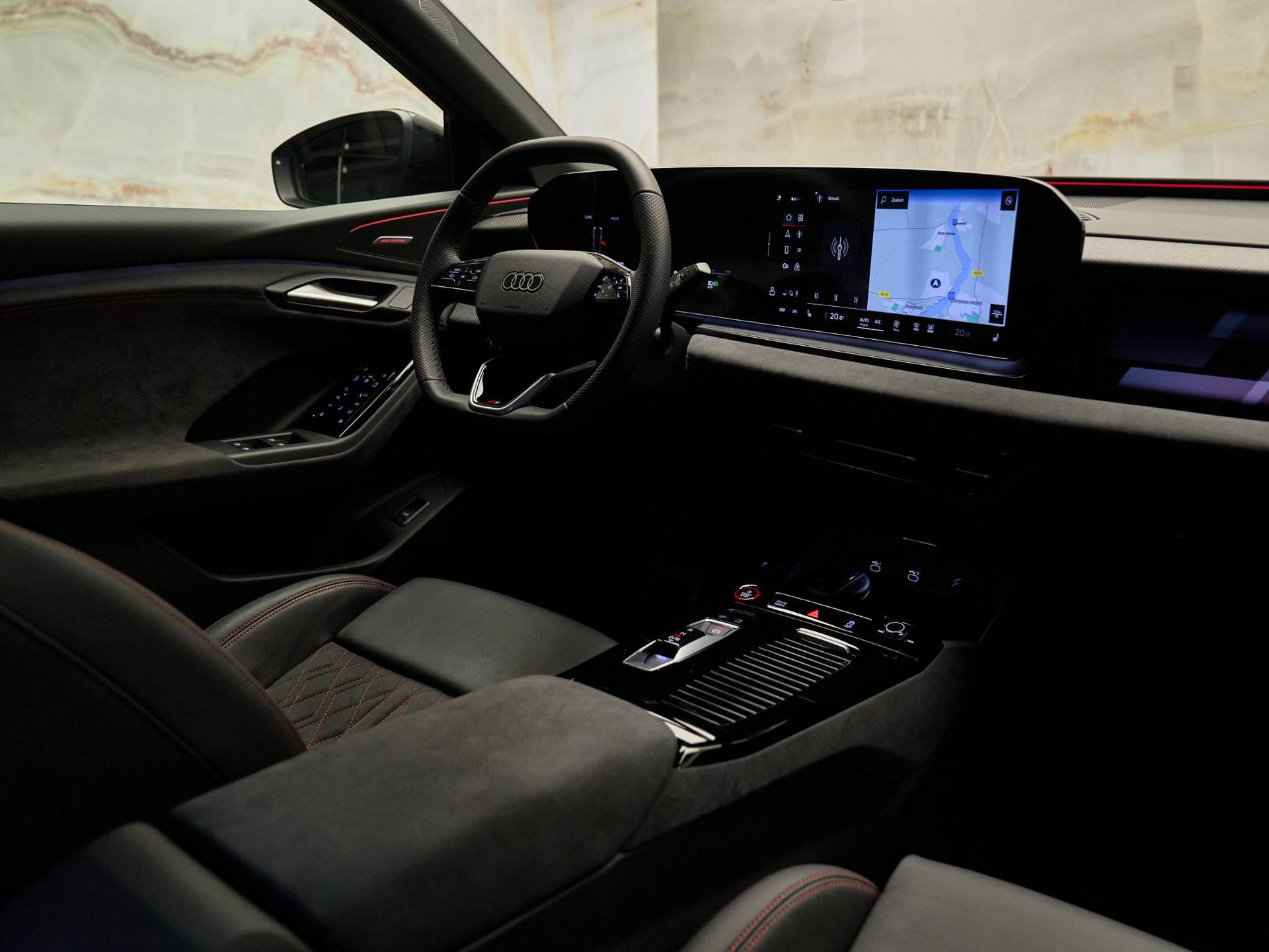 YYB: Interieur S met sportstoelen plus, Dinamica/leder zwart met rode stiksels