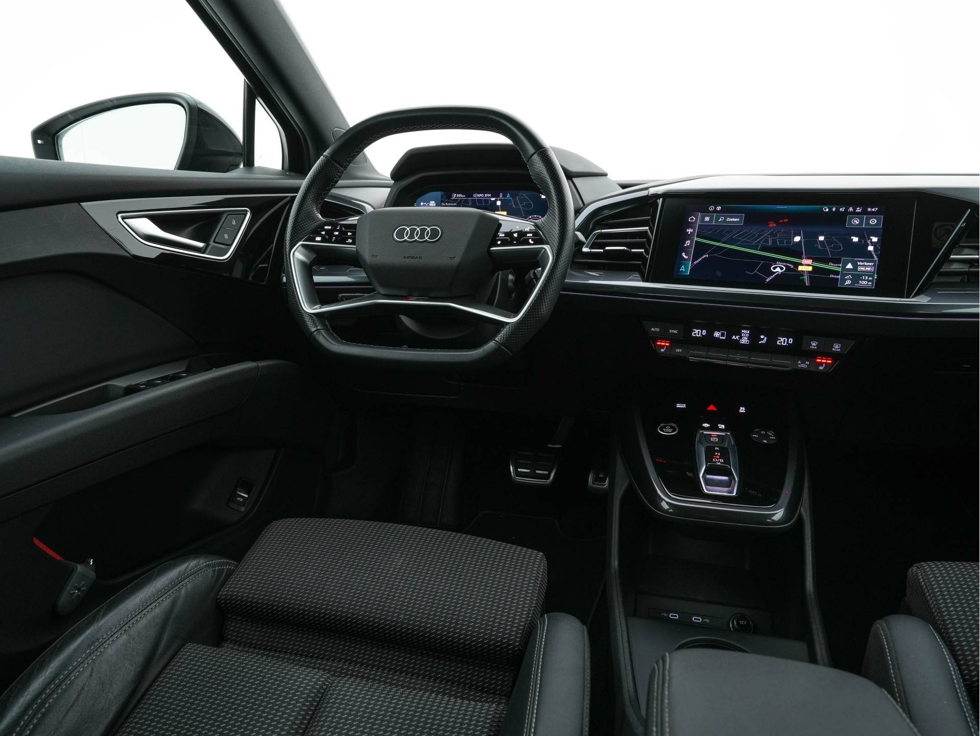 Sportback 40 S-Line Edition 77 kWh [ 3-Fase ] {SOH-92%} (INCL-BTW) *HEAT-PUMP | LEATHER-FABRIC | MATRIX-LED | ADAPTIVE-CRUISE | AMBIENT-LIGHT | DIGI-COCKPIT | AUDI-SOUND | DAB+ | KEYLESS | SHIFT-PADDLES | CAMERA | HEATED-SPORTSEATS | 20''ALU*