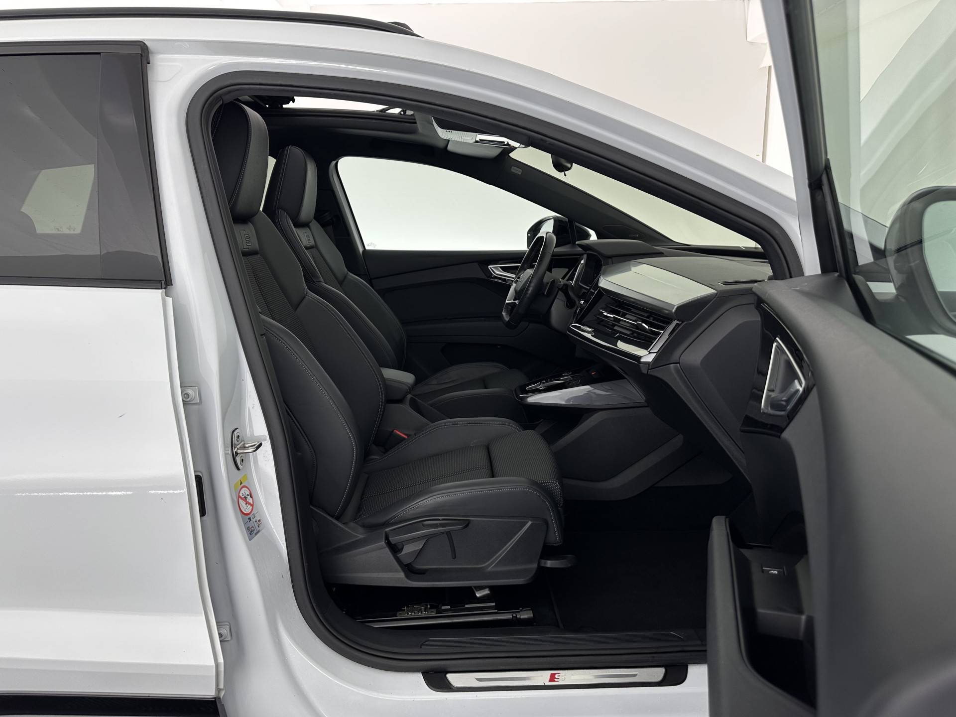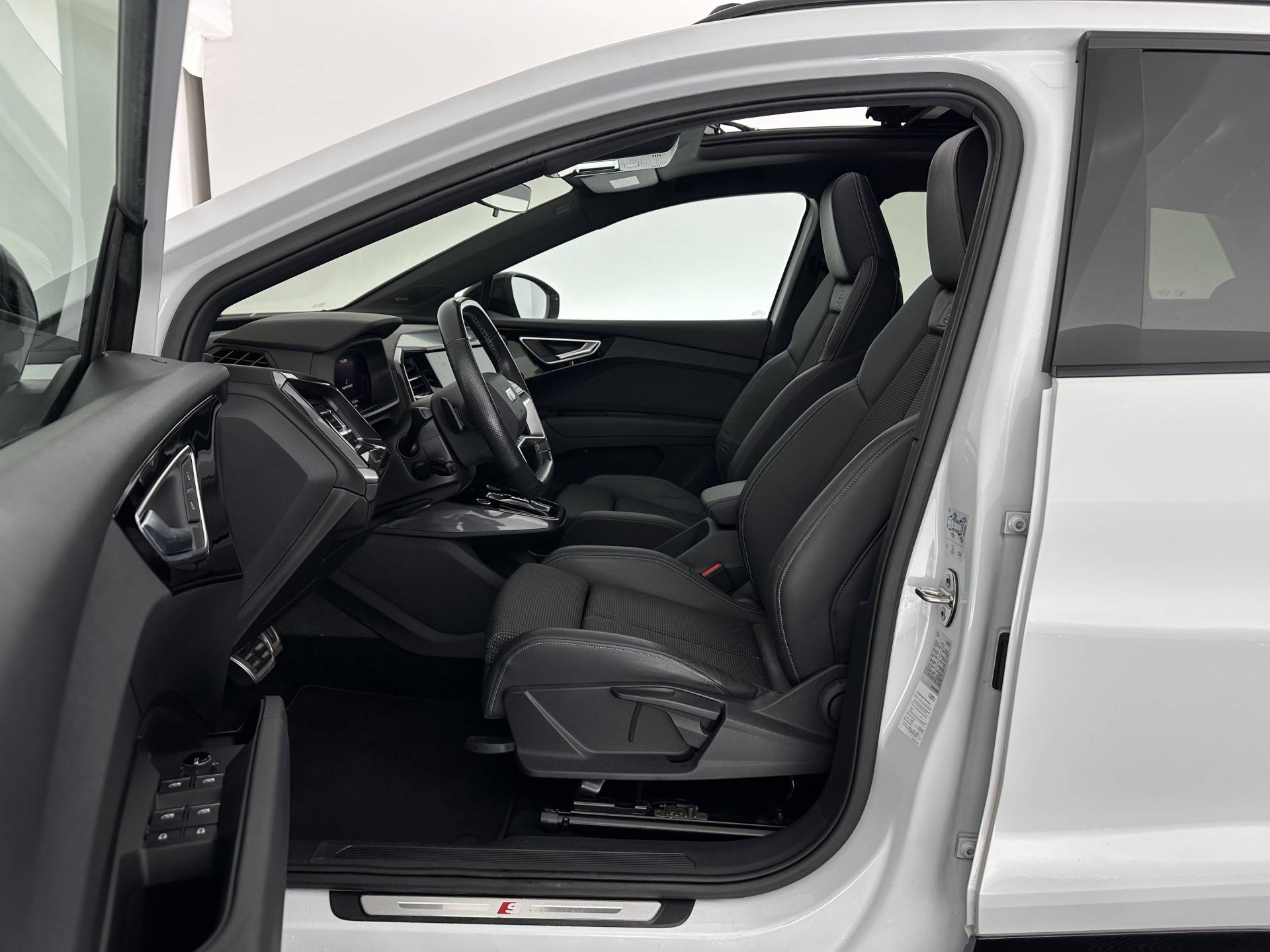 ⭐ Audi Q4 e-tron 40 S-Competition Launch Edition 77 kWh [3-Fase-11kW] {SOH-90%} in Glacier White Pearl Tricoat met Stof & Lederen Puls-combinatie interieur met S-logo | Elektrisch, Luxe & Sportief