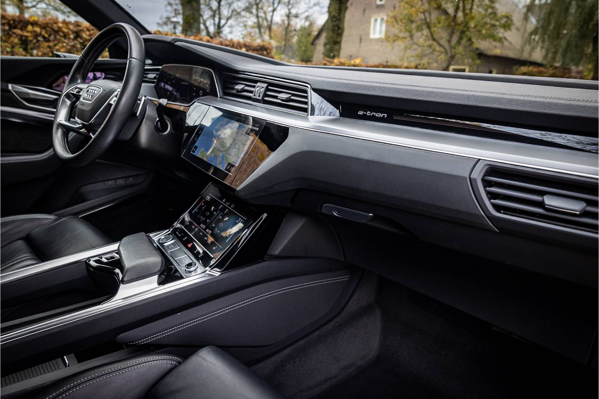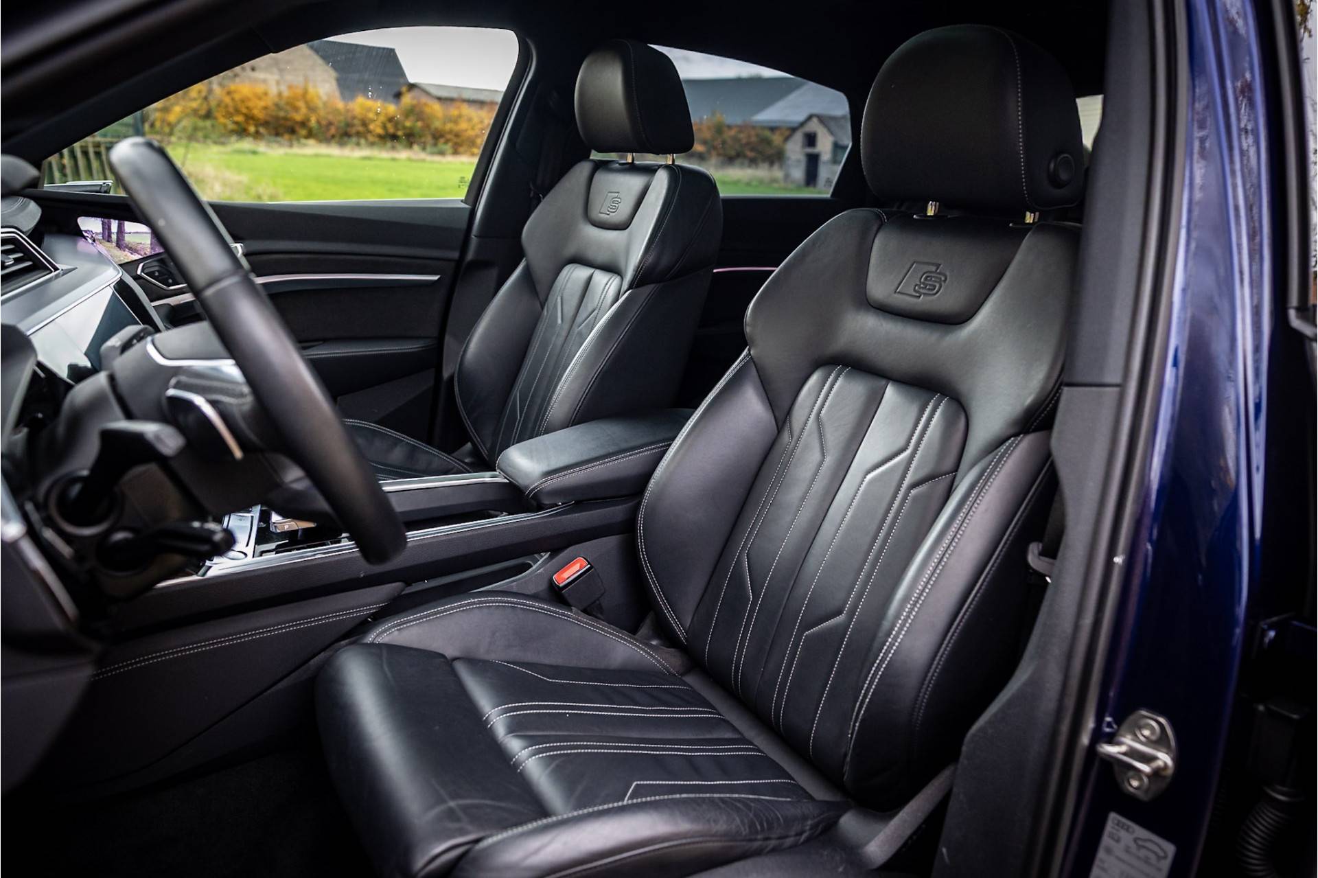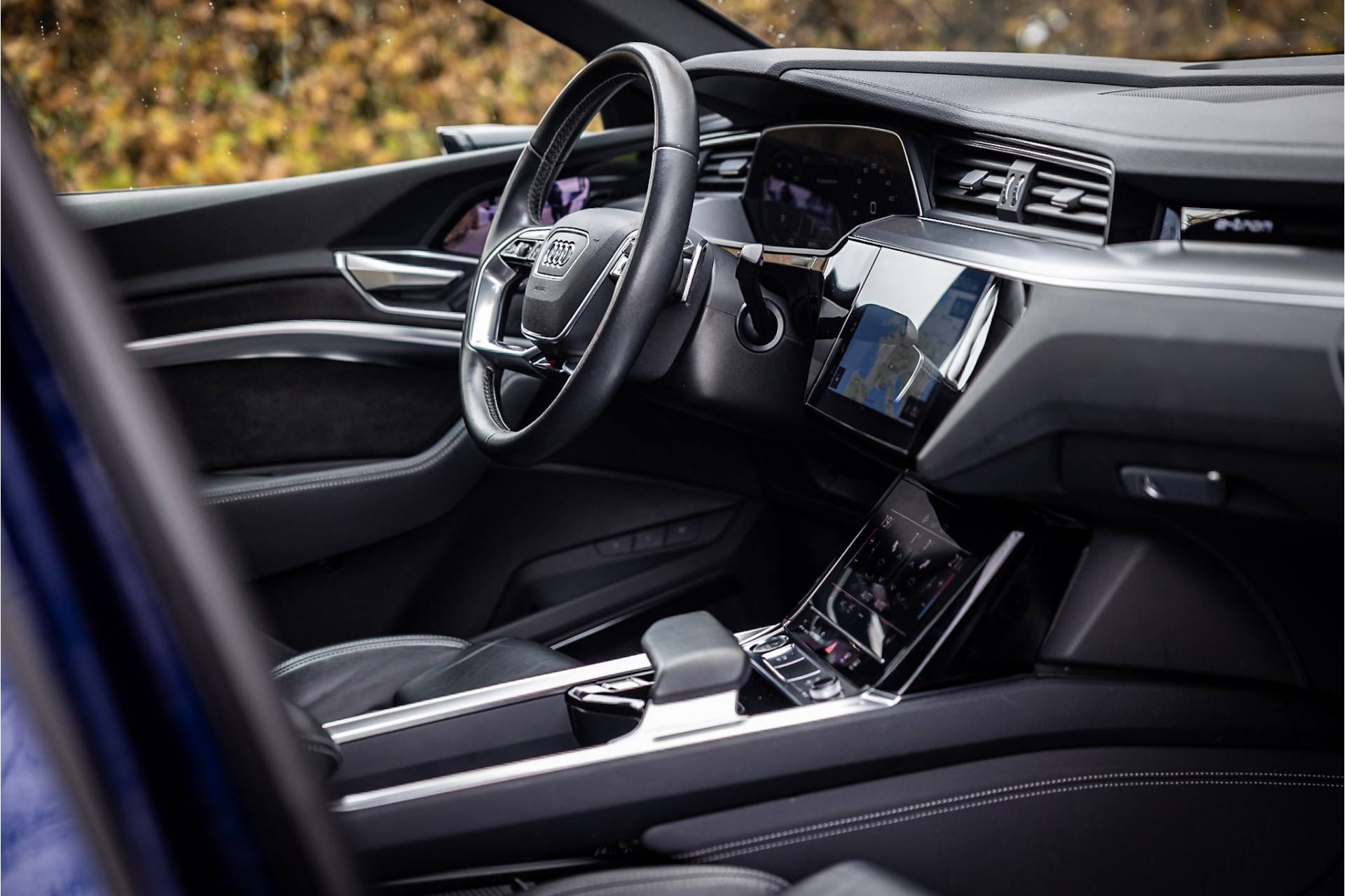 Fraaie en compleet uitgevoerde Audi E-Tron Sportback Quattro S Edition. Deze auto is in keurige staat. Lakkleur is Navarrablauw Metallic en het interieur is voorzien van sportstoelen bekleed met zwart Valcona leder. De hemelbekleding is uitgevoerd in donker antraciet. Het dashboard en de middenconsole zijn voorzien van een lederovertrek.