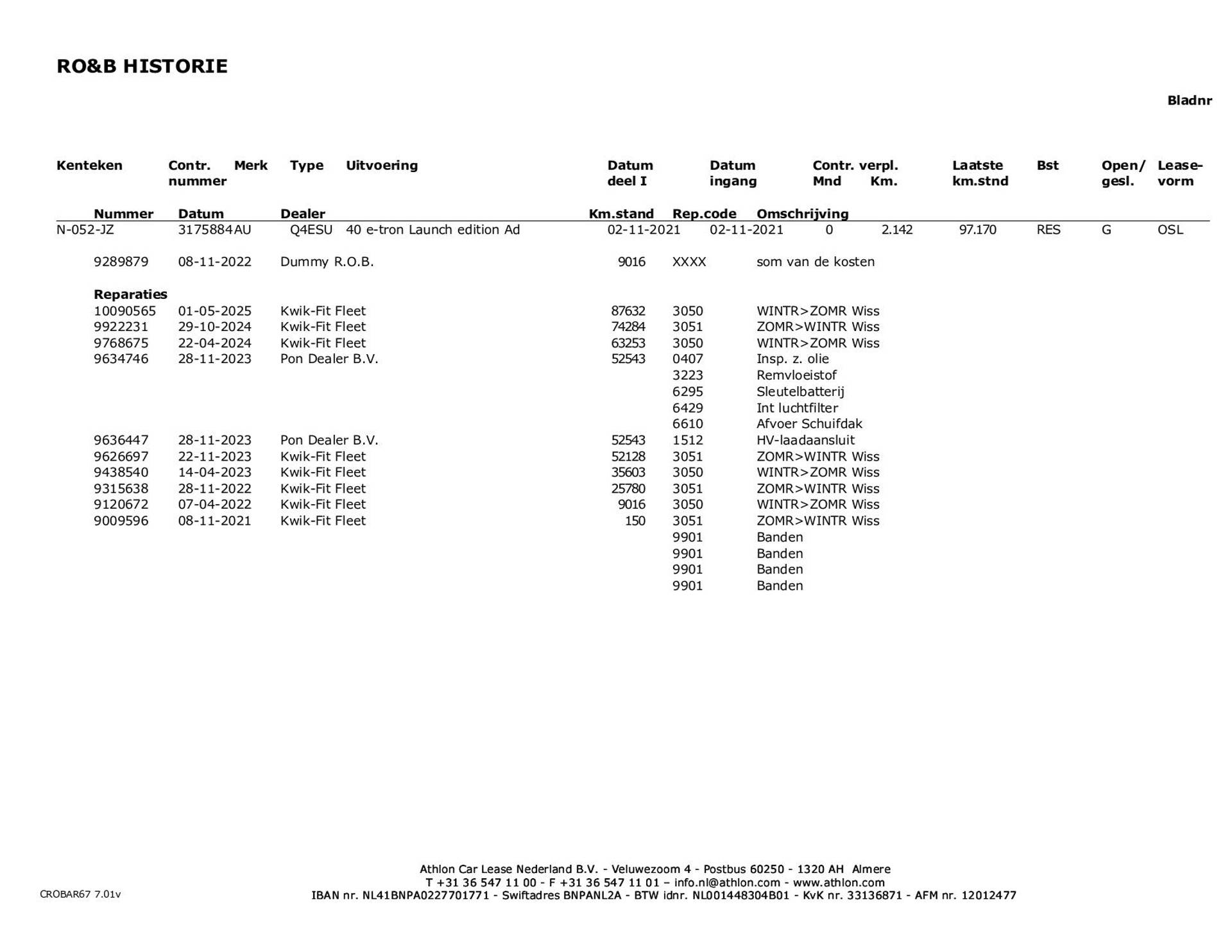 Garantiewerkzaamheden dienen door Vakgarage Heije te worden uitgevoerd.