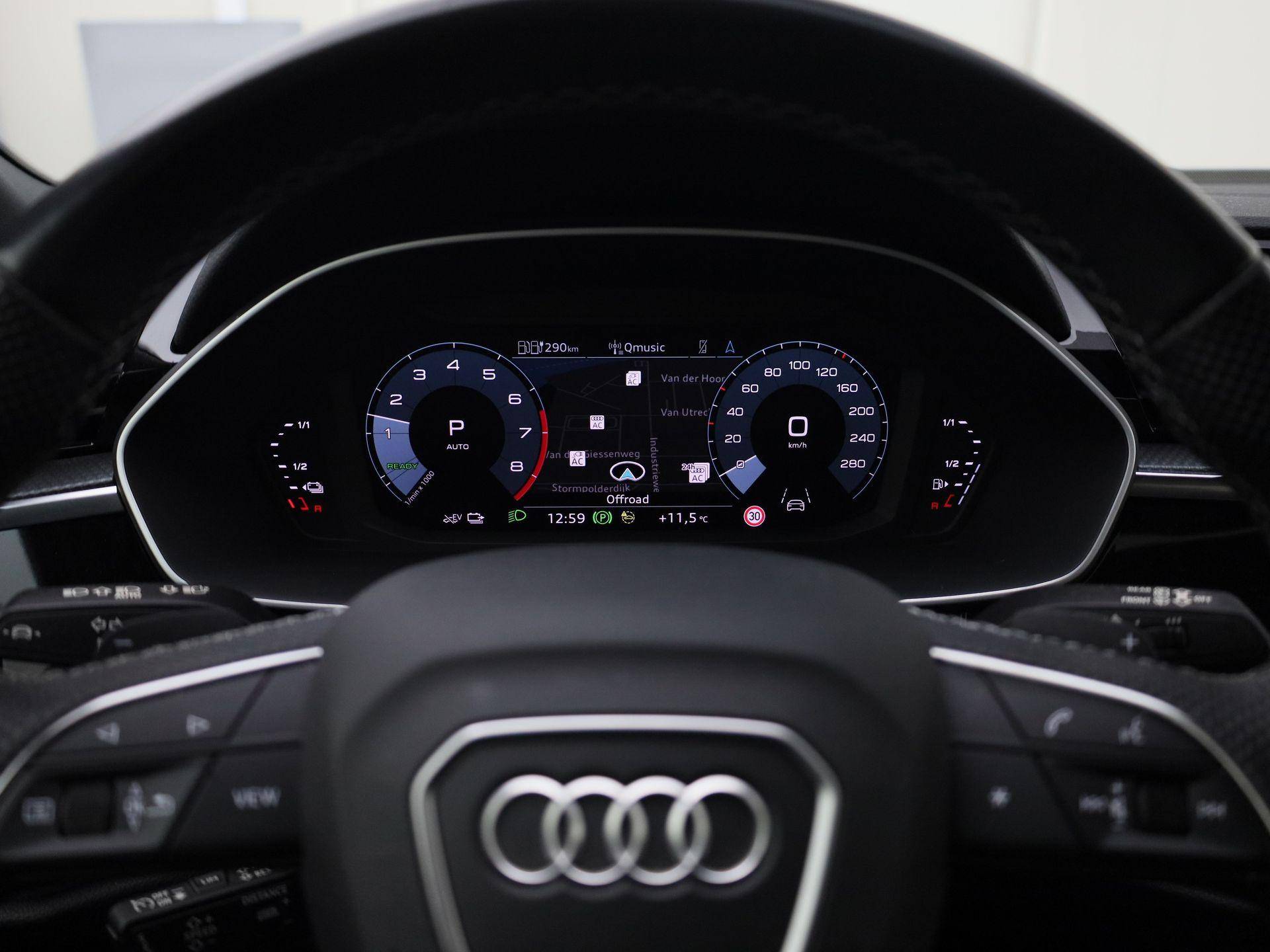 Stel de interface voor uw cockpit naar wens in met het digitale dashboard van deze auto. De achteruitrijcamera vergemakkelijkt achteruit inparkeren. U ziet duidelijk wat er achter de auto gebeurt. Adaptive cruise control is veilig en comfortabel. De snelheidsregelaar houdt automatisch afstand tot het voertuig dat voor u rijdt. Mocht zich een probleem voordoen, dan krijgt u via remote services op uw smartphone te zien wat er precies aan de hand is, waar u ook bent. U kunt het audio-installatiesysteem met DAB-ontvangst en het navigatiesysteem met harde schijf bedienen met de knoppen op het stuur. Met electronic climate control, sportstuur met schakelpaddels, regensensor, keyless entry, automatisch dimmende binnenspiegel en centrale deurvergrendeling met afstandsbediening is deze Audi helemaal compleet.