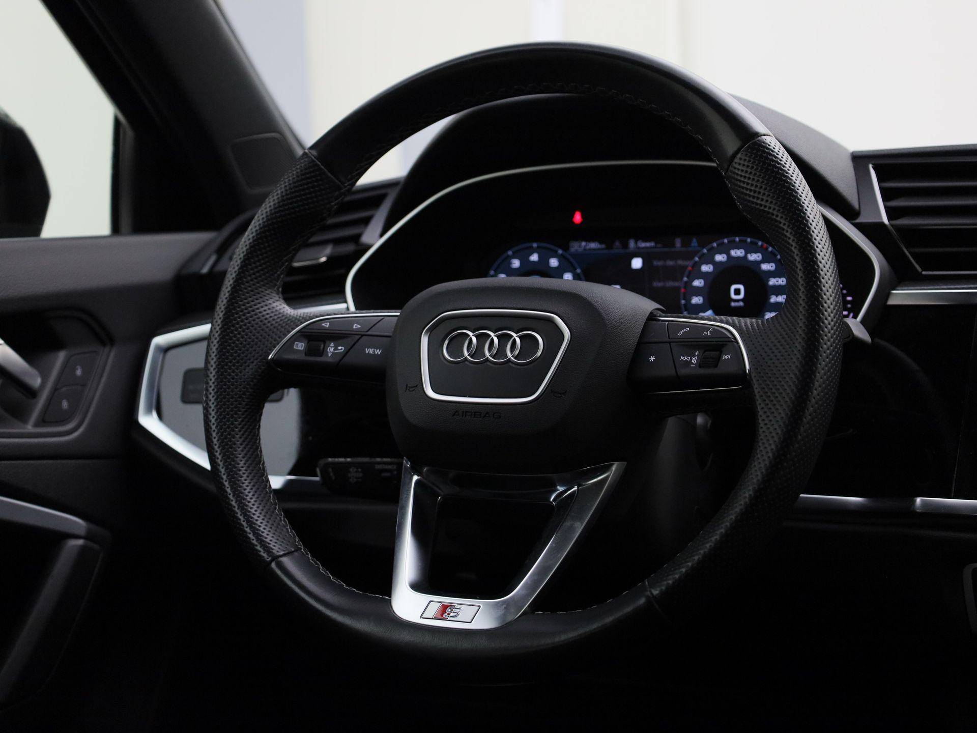 Ze zeggen dat Duitsers weinig humor hebben. Toch geeft deze Audi Q3 Sportback u absoluut een brede lach op uw gezicht. Kan ook niet anders. Topkwaliteit, vooruitstrevende techniek, formidabele rijsprestaties worden hier gebundeld in één auto. De S-Line styling voegt een aantal uitgesproken sportieve accenten toe. Met de huidige benzineprijzen is deze hybride motor van deze auto misschien wel de allerbeste oplossing. Zuiniger, schoner en toch van alle markten thuis. Dat noemen ze nou een ruimtelijk effect: het elektrisch bediende glazen panorama dak, dat net zo gemakkelijk open en dicht gaat als de elektrisch bedienbare achterklep. En ondertussen het ware luxegevoel van het lederen interieur. De verwarmbare voorstoelen benadrukken nog maar eens dat we hier te maken hebben met een regelrechte verwenauto voor bestuurder en bijrijder. Pittig rijden wordt nog comfortabeler dankzij de fraaie sportstoelen. In deze auto profiteert u onder andere ook van: 19 inch lichtmetalen velgen, Full LED koplampen, adaptief dempingsysteem, warmtewerend glas, in delen neerklapbare achterbank en LED-achterlichten.