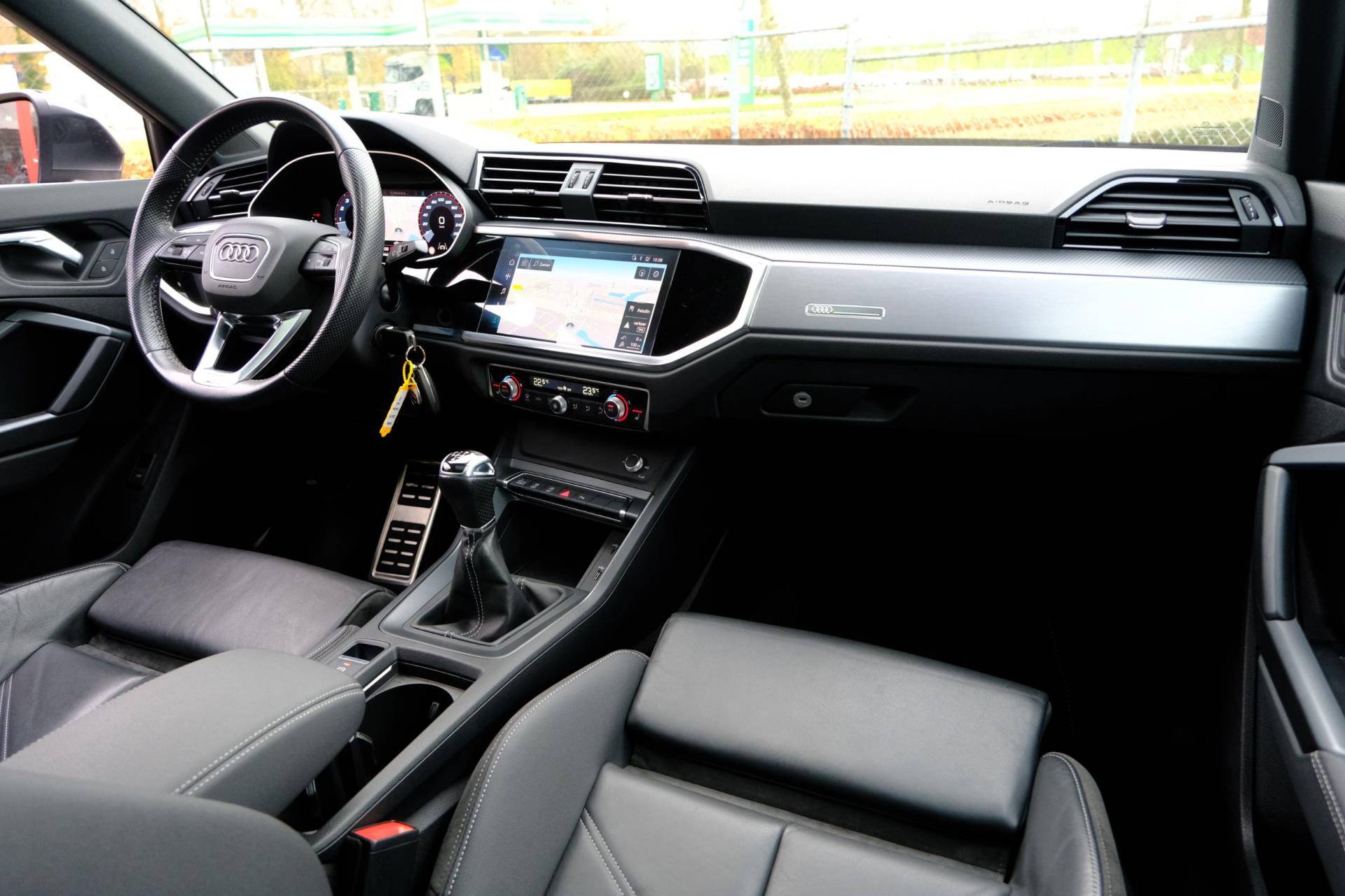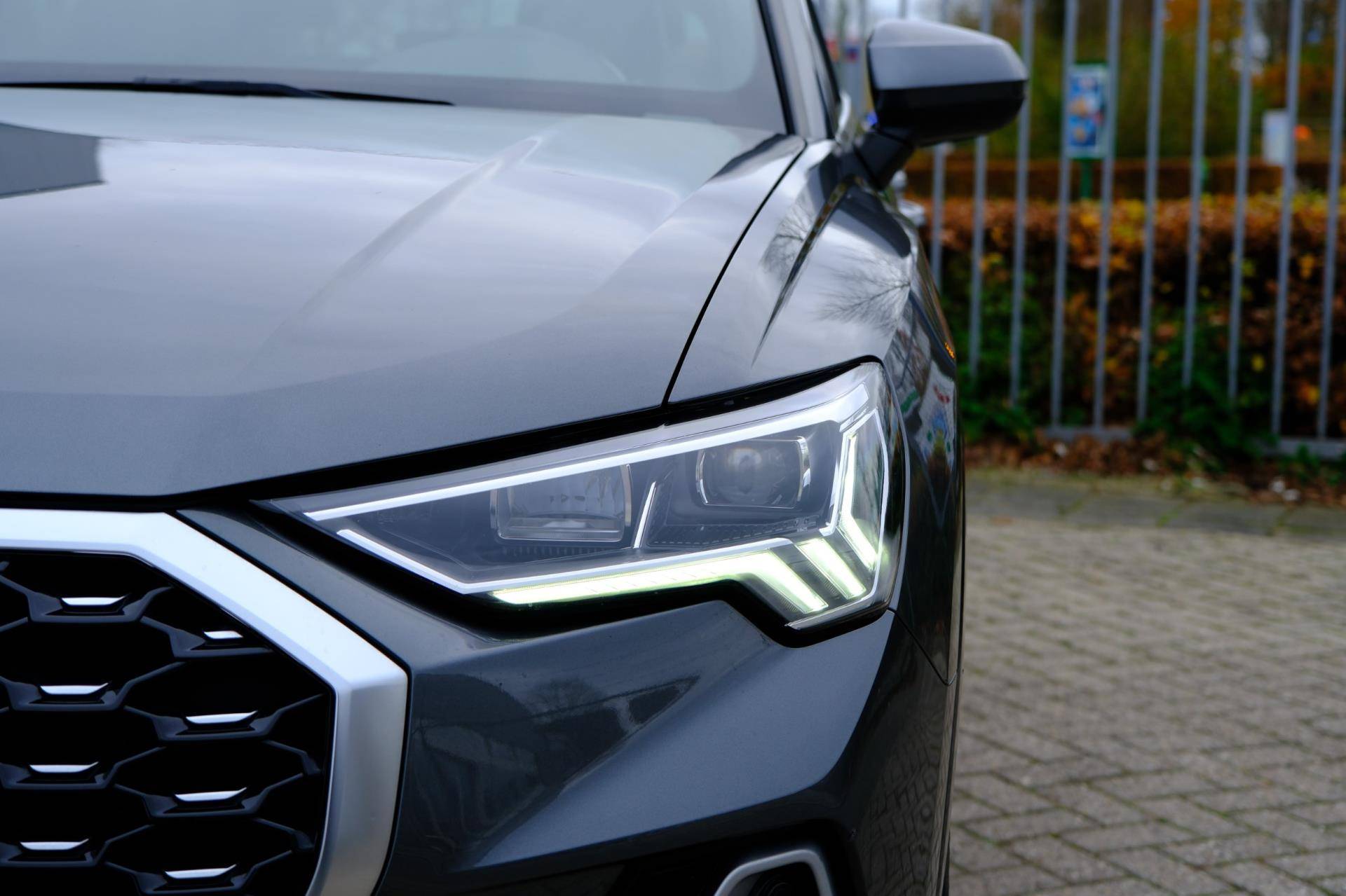 Laat u niets wijsmaken, deze Audi Q3 Sportback biedt alles wat u van een auto verlangt. S-Line styling geeft deze auto een extra dynamische uitstraling. De aandrijving van deze Audi wordt verzorgd door een viercilinder motor en een handgeschakelde zesversnellingsbak. De lederen bekleding geeft het interieur een hoogwaardige uitstraling. Een weldaad voor u en uw bijrijder: deze Audi Q3 Sportback heeft verwarmbare voorstoelen. Altijd een goede zitpositie bij iedere snelheid, dankzij de sportstoelen. Van binnen lijkt het allemaal uitermate ruim dankzij de vrije inval van daglicht via het elektrisch bediende glazen panoramadak. De achterklep opent automatisch met een druk op de knop. Handig als u met volle handen staat. Dankzij de matrix LED-verlichting geven de koplampen ook in het donker daglicht. Ook halflederen bekleding, warmtewerend glas, in delen neerklapbare achterbank, LED-achterlichten, lendensteun en variabele stuurbekrachtiging zijn aan boord.