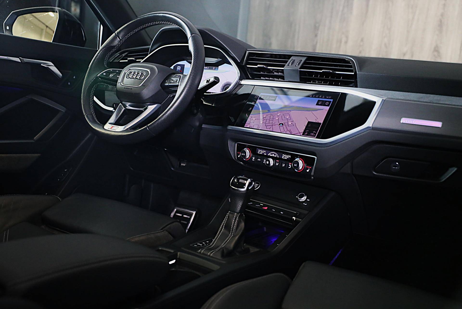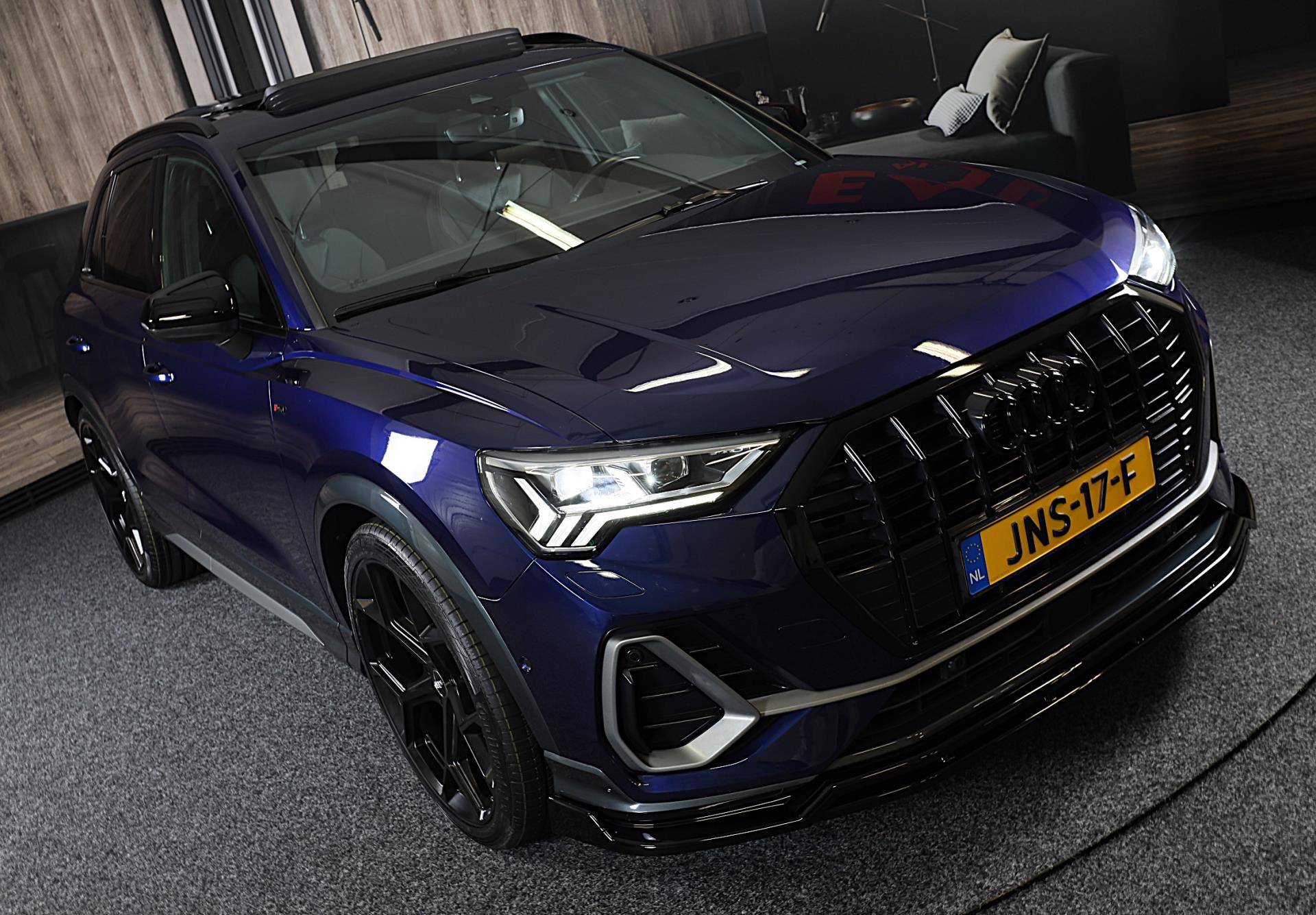 De Audi Q3 combineert comfort met een uitstekende wegligging en dynamische rijkwaliteiten. Als u het over uitstraling hebt, dan kunt u niet om het effect van de S line exterieur styling heen. De aandrijving van deze Audi wordt verzorgd door een viercilinder motor en een automatische transmissie. Het lederen interieur ademt luxe, en het zit uiteraard fantastisch. U past de stoelen moeiteloos aan, ze zijn elektrisch in te stellen en hebben bovendien een geheugen. Dat noemen ze nou een ruimtelijk effect: het elektrisch bediende glazen panoramadak. De elektrische achterklep opent met een druk op de knop, zodat u gemakkelijk toegang heeft tot de bagageruimte. De verlichting van de koplampen geeft het gevoel dat het altijd dag is. De slimme matrix LED-technologie past zich aan bij tegenliggers, zonder verlies van lichtkwaliteit. De uitmonstering van deze auto wordt gecompleteerd door onder meer open dak, 18 inch lichtmetalen velgen, halflederen bekleding, warmtewerend glas, zwarte hemelbekleding en in delen neerklapbare achterbank.