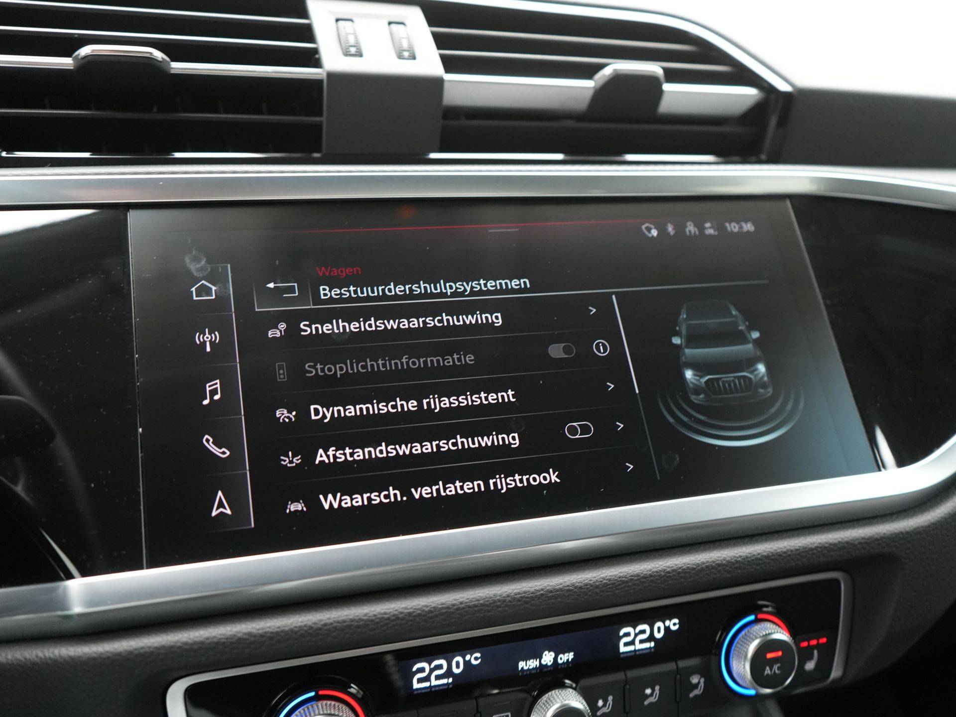 De nieuwste veiligheidssystemen komen in deze Audi Q3 samen. Het Lane-keeping systeem doet precies wat nodig is: waarschuwen en corrigeren bij onbedoelde overschrijding van de rijstrooklijnen. Onbedoeld bumperkleven is er niet bij, dankzij de forward collision warning. Die waarschuwt direct als een botsrisico met uw voorligger dreigt. Dankzij veiligheidsvoorzieningen als dodehoekdetectie, hill hold functie, autonoom remsysteem en bandenspanningcontrolesysteem, bent u steeds veilig onderweg.