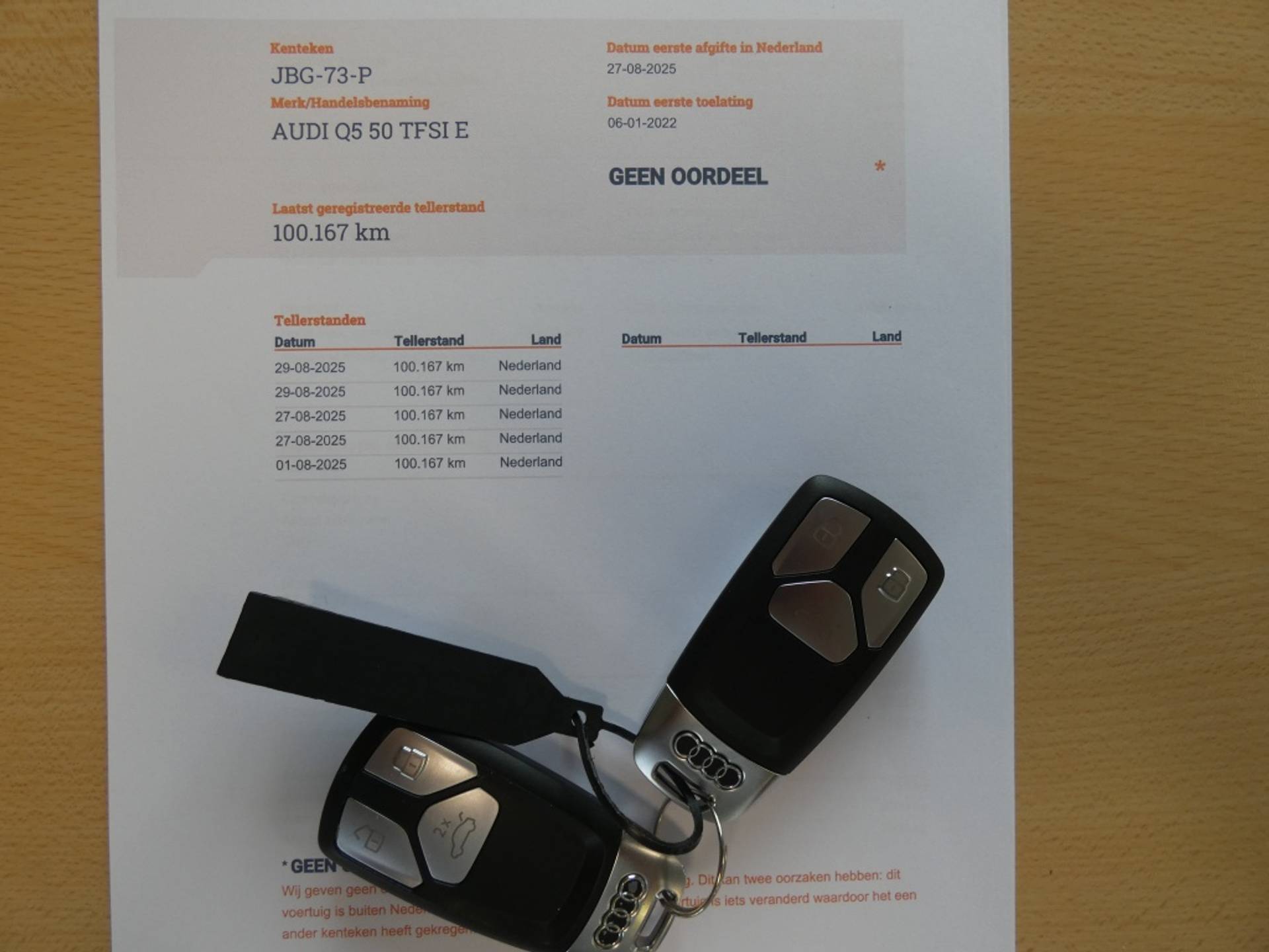 ✓ APK bij aflevering: N
