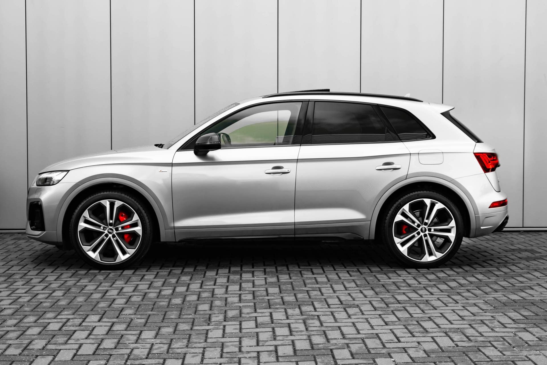 De vooruitstrevende hybride aandrijflijn van deze auto geeft vandaag al antwoord op de belangrijke vragen van morgen. Met de S-Line styling trekt u op een positieve manier de aandacht. We weten het: benzinerijden is een dure grap. Elektrisch heeft de toekomst. Met de hybride motor van deze Audi Q5 heeft u de keuze: elektrisch als het kan, benzine als het moet. Boven uw hoofd schuiven de wolken zichtbaar voorbij door het elektrisch bediende glazen panorama dak. En kijk eens aan de achterzijde wat gemakkelijk: een eveneens elektrisch bedienbare achterklep! De verwarmbare voorstoelen zijn een weldaad voor rug en schouders. In deze sportstoelen voel je je één met je auto. Comfort en veiligheid hebben een upgrade gekregen in de vorm van luchtvering. Koplampen voorzien van de allernieuwste lichttechniek, matrix LED-verlichting. Bij de rijke uitrusting horen ook 20 inch lichtmetalen velgen, halflederen bekleding, warmtewerend glas, in delen neerklapbare achterbank, LED-achterlichten en verstelbare lendensteunen. Met het digitale dashboard in deze auto kunt u de interface van uw cockpit personaliseren. Nekkramp en verdraaide schouders zijn verleden tijd. Door de achteruitrijcamera is iedere meter achter de auto glashelder in beeld. Adaptive cruise control is een comfortabele en veilige optie. Het systeem reguleert de snelheid en houdt automatisch afstand tot uw voorligger. Loopt het verkeer onderweg vast, schakel dan de file assistent in en laat het systeem zorgen voor de juiste afstand bij stilstaan en rijden. Dankzij Connected Services weet u precies waar uw auto geparkeerd staat. Ook andere functies, zoals bandenspanning en brandstofniveau, zijn via de app altijd onder handbereik. En dan is deze auto ook nog eens voorzien van premium audiosysteem, full map navigatiesysteem, automatische airconditioning, sportstuur met schakelpaddels, draadloos opladen en DAB ontvangst. Geavanceerde technische systemen houden tijdens elke rit het verkeer in de gaten en reageren op potentieel gevaarlijke situaties. Een belangrijke bijdrage aan de veiligheid onderweg levert de verkeersbord-detectie in deze Audi. Met het Lane-keeping systeem komt u nooit per ongeluk buiten de rijstrook. Forward collision warning waarschuwt bij een dreigende aanrijding met een voorligger. Met voorzieningen als hill hold functie, brake assist en bandenspanningcontrolesysteem, bent u altijd veilig onderweg. Hebben we u nieuwsgierig gemaakt? Bel of mail ons nu voor een proefrit.
