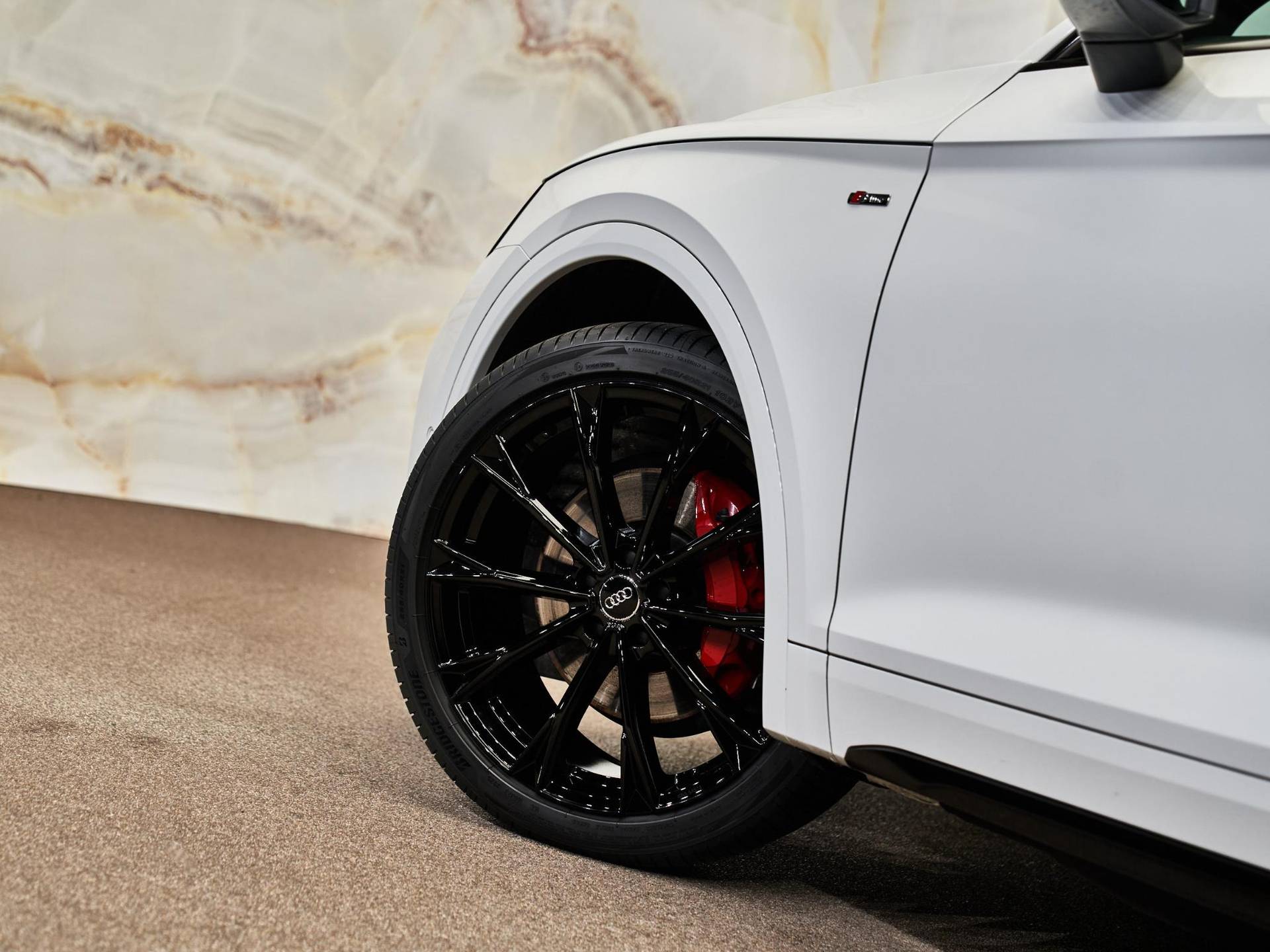 Aan de buitenzijde valt deze Audi Q5 op door zijn krachtige uitstraling met Matrix-ledkoplampen, dynamische ledachterlichten, privacy glas, zwarte dakreling en 20 inch Audi Sport lichtmetalen velgen. De rood gespoten remzadels en S line-details onderstrepen het sportieve karakter. De elektrisch bedienbare achterklep en Comfort key verhogen het dagelijkse gebruiksgemak.
