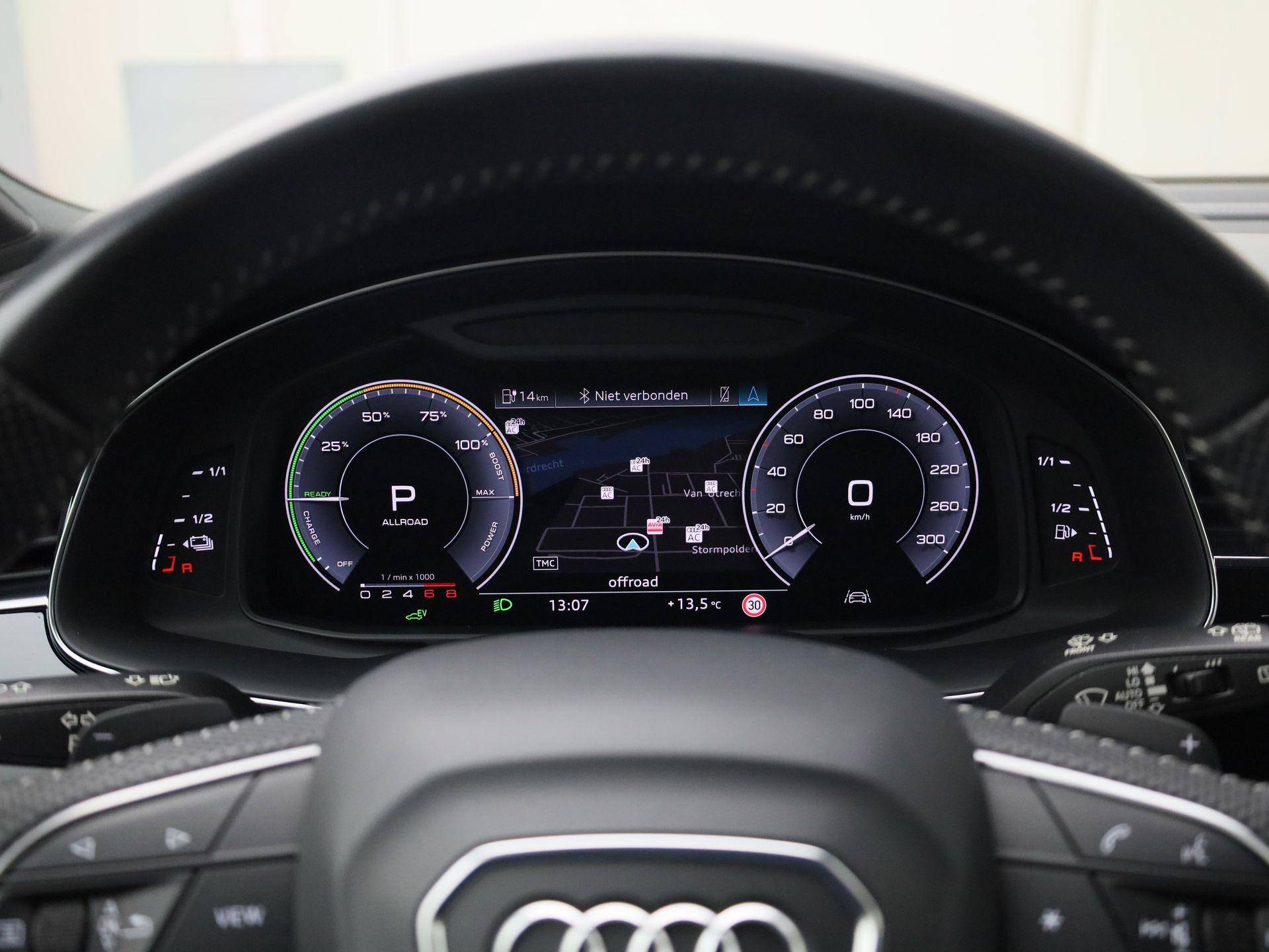 U wordt geïntroduceerd tot de digitale wereld van mobiliteit waarop alles wat u wenst wordt geprojecteerd op het digitale dashboard. Met de achteruitrijcamera ziet u precies wat er achter de auto gebeurt. Met adaptive cruise control houdt de auto zelfstandig afstand tot uw voorligger. Een veiligheidsverhogende optie waarmee u comfortabel onderweg bent. Rijden-stilstaan, rijden-stilstaan. Niks is irritanter en vermoeiender dan filerijden. Daar heeft deze Audi Q7 een oplossing voor: de file assistent, die met radarmeting permanent het tempo aanpast op de voorligger. Zelfs als die stopt. Een smartphone met internetverbinding legt eenvoudig overal contact met de auto. U kunt functies activeren en de conditie van de auto monitoren. Met premium audiosysteem, full map navigatiesysteem, kruisend verkeer detectie, electronic climate control, sportstuur met schakelpaddels en draadloos opladen is deze auto helemaal compleet.