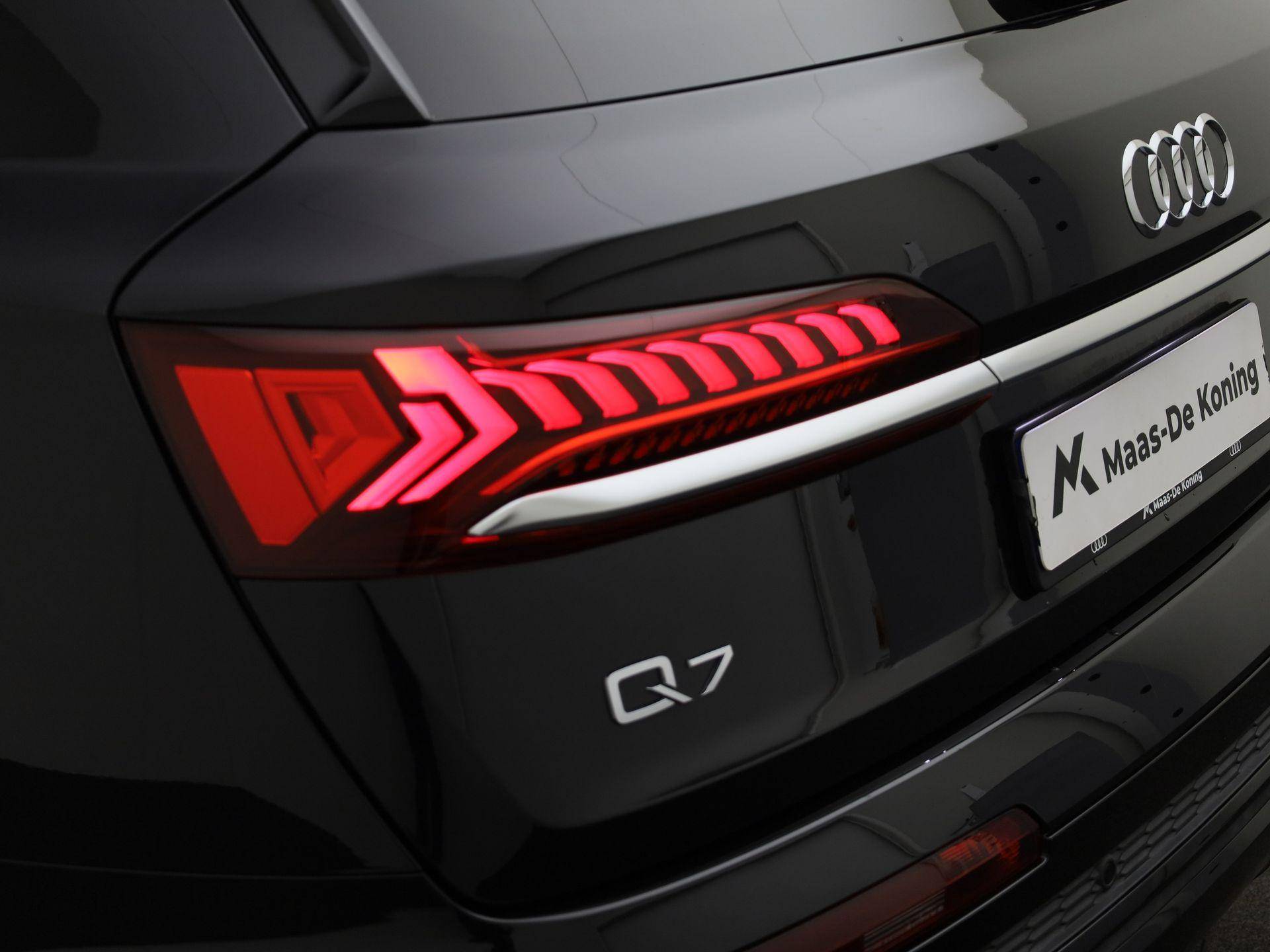 Uw nieuwe auto staat klaar voor vertrek. Stap gerust in, deze Audi Q7 heeft 45008 kilometer gelopen. S-Line styling geeft deze auto een extra dynamische uitstraling. Deze Audi Q7 heeft een hybride motor, dus een combi van brandstof en elektrisch. Een slim en milieuvriendelijk systeem dat ook nog eens lekker kostenbesparend is. Een zeer aantrekkelijke extra van deze Audi Q7 is de luchtvering, die zorgt voor een fantastische wegligging. Met zijn lederen bekleding is deze Audi comfortabel en stijlvol. Beide verwarmbare voorstoelen hebben een geavanceerde massagefunctie, zodat u ook na een lange rit soepel uitstapt. Net als uw bijrijder. Ziet er goed uit, die sportstoelen. Maar waar het om gaat, is de solide zit onder alle omstandigheden. Houdt u van frisse lucht en van licht dan zit u helemaal goed met het elektrisch bediende panoramadak. De achterklep opent automatisch met een druk op de knop. Handig als u met volle handen staat. Tot de uitrusting van deze Audi behoren ook 21 inch lichtmetalen velgen, LED-koplampen, warmtewerend glas, trailer assistent, dakspoiler en LED-achterlichten.