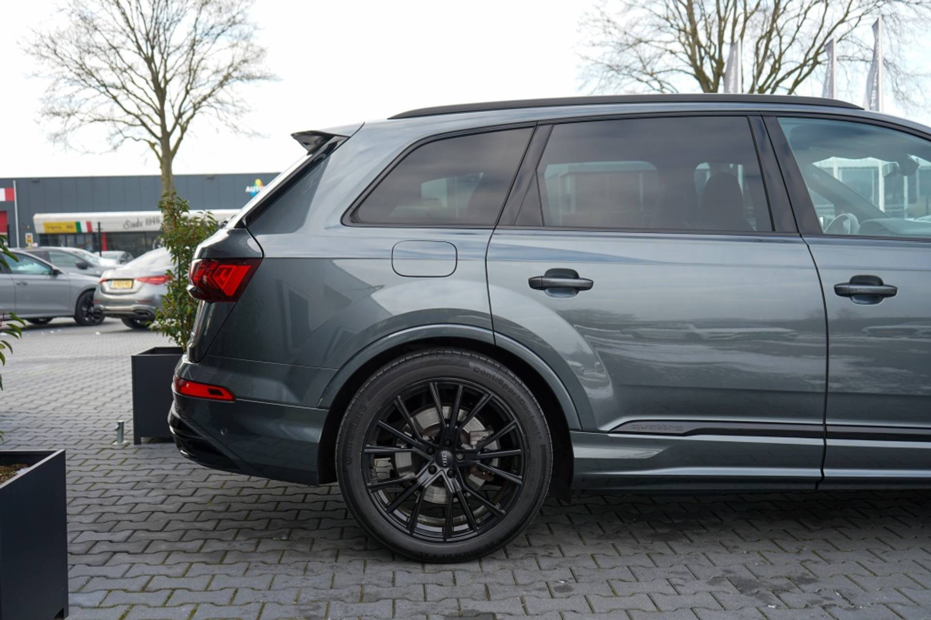 Bent u op zoek naar een stijlvolle en krachtige hybride SUV van hoogwaardige kwaliteit? Dan is de Audi Q7 55 TFSI e q Pro L S uit 2021 wellicht de perfecte match voor u. Met zijn grijze kleur en strakke metallic lak is deze Audi een lust voor het oog.