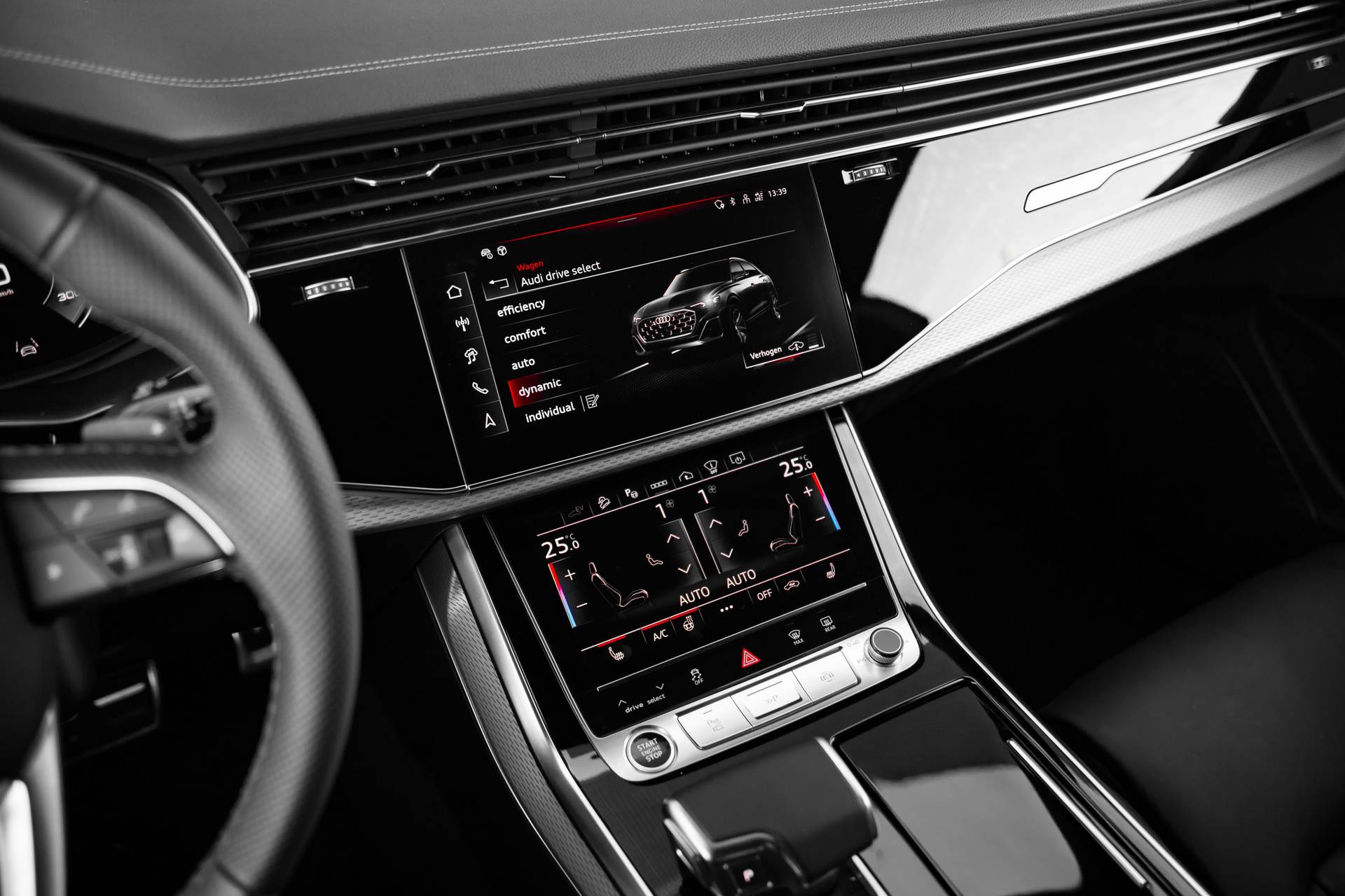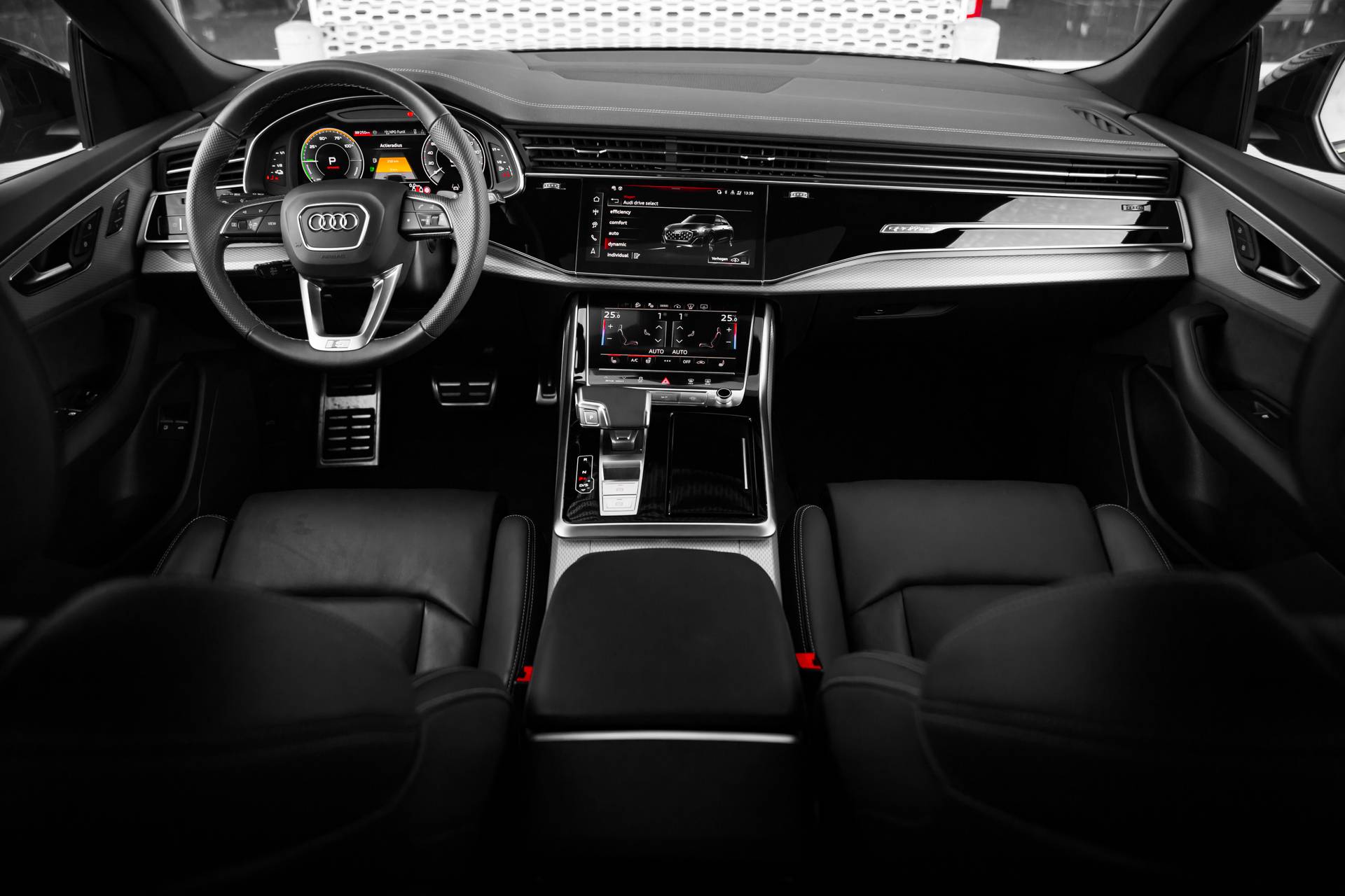 Onverminderd in de hoogste regionen van favoriete auto's: de Duitse merken. Want hoeveel keus er ook is, ze hebben allemaal die ijzersterke kwaliteit. Goed voor het milieu, goed voor de portemonnee: hybride rijden biedt het beste van beide! Een eyecatcher is het lederen interieur. Maar onderschat ook het voordeel van een aantal 'kleine' details niet, zoals het elektrisch bediende glazen panorama dak en de elektrisch bedienbare achterklep. U zult absoluut de luxe waarderen van de stoelverwarming, verwarmbare achterbank, en het verwarmbare stuur dat inbegrepen is in dit voertuig. De geavanceerde matrix LED-verlichting in de koplampen levert maximaal helder zicht en past zich subtiel aan zodra er een tegenligger komt. Zonder lichtkwaliteitsverlies! U wordt in deze auto ook getrakteerd op 21 inch lichtmetalen velgen, sportonderstel, warmtewerend glas, trailer assistent, dakspoiler en LED-achterlichten. Het digitale dashboard is qua lay-out en zichtbaarheid superslim ingedeeld. Alle functies in één keer in beeld! Dankzij de 360 graden camera kunt u zowel de voor- als achterzijde van het voertuig in het oog houden, wat bijdraagt aan een veiligere rijervaring. Met adaptive cruise control houdt deze auto automatisch afstand tot uw voorligger. Kop aan kont langzaam rijden: dan is afstand houden soms lastig. De file assistent helpt en zorgt automatisch voor veilige ruimte tot de voorligger. Ook als die tot stilstand komt. Connected Services voegt nog meer comfort en veiligheid toe aan deze auto. De uitrusting van deze Audi is met full map navigatiesysteem, achteropkomend verkeer waarschuwing, kruisend verkeer detectie, electronic climate control, draadloos opladen en DAB ontvangst behoorlijk compleet. De automatische veiligheidssystemen in deze Audi fungeren als een extra paar ogen. En dat niet alleen, ze kunnen ook actief ingrijpen, om zo u en uw passagiers te beschermen. Rijden met het overzicht van een straaljagerpiloot? De praktische en veilige head-up display projecteert dashboardinfo binnen uw gezichtsveld, zodat u uw blik nooit hoeft te verplaatsen. Oog op de weg! Een belangrijke bijdrage aan de veiligheid onderweg levert de verkeersbord-detectie in deze Audi. Mooi binnen de lijnen van de rijstrook blijven? Het Lane-keeping systeem helpt altijd een handje. Verder is deze auto uitgerust met dodehoekdetectie, forward collision warning system, hill hold functie en frontale botsbescherming. Als dit de auto is die u zoekt, wacht dan niet langer en plan direct online een proefrit.