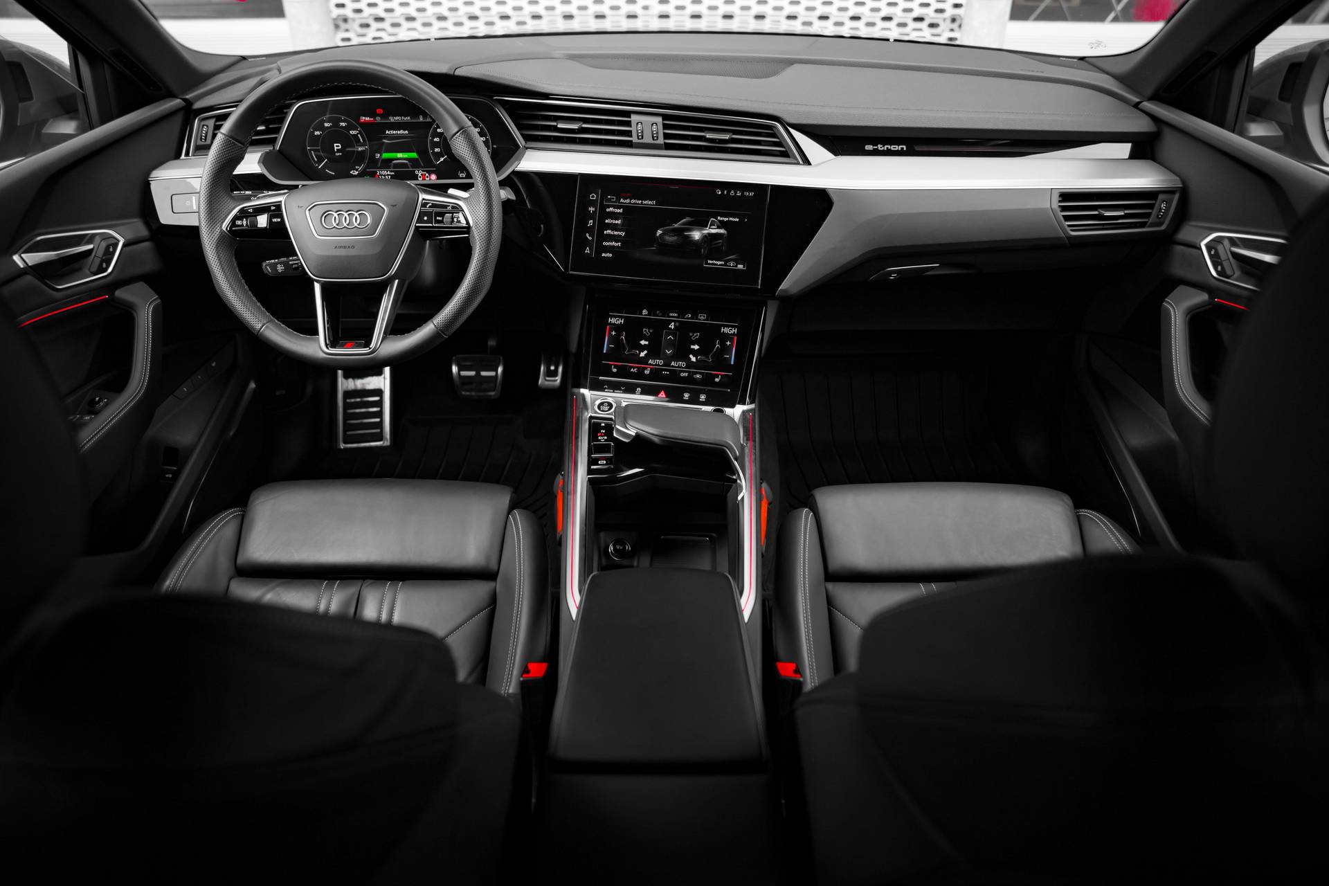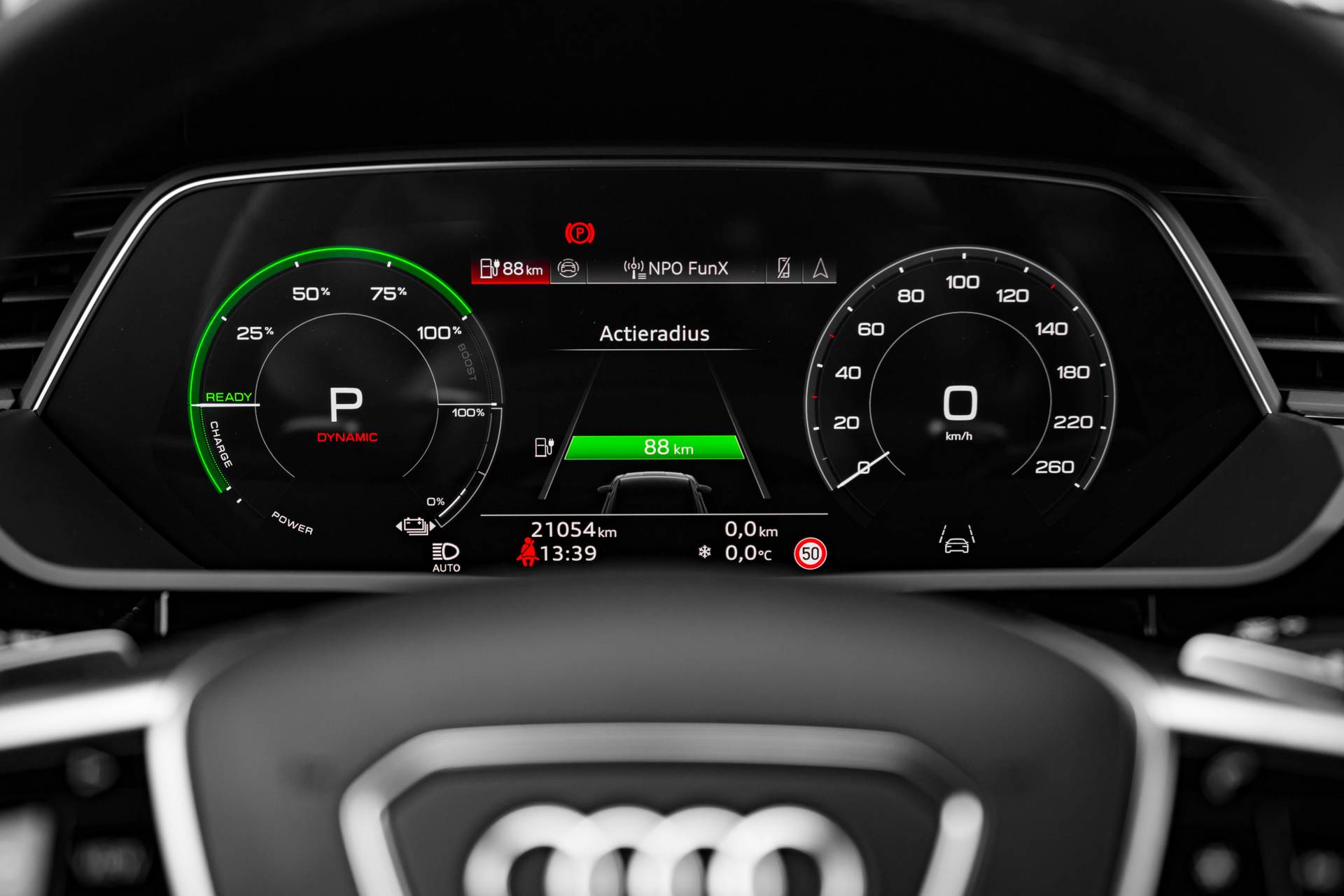 Duurzame mobiliteit is niet langer een ongrijpbare droom. Audi maakt het waar met de innovatieve elektrische Q8 Sportback e-tron. Een elektrische auto is echt niet meer alleen voor korte ritjes. Het rijbereik van deze auto biedt voldoende ruimte voor uw dagelijkse ritten. Daardoor kan het opladen vaak 's nachts gebeuren. Fan van S-Line styling? Dat komt mooi uit, want deze is lekker sportief uitgevoerd. Een krachtige motor geeft deze auto zijn sportieve prestaties. Koude start? Niet met de verwarmbare voorstoelen! De sportstoelen zorgen ervoor dat u goed en comfortabel zit, ook als het gas erop gaat. Voor extra lichtinval en een frisse luchtstroom zorgt het elektrisch bediende panoramadak. De achterklep opent automatisch met een druk op de knop. Handig als u met volle handen staat. U wordt in deze auto ook getrakteerd op 20 inch lichtmetalen velgen, LED koplampen, adaptief dempingsysteem, warmtewerend glas, in delen neerklapbare achterbank en LED-achterlichten. Rijfuncties worden glashelder en overzichtelijk weergegeven via het digitale dashboard. Afstand schatten bij het achteruitrijden? Niet nodig. U weet het precies, dankzij de achteruitrijcamera. Adaptive cruise control is een comfortabele en veilige optie. Het systeem reguleert de snelheid en houdt automatisch afstand tot uw voorligger. De aanwezige file assistent meet de afstand tot uw voorligger en zorgt voor een veilige afstand. Staat het voor u opeens stil? Dan zorgt het systeem dat de auto ook stopt. Dankzij Connected Services weet u precies waar uw auto geparkeerd staat. Ook andere functies, zoals bandenspanning en brandstofniveau, zijn via de app altijd onder handbereik. Ook navigatiesysteem, electronic climate control, sportstuur met schakelpaddels, draadloos opladen, DAB ontvangst en regensensor zijn aan boord. Geavanceerde systemen kunnen tijdens de rit bepaalde taken van u overnemen. Zo kijken er als het ware steeds extra ogen met u mee, zodat u tijdig kunt reageren op noodsituaties. In het instrumentarium ziet u tijdens de rit ook de belangrijkste verkeersborden aangegeven, die de auto automatisch voor u leest. Het Lane-keeping systeem registreert permanent of u binnen de lijnen van de rijstrook blijft; dwaalt u onbedoeld af, dan waarschuwt het systeem en corrigeert de koers. Forward collision warning waarschuwt bij een dreigende aanrijding met een voorligger. U bent mede dankzij frontale botsbescherming en bandenspanningcontrolesysteem steeds veilig onderweg. Neem de stap naar elektrisch rijden! Maak een afspraak en we zetten 'm voor u klaar.