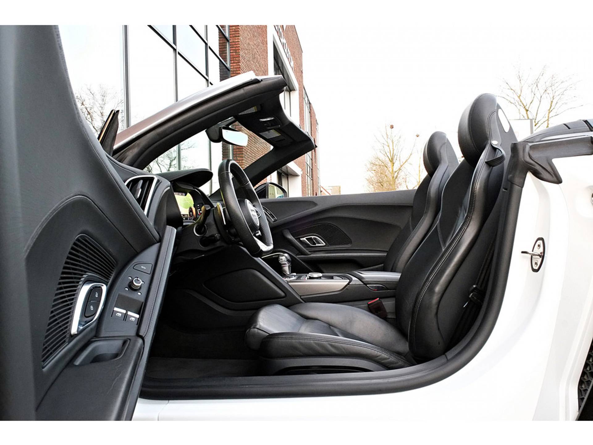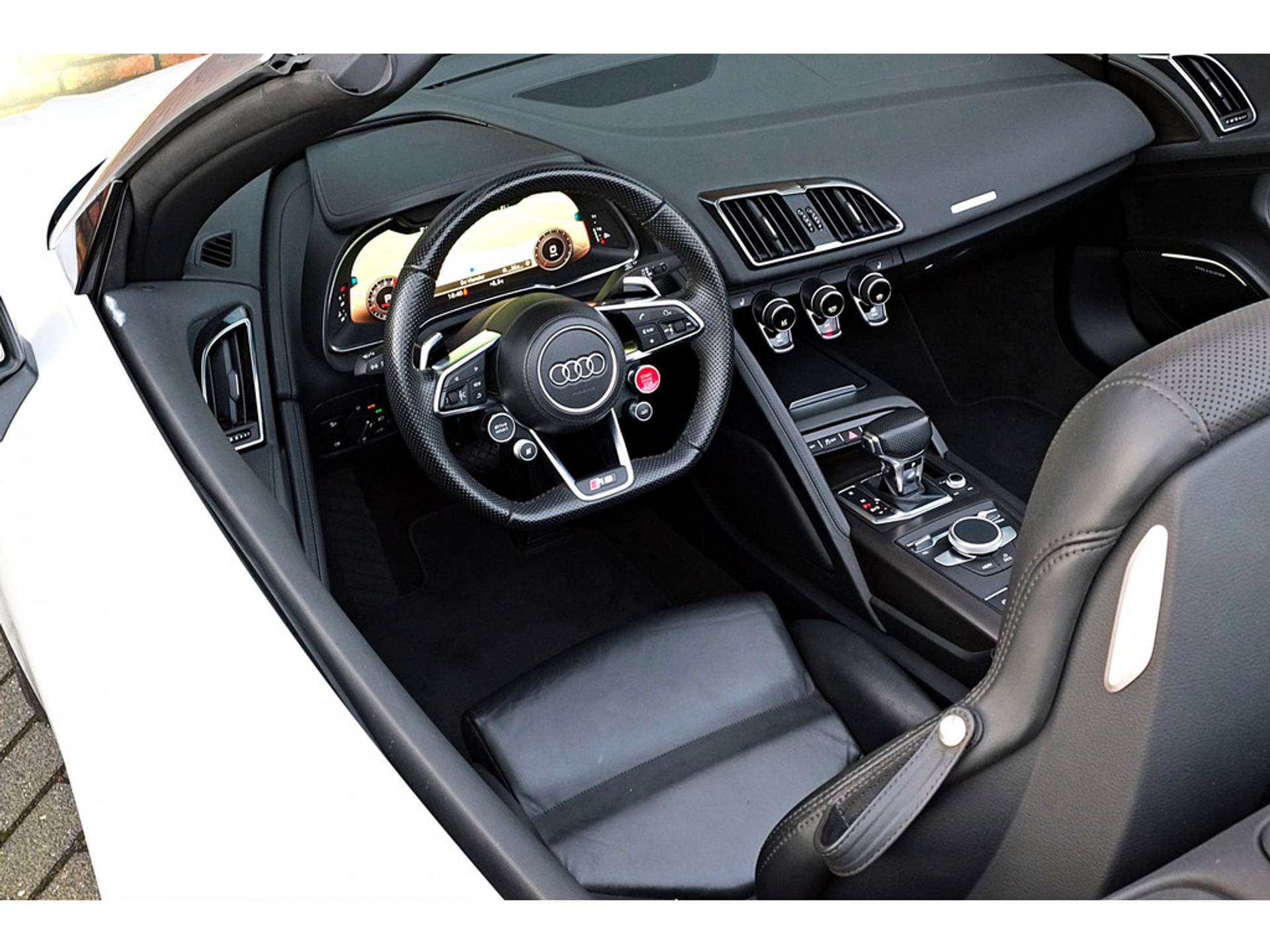 Zomer? Het dak eraf! Geniet van het zonnige rijgevoel van deze perfect onderhouden cabrio. De Audi R8 Spyder vertegenwoordigt het beste van degelijk Duits design. Dit exemplaar is van het bouwjaar 2017 en heeft 38196 kilometer op de teller staan. De aandrijving wordt verzorgd door een tiencilinder benzinemotor en een automatische transmissie. Voorzien van een lederen interieur: stijl en kwaliteit voor u en uw passagiers! Neem plaats op de comfortabele stoelen. Dankzij de elektrische bediening en het geheugen is het eenvoudig om hierin de beste zitpositie te vinden. Dankzij de elektrische bediening volstaat een druk op de knop als u open of dicht wilt rijden. Ook is de auto voorzien van: 20 inch lichtmetalen velgen, sportonderstel, windscherm, adaptief dempingsysteem, warmtewerend glas, led-achterlichten, metallic lak, elektrisch bedienbare ramen voor en elektrisch inklapbare buitenspiegels.