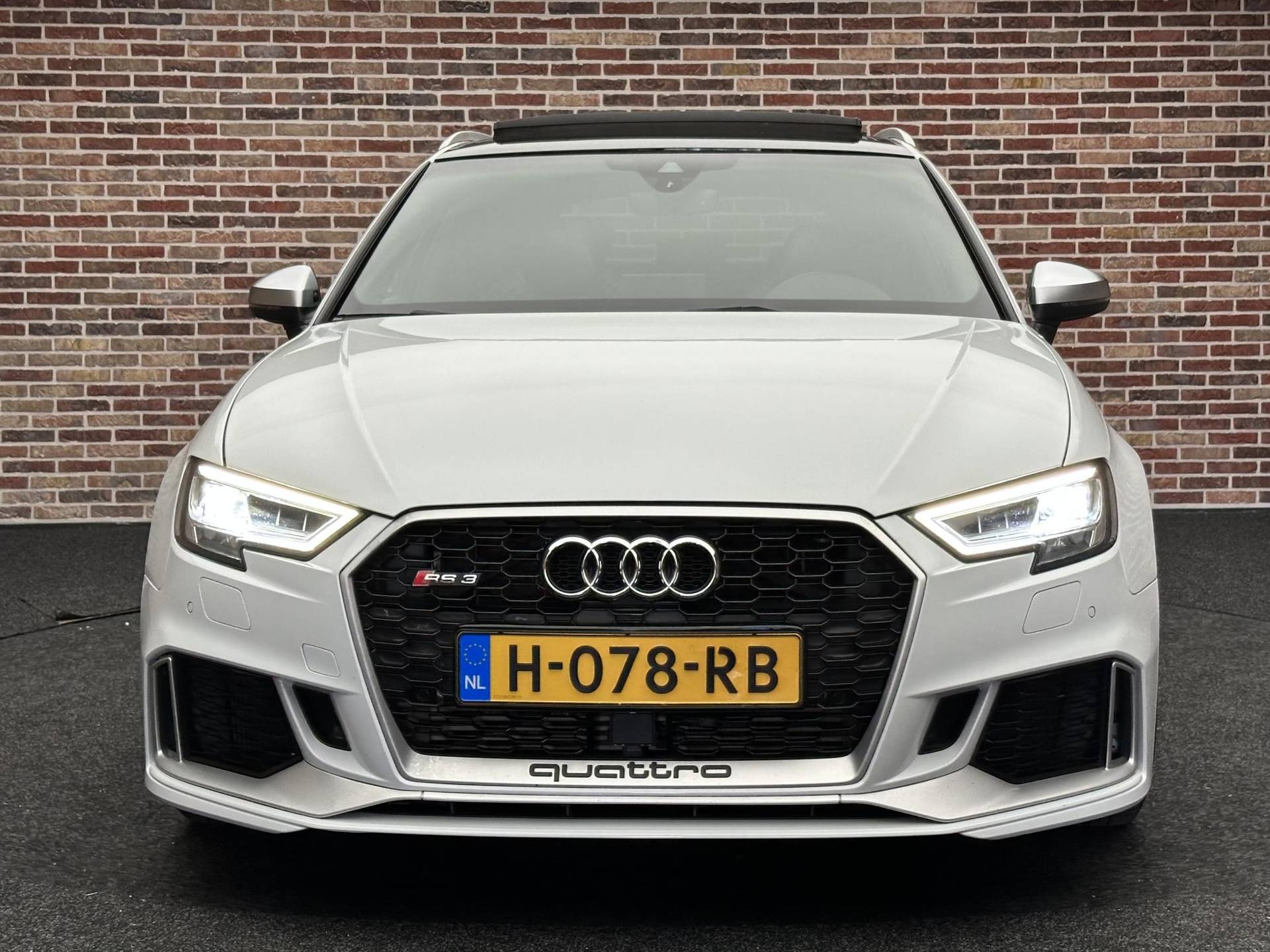 In het moderne verkeer hebt u achter het stuur van de Audi RS3 Sportback altijd de controle. Deze auto komt uit 2018. De vijfcilinder benzinemotor in combinatie met de automatische transmissie maken het rijden met deze Audi tot een waar feest. Iedereen kan het beamen: een lederen interieur is levend en luxe. Om van comfort nog maar te zwijgen. En dat komt allemaal nog beter tot z'n recht dankzij het elektrisch bediende glazen panorama dak. Tijdens koude winterdagen verjaagt uw stoelverwarming de kou en maakt het rijden heerlijk comfortabel. Dankzij de matrix LED-verlichting geven de koplampen ook in het donker daglicht. Bij de uitrusting van deze auto horen onder meer 19 inch lichtmetalen velgen, sportonderstel, adaptief dempingsysteem, warmtewerend glas, in delen neerklapbare achterbank en verstelbare lendensteunen.